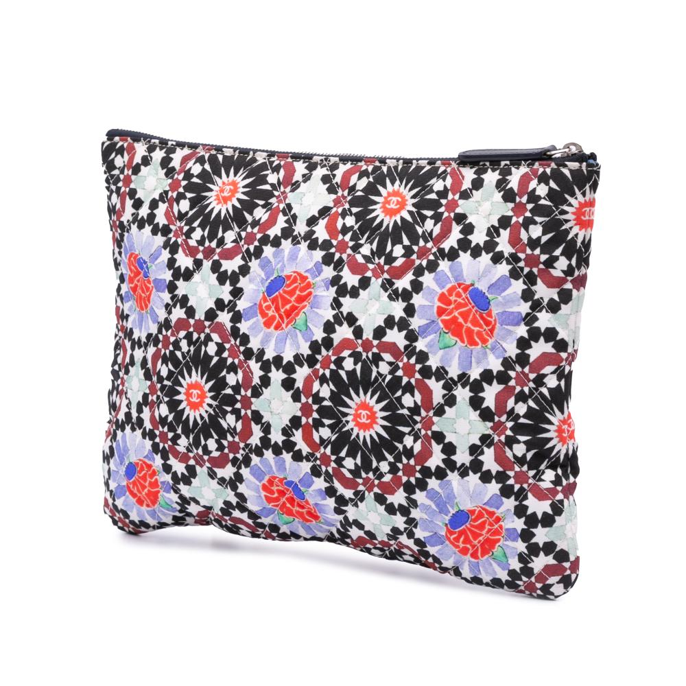 This clutch features a quilted printed canvas body and a top zip closure. It carries an AB condition rating.Zipper Rusty/Tarnished. Dimensions:Length 27cmWidth 1cmHeight 19.5cmOriginal Accessories: Dust Bag, Serial Number: 20373199Color: White x Off WhiteMaterial: Fabric x Canvas