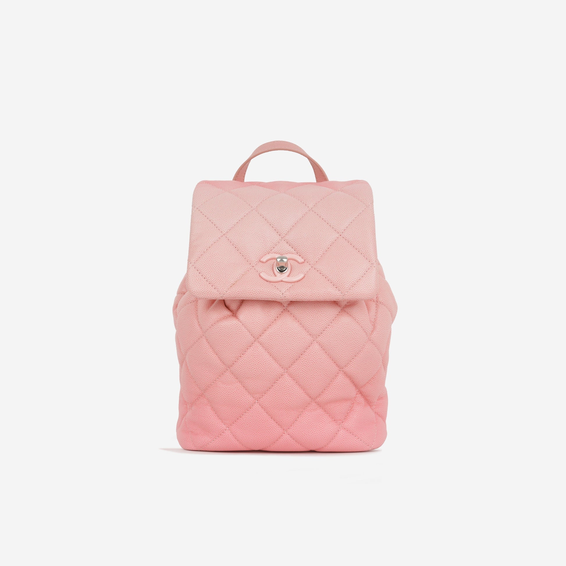 The My Everything Backpack features a stunning pink ombre design in quilted caviar leather. This versatile and stylish backpack combines functionality with elegance, offering ample space for all your essentials. The luxurious caviar leather adds durability while the ombre effect gives it a unique, eye-catching appeal. Perfect for everyday use or a special occasion, this backpack is a must-have accessory for any wardrobe.