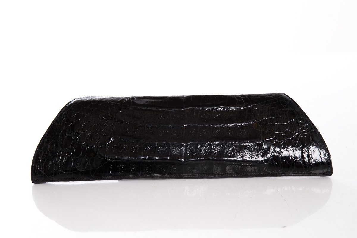 Nancy Gonzalez Black Crocodile Envelope Clutch