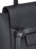- Flap closure with hidden metallic piece and zipped closure under the flap