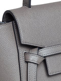 - Flap closure with hidden metallic piece and zipped closure under the flap