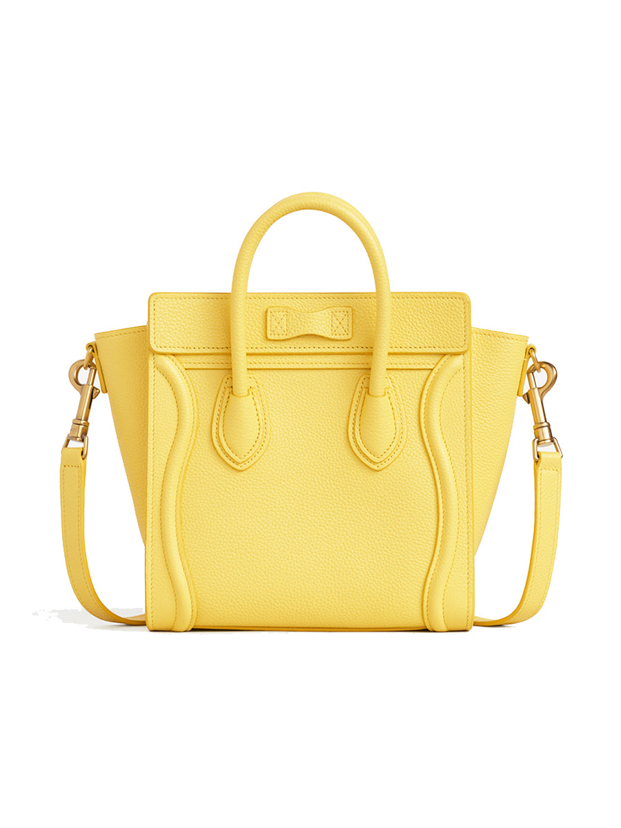 Nano Luggage Bag in Drummed Calfskin in Citron