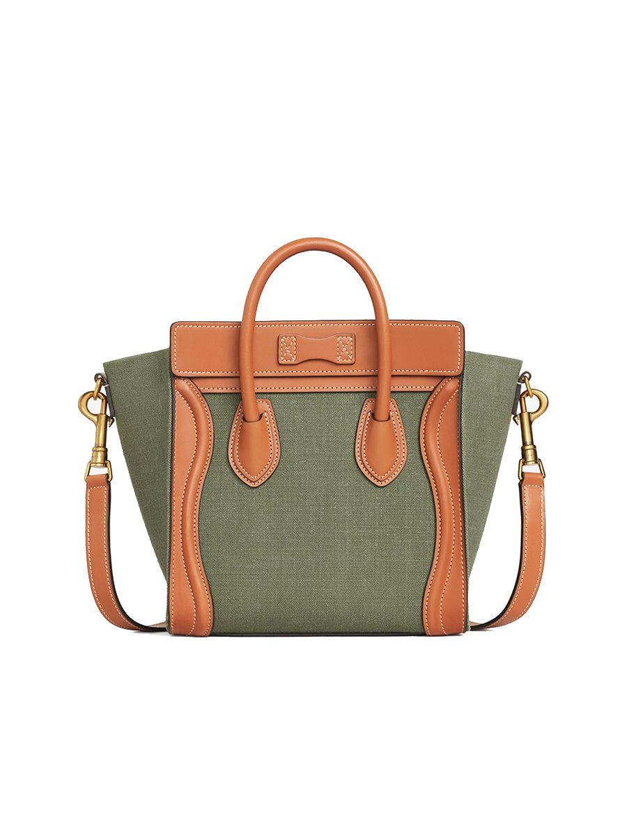 Nano Luggage Bag in Textile and Calfskin in Khaki/ Tan