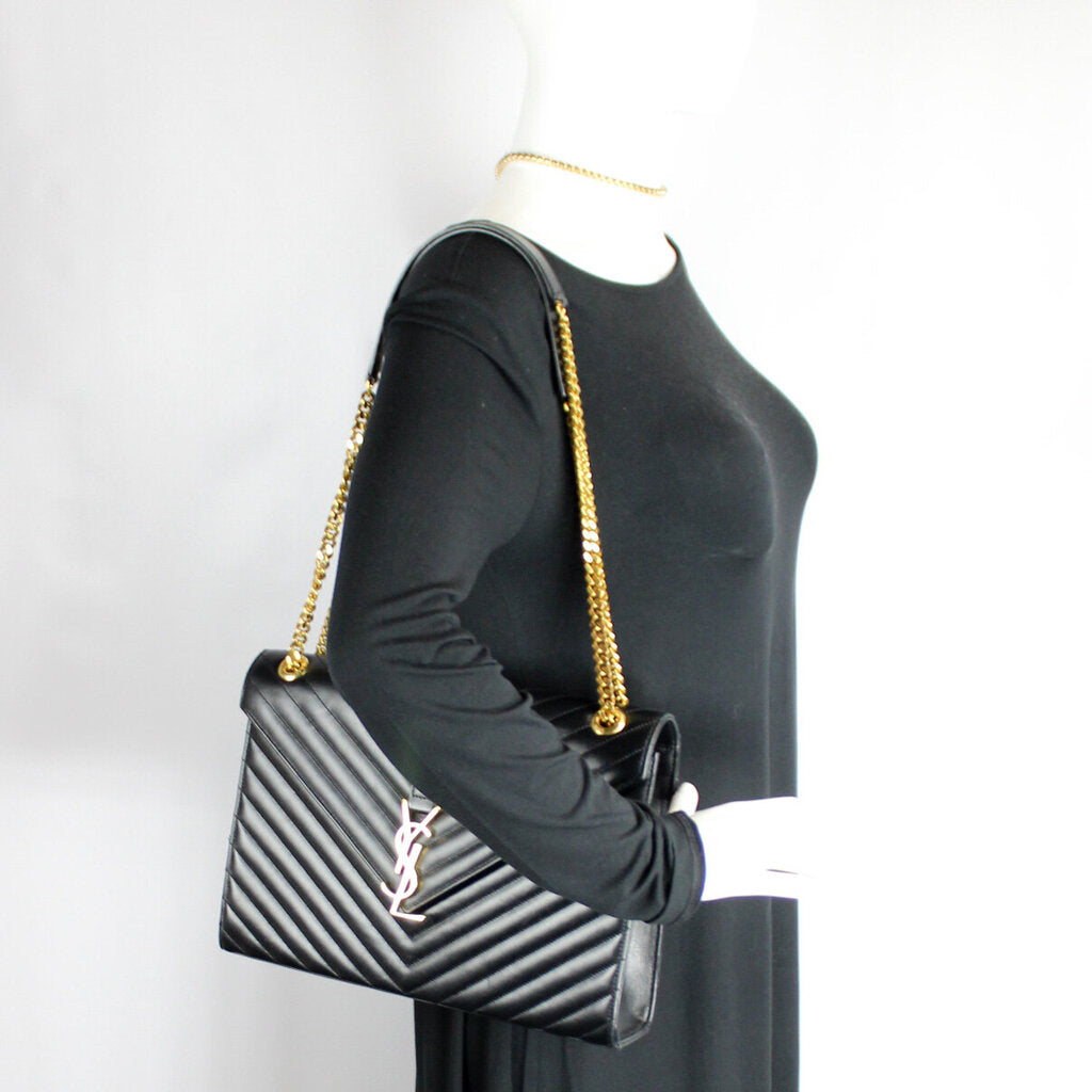 Nappa Leather Large Chevron Envelope Shoulder Bag