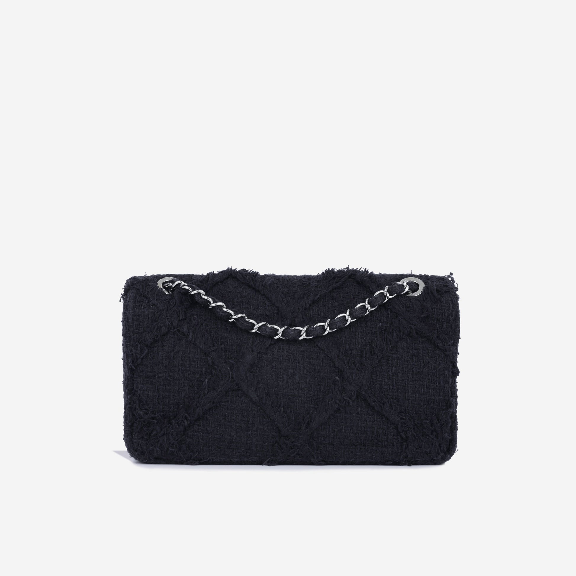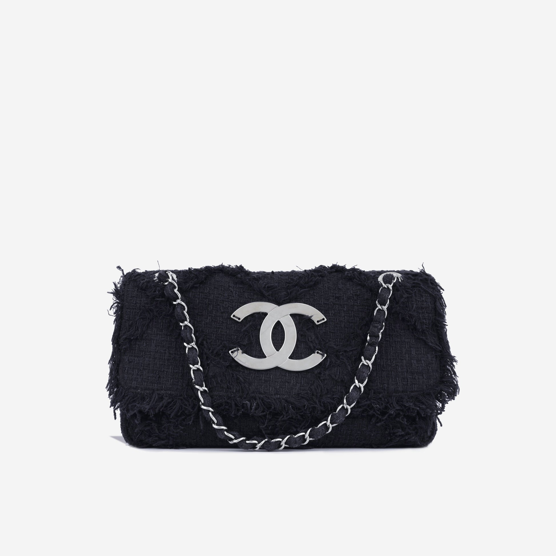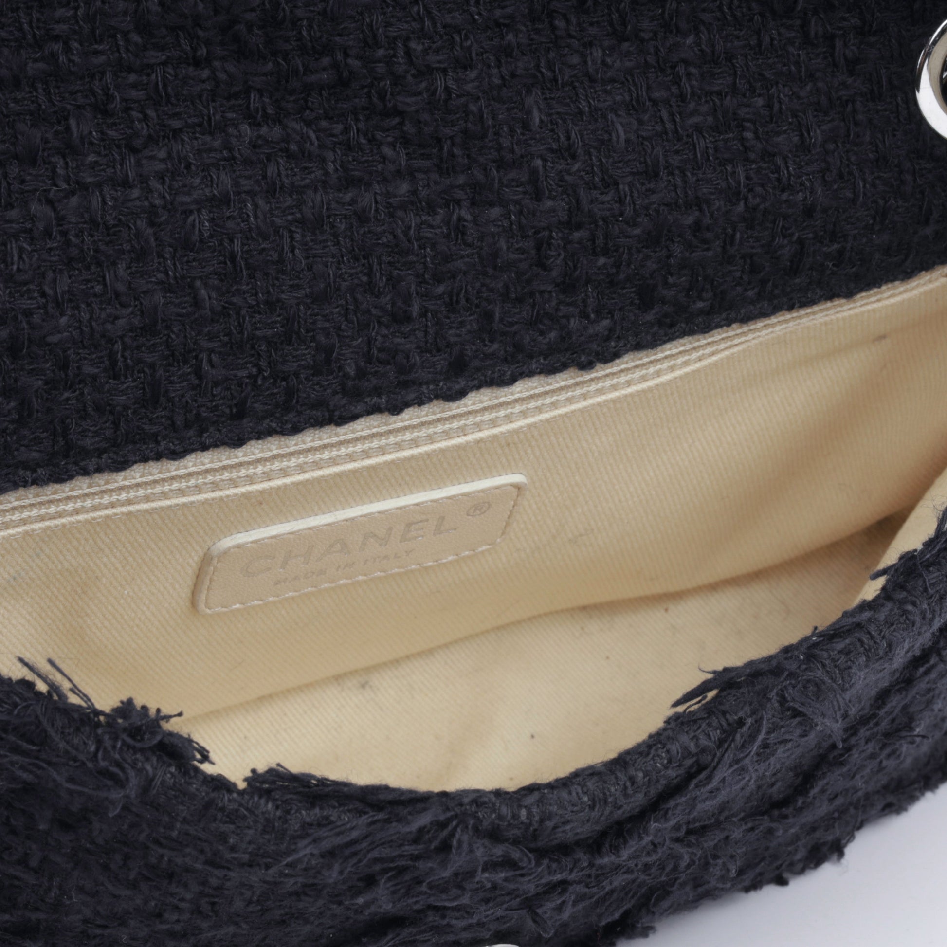 Crafted from tweed, this bag is a testament to Chanel's dedication to using the finest materials. The tweed exudes a sense of classic sophistication while offering a unique texture that sets it apart from the ordinary. The bag boasts chain link black threaded shoulder straps, providing both style and comfort. It's a versatile accessory that can be worn on the shoulder or carried by hand.
