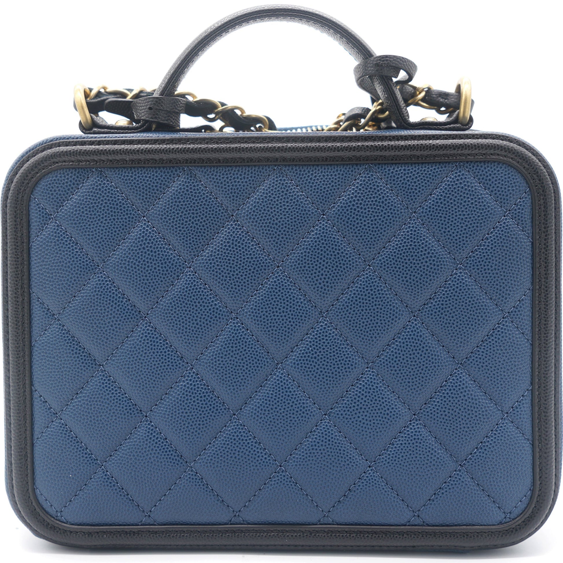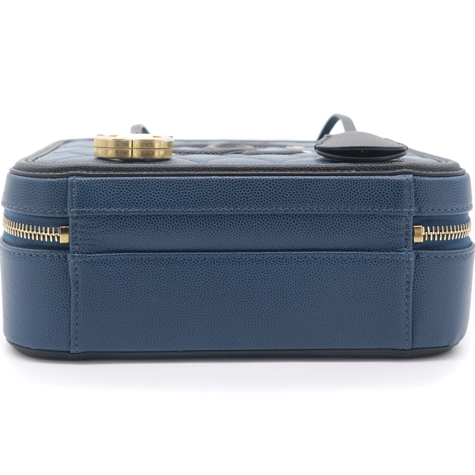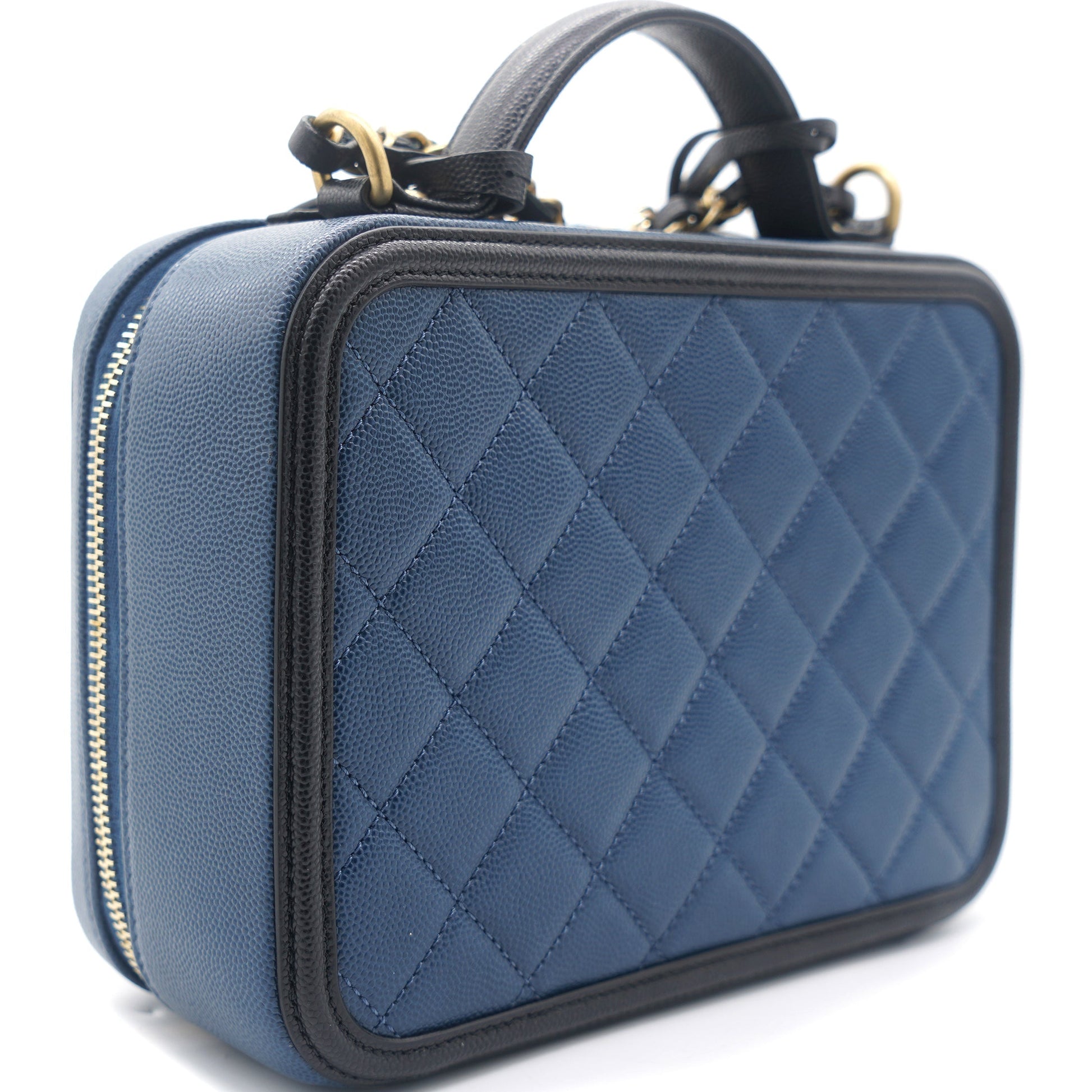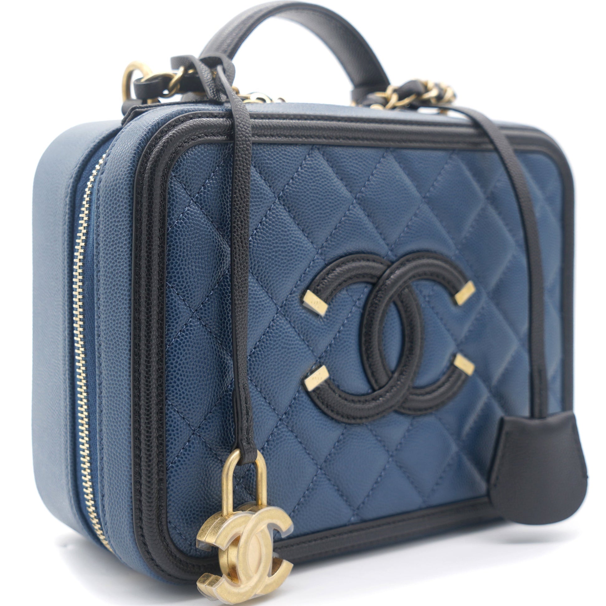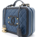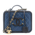 Chanel Navy/Black Quilted Caviar Leather Medium CC Filigree Vanity Case Bag