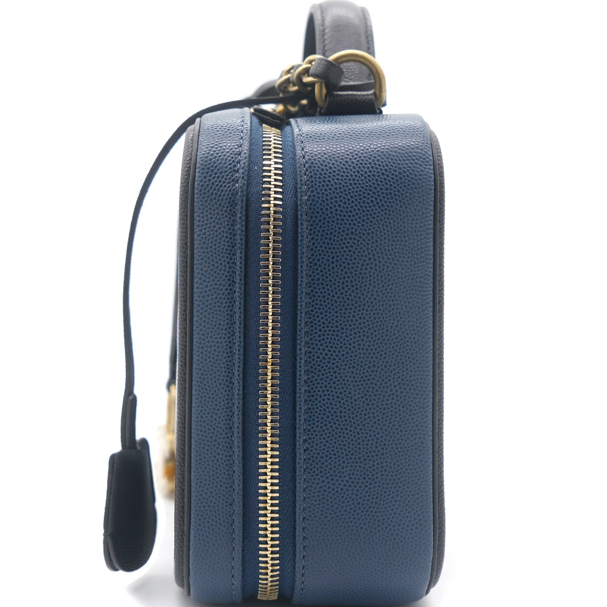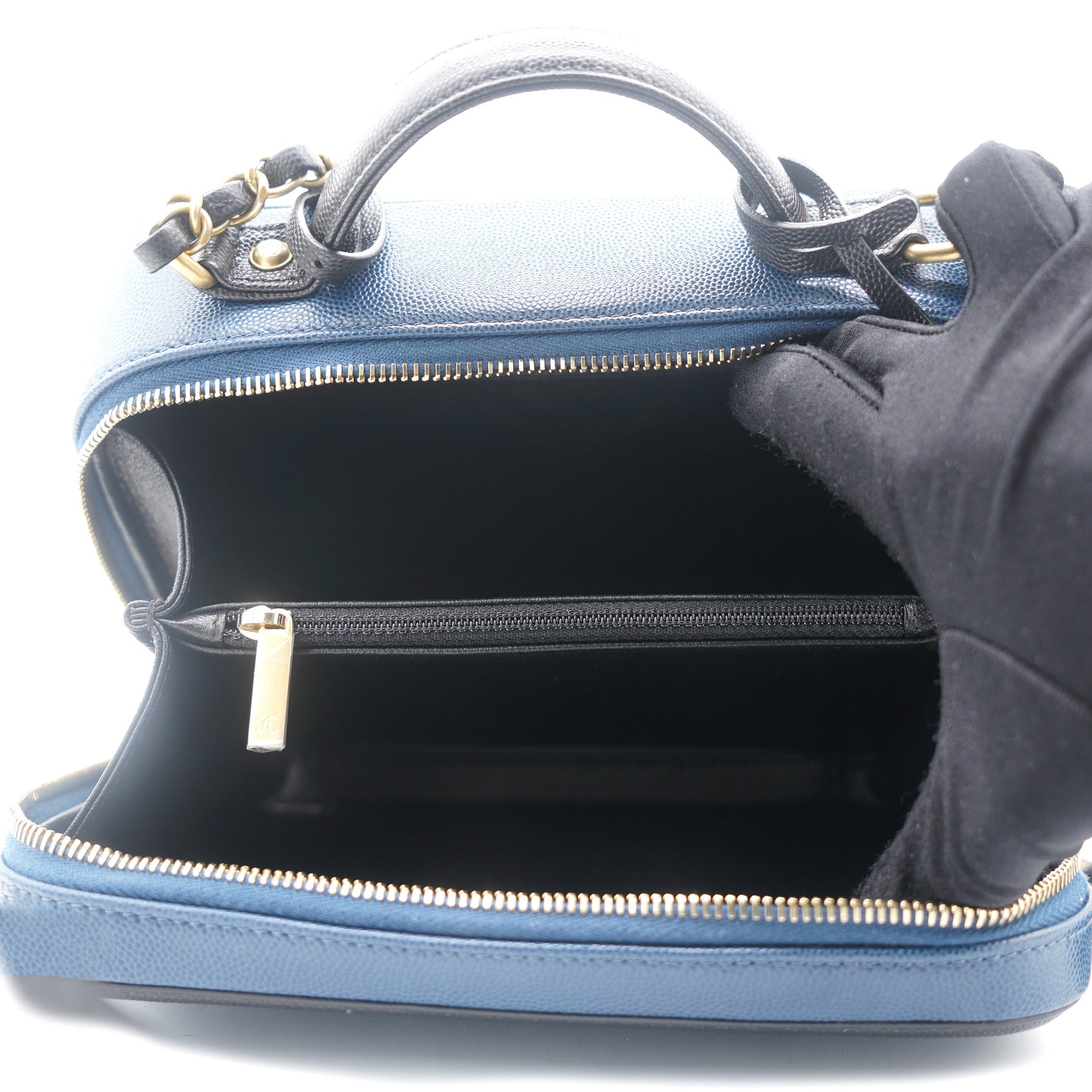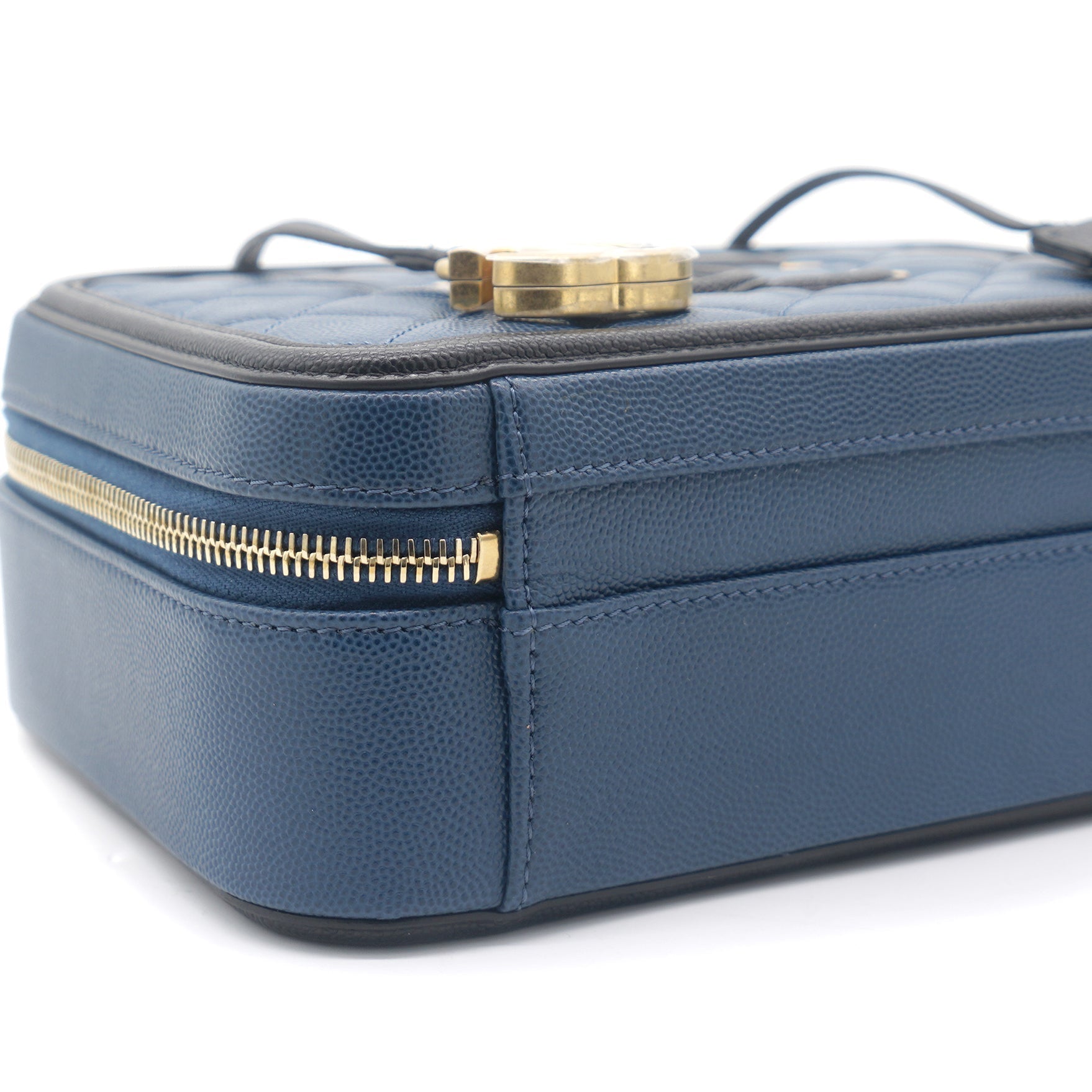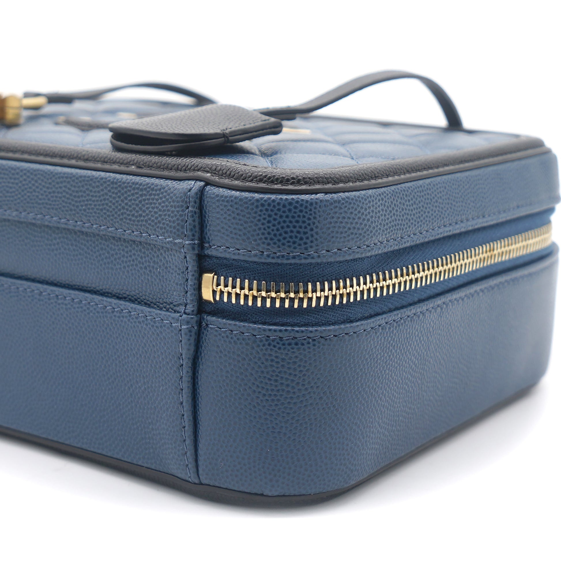 Chanel Navy/Black Quilted Caviar Leather Medium CC Filigree Vanity Case Bag