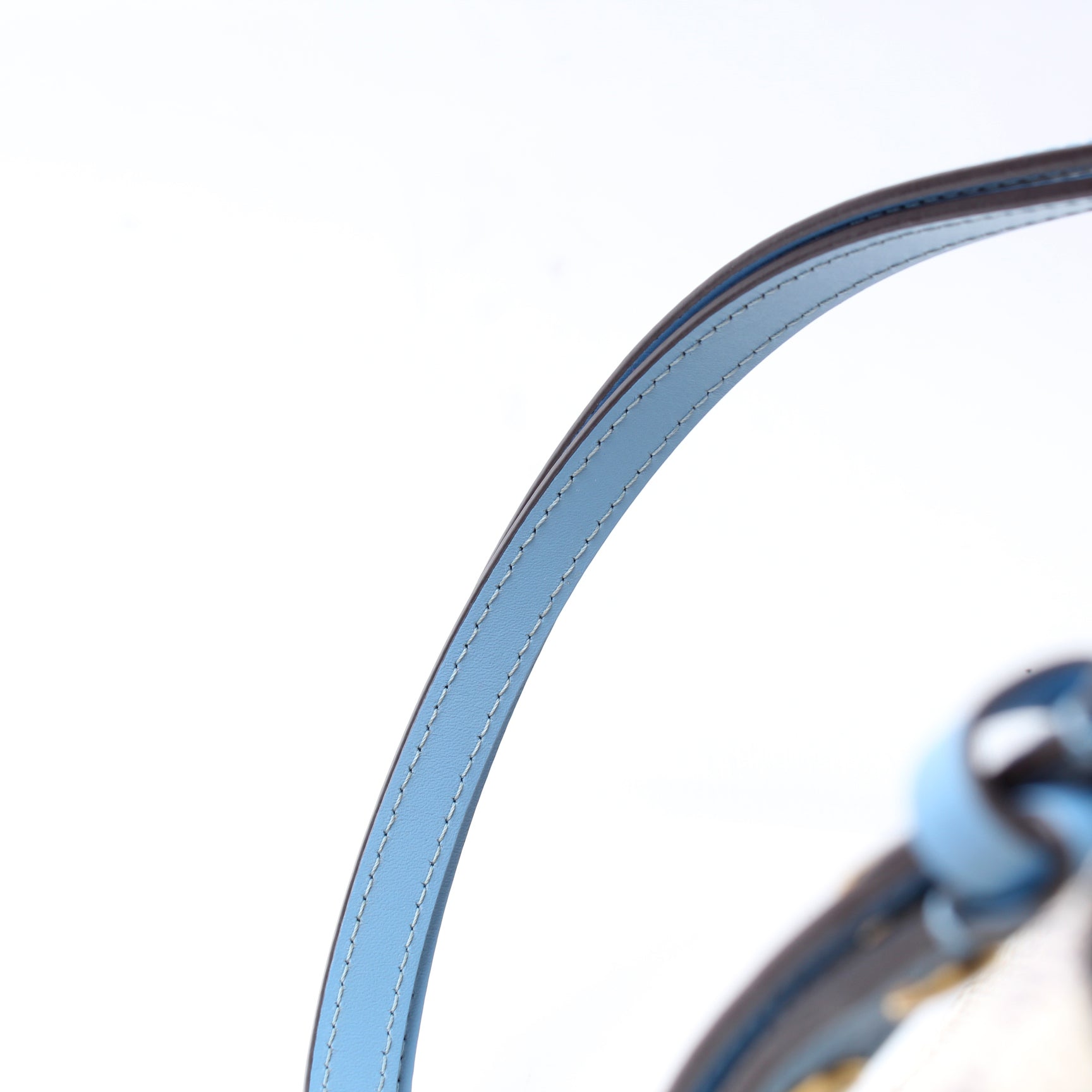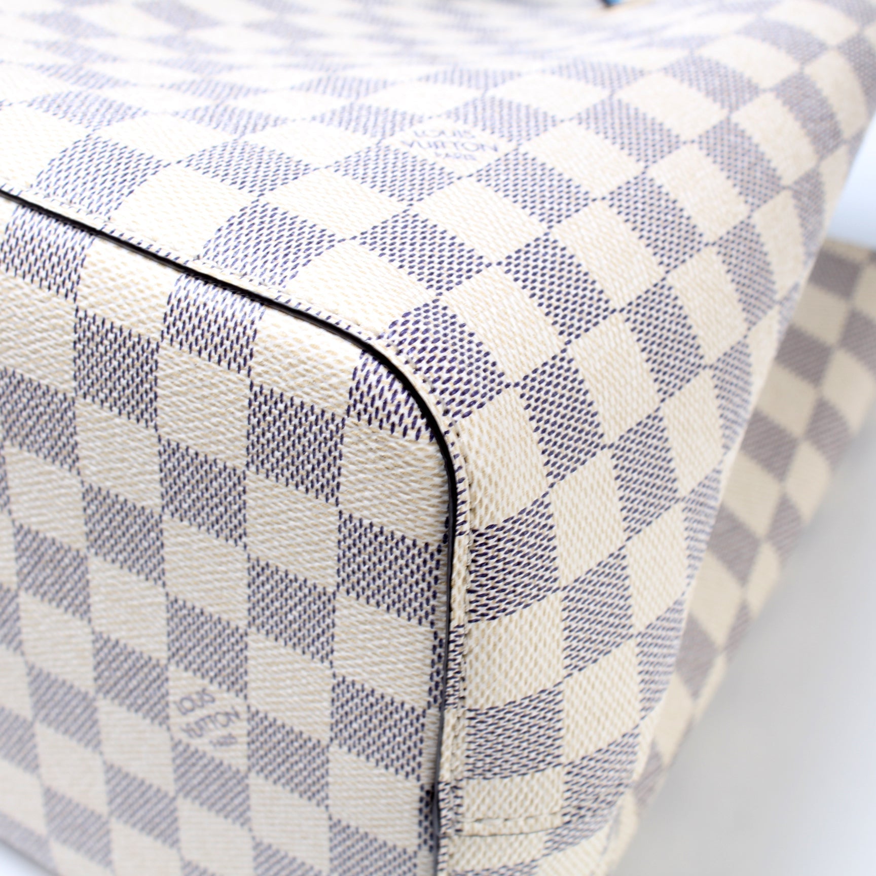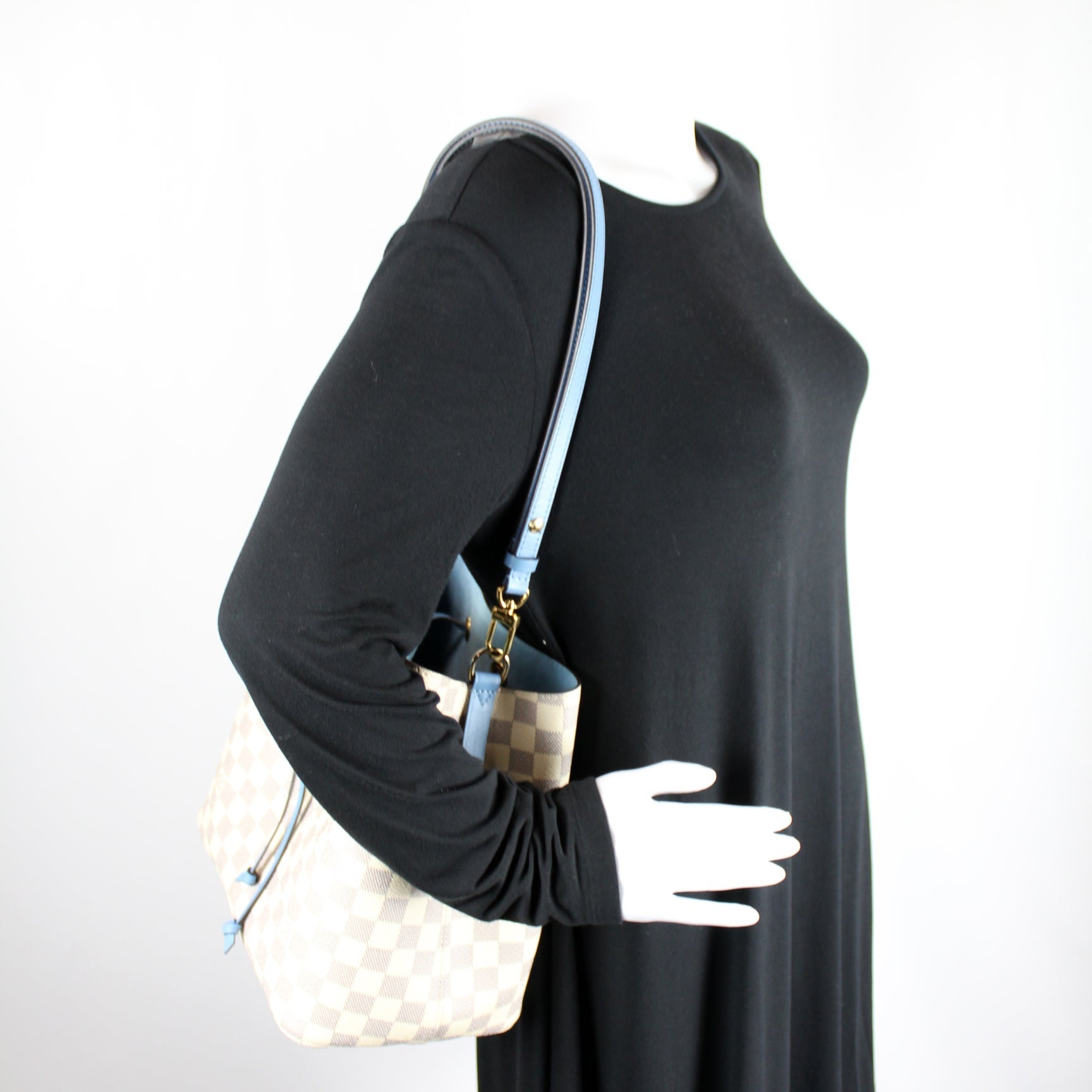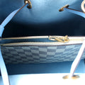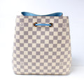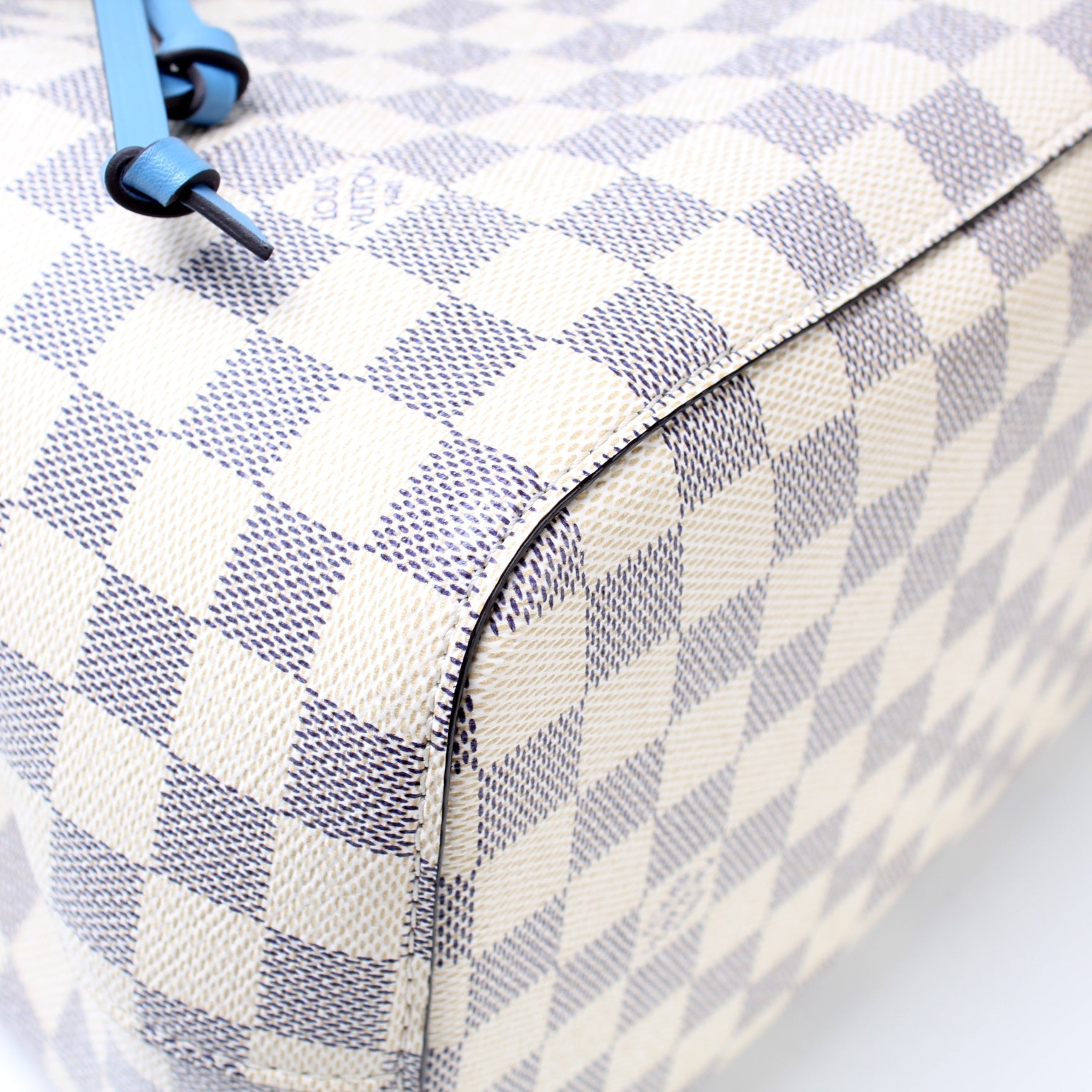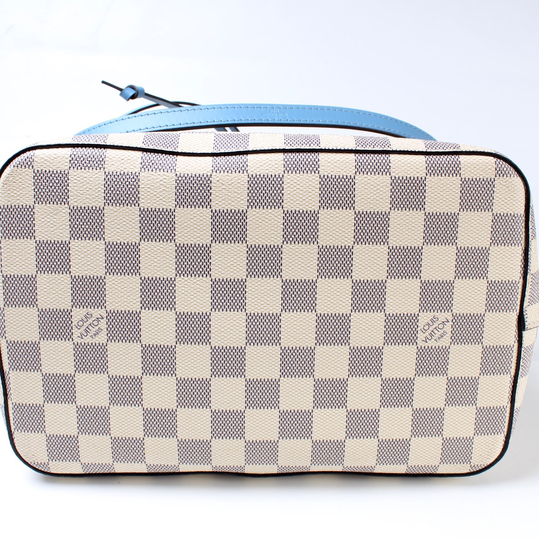 This Louis Vuitton Neonoeis eye catching bag. The exterior is in the classic Damier Azur coated canvas.