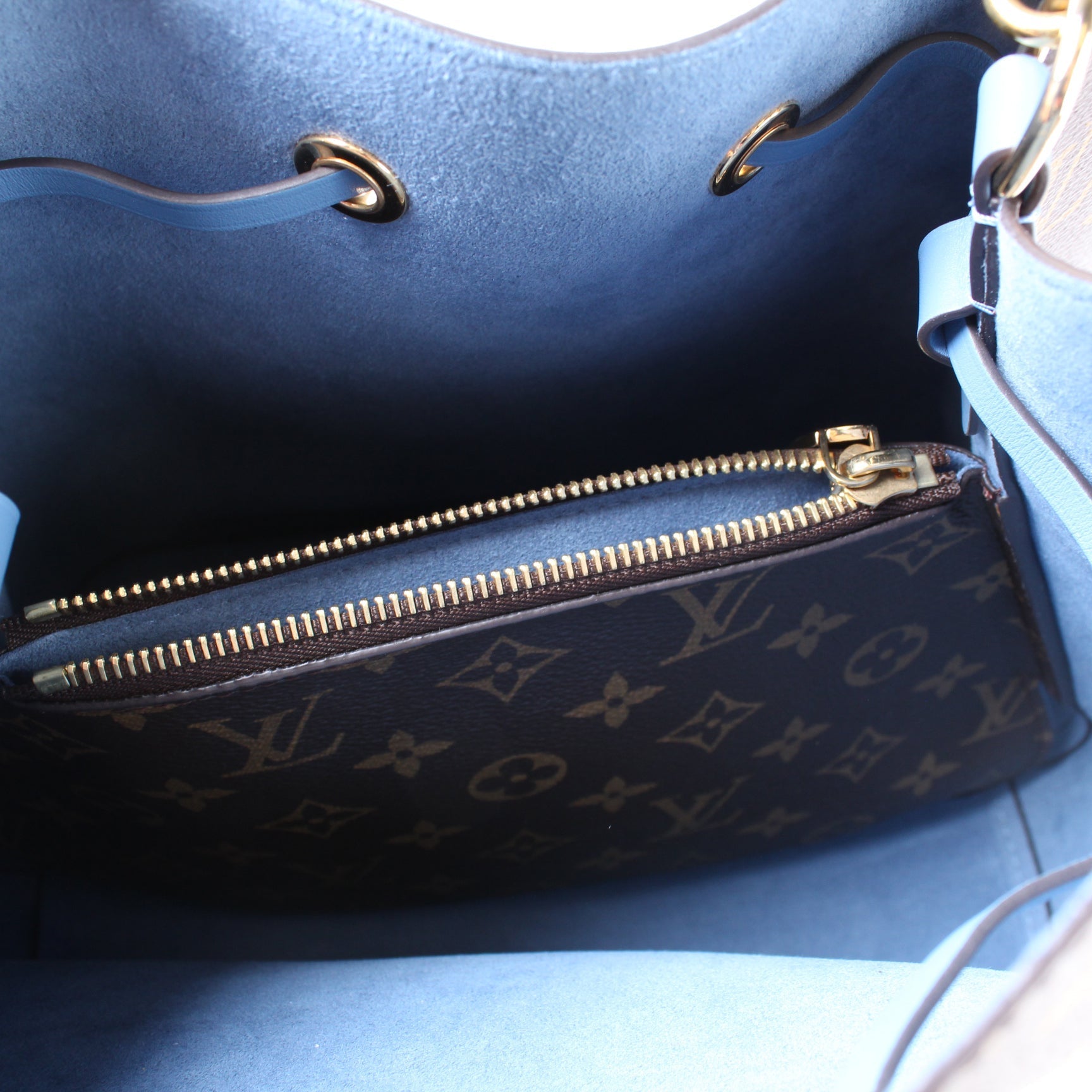 This Louis Vuitton Neonoeis eye catching bag. The exterior is in the classic Monogram coated canvas.