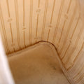 Exterior: The exterior coated canvas shows minor wear to the corners.