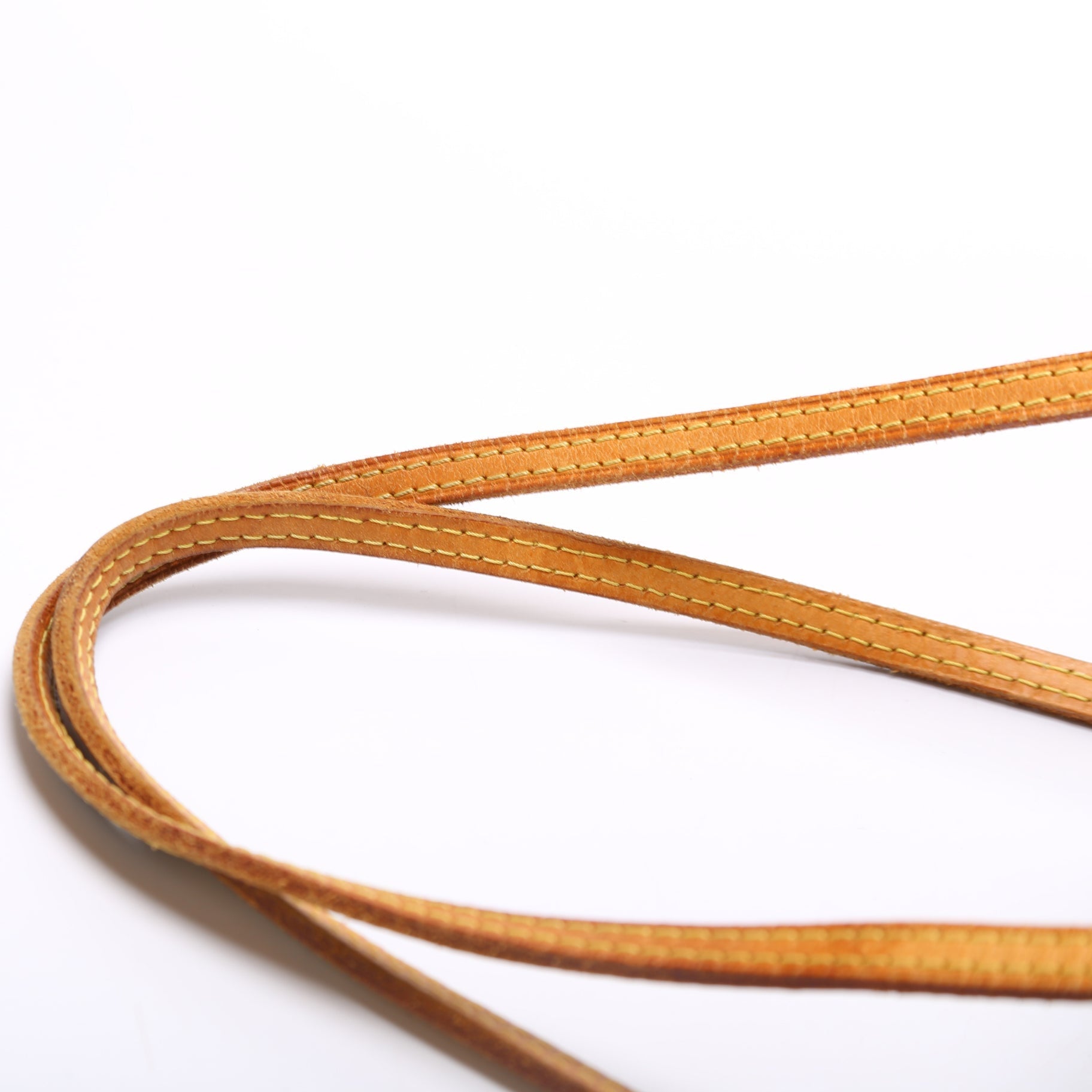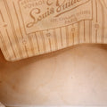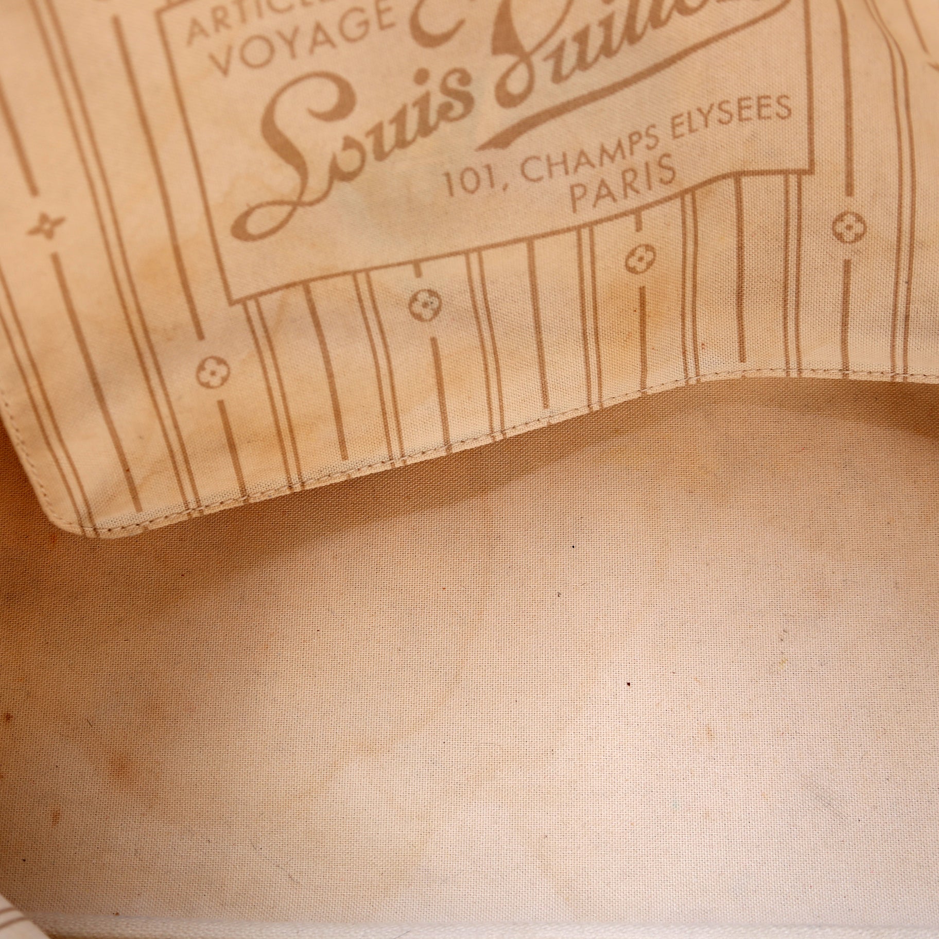 Exterior: The exterior coated canvas is free of rips or cracks. The corners have heavy wear to the canvas. The leather trim shows discoloration.