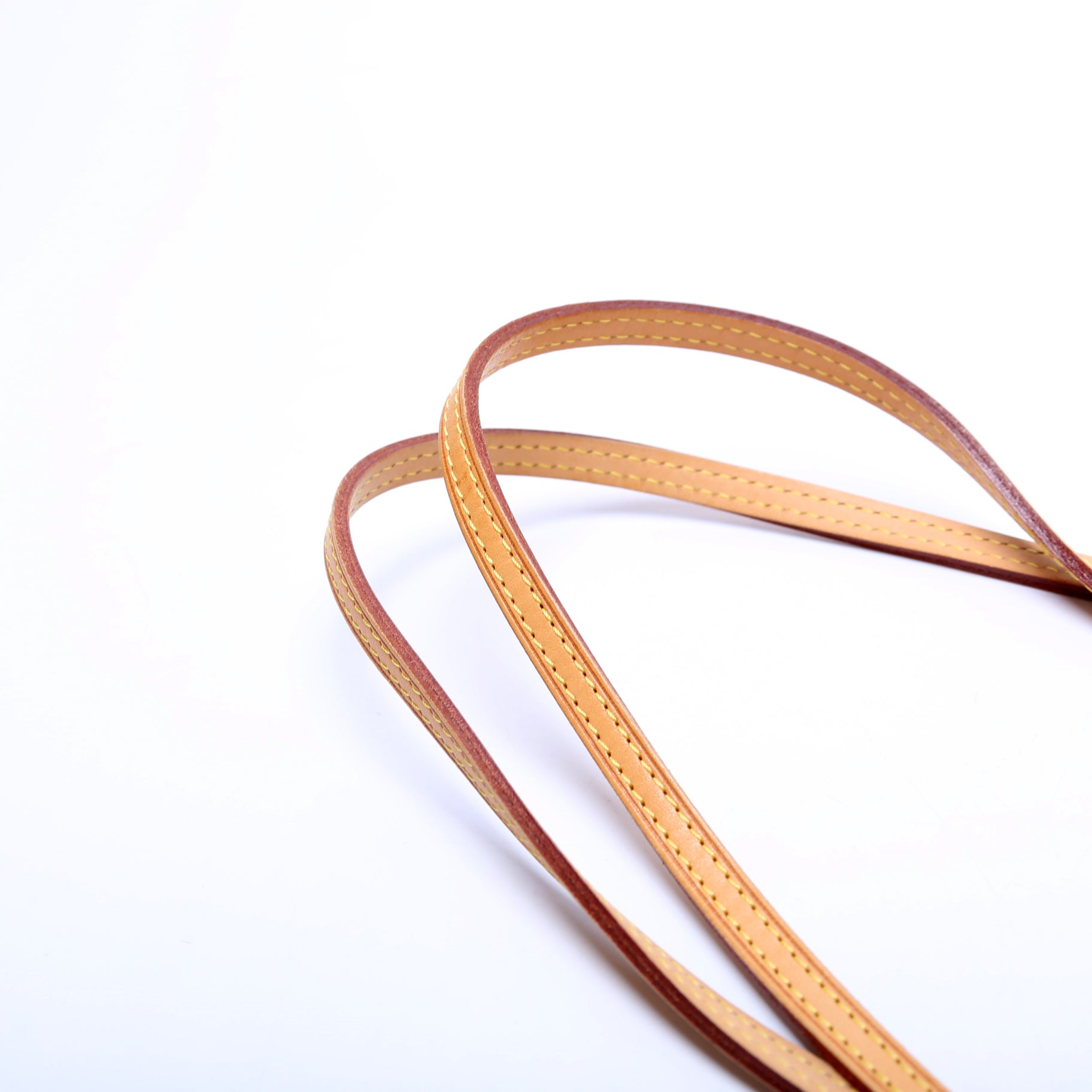 Exterior: The exterior coated canvas is free of rips or cracks. The corners show minimal wear. The leather trim shows light wear and discoloration throughout.
