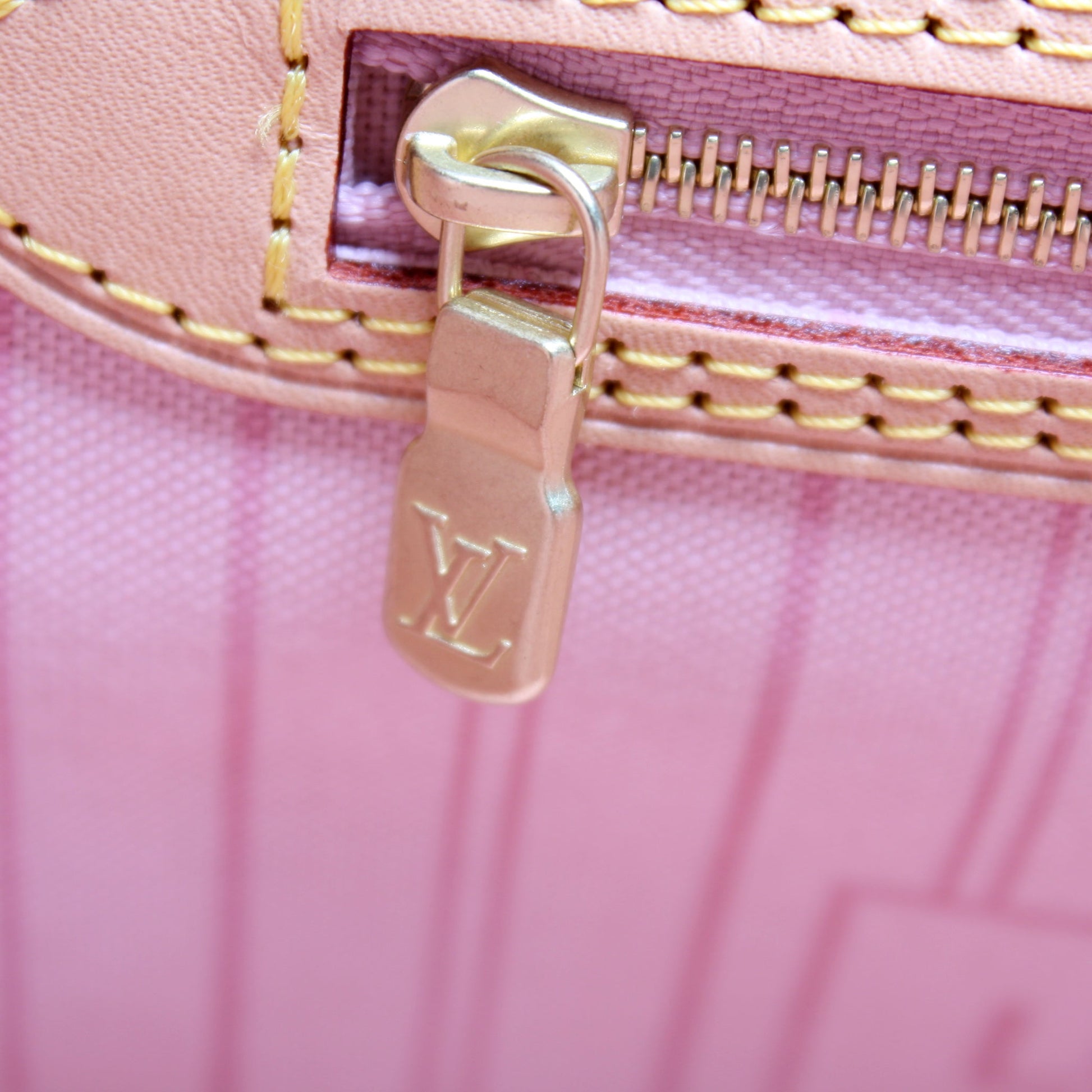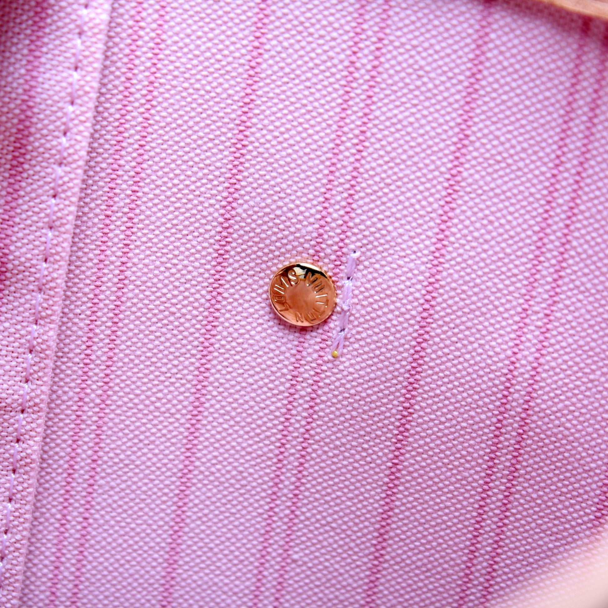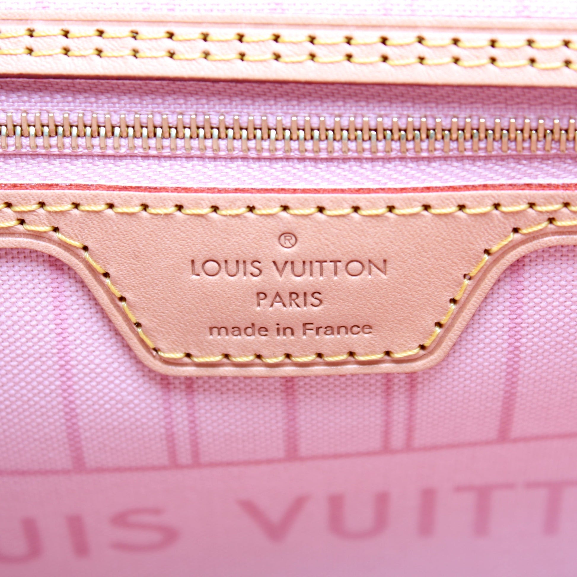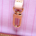 This Louis Vuitton Neverfull MMis eye catching bag. The exterior is in the classic Louis Vuitton Damier Azur coated canvas.