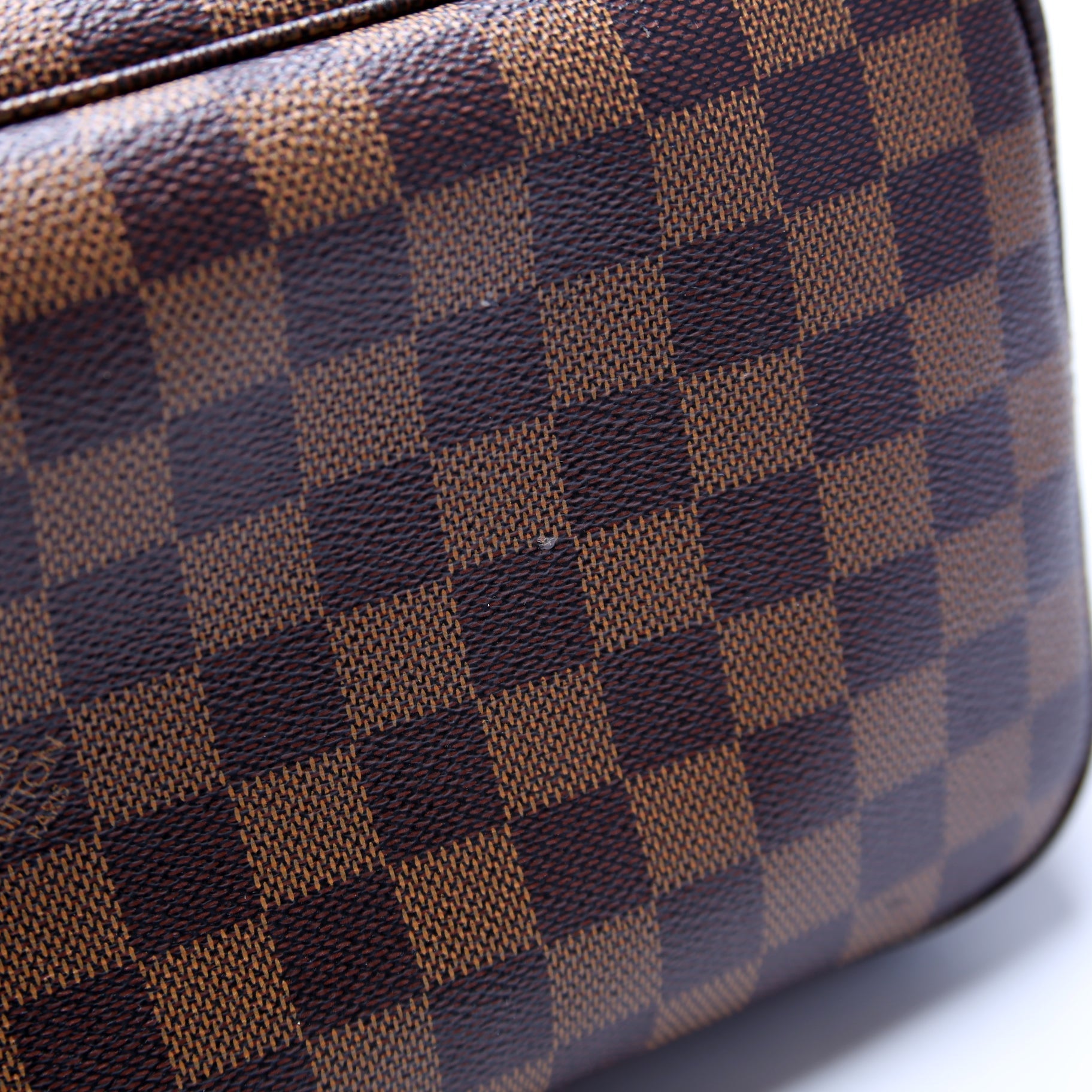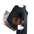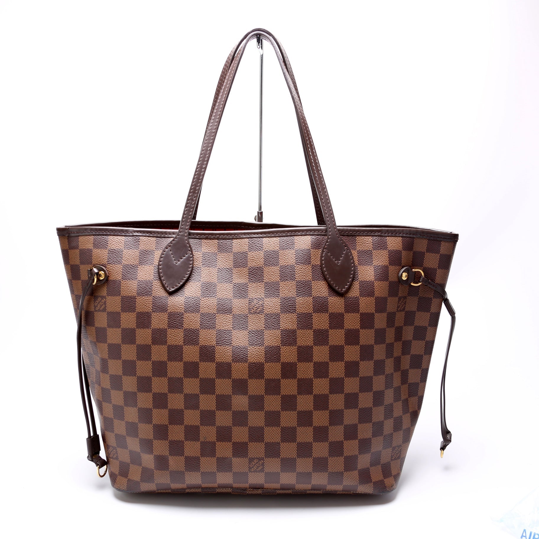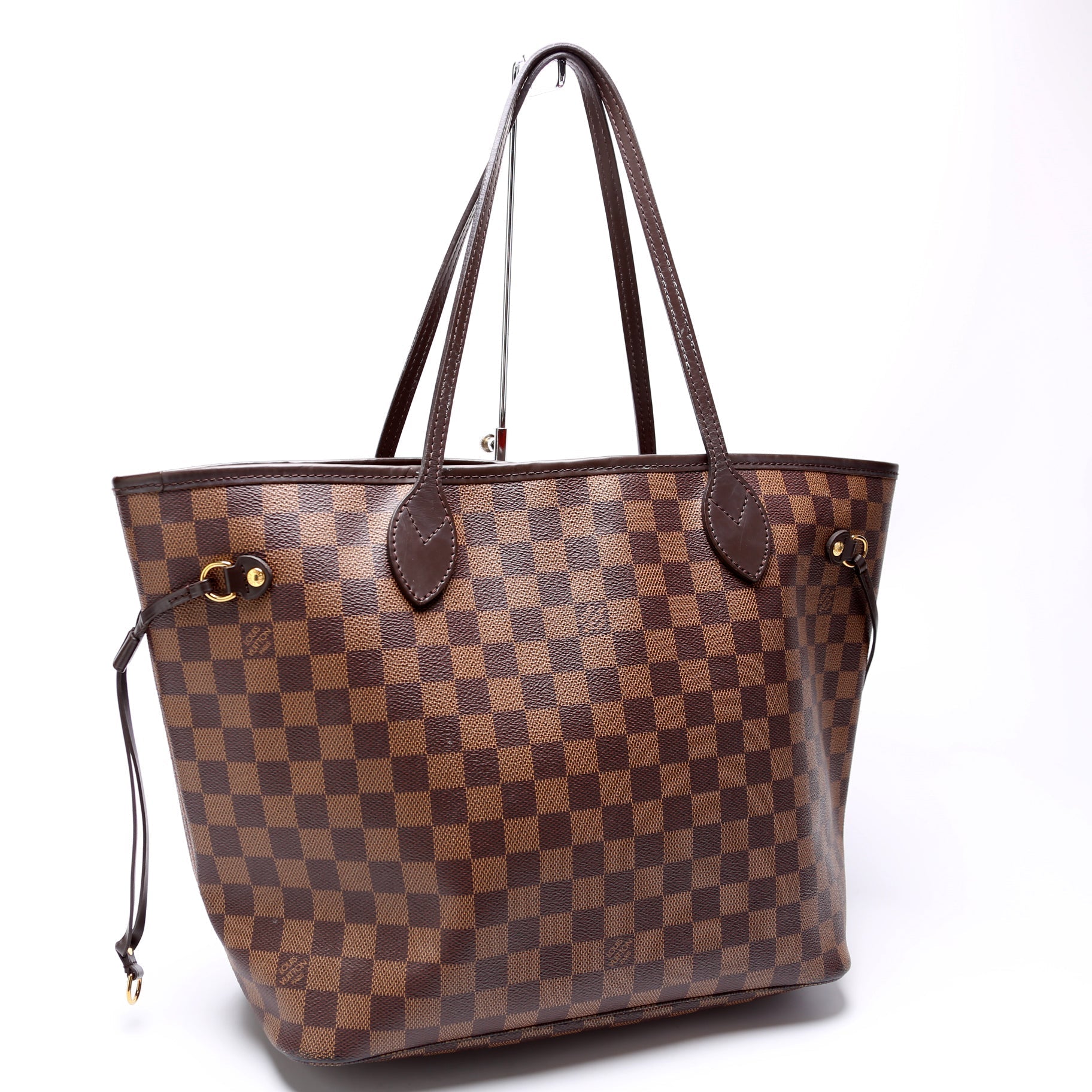 This Louis Vuitton Neverfull MMis eye catching bag. The exterior is in the classic Louis Vuitton Damier Ebene coated canvas.