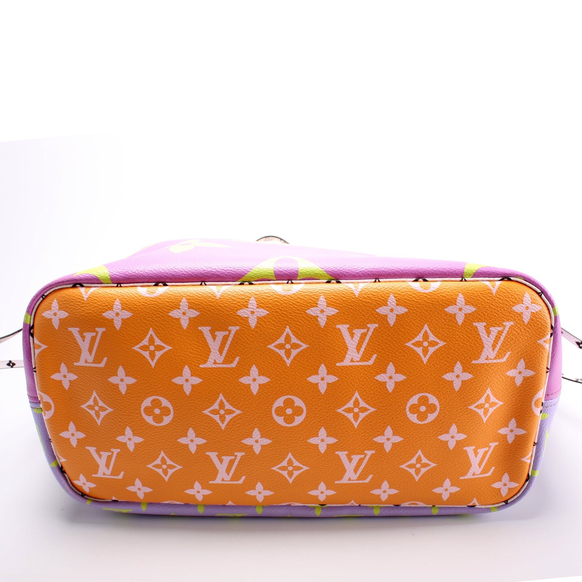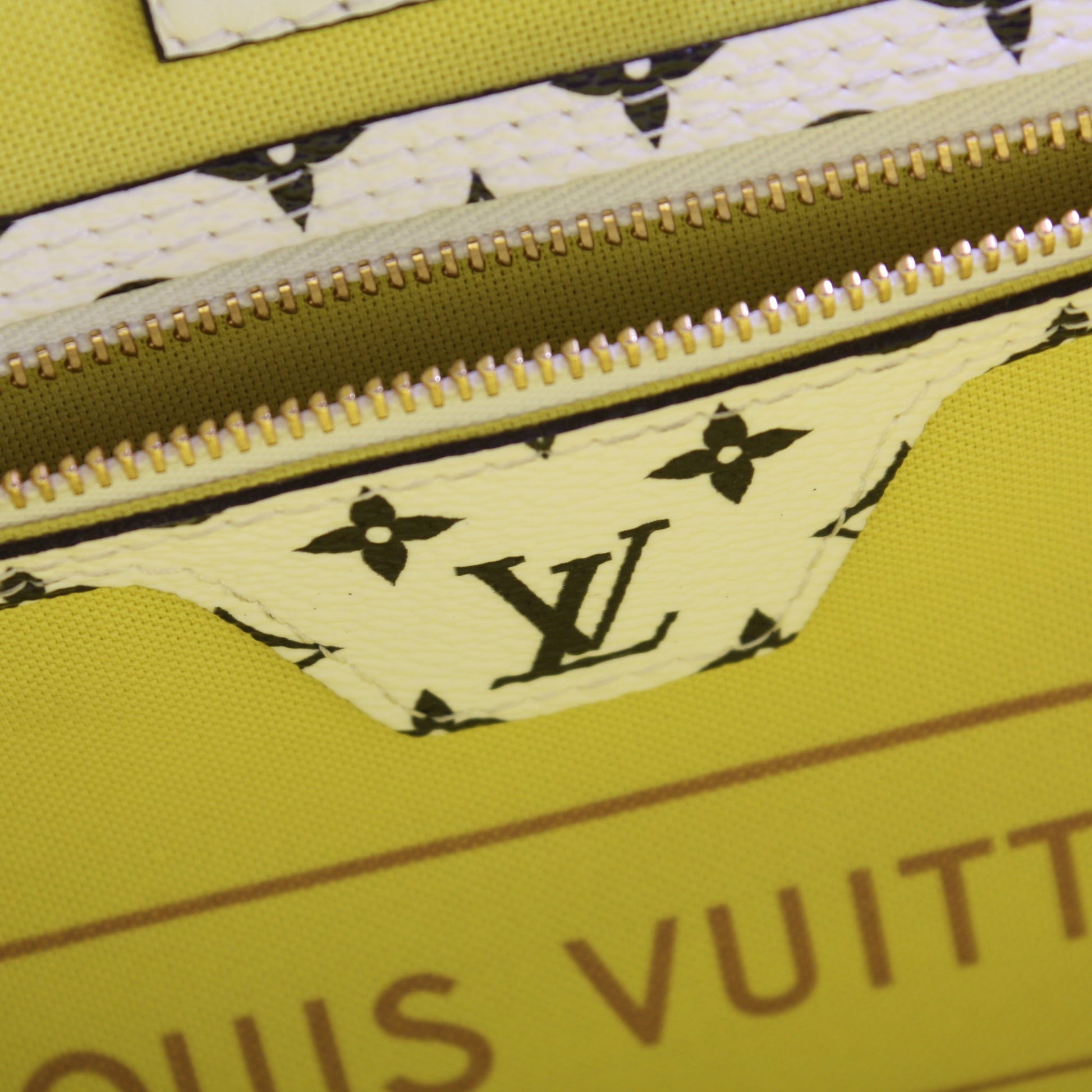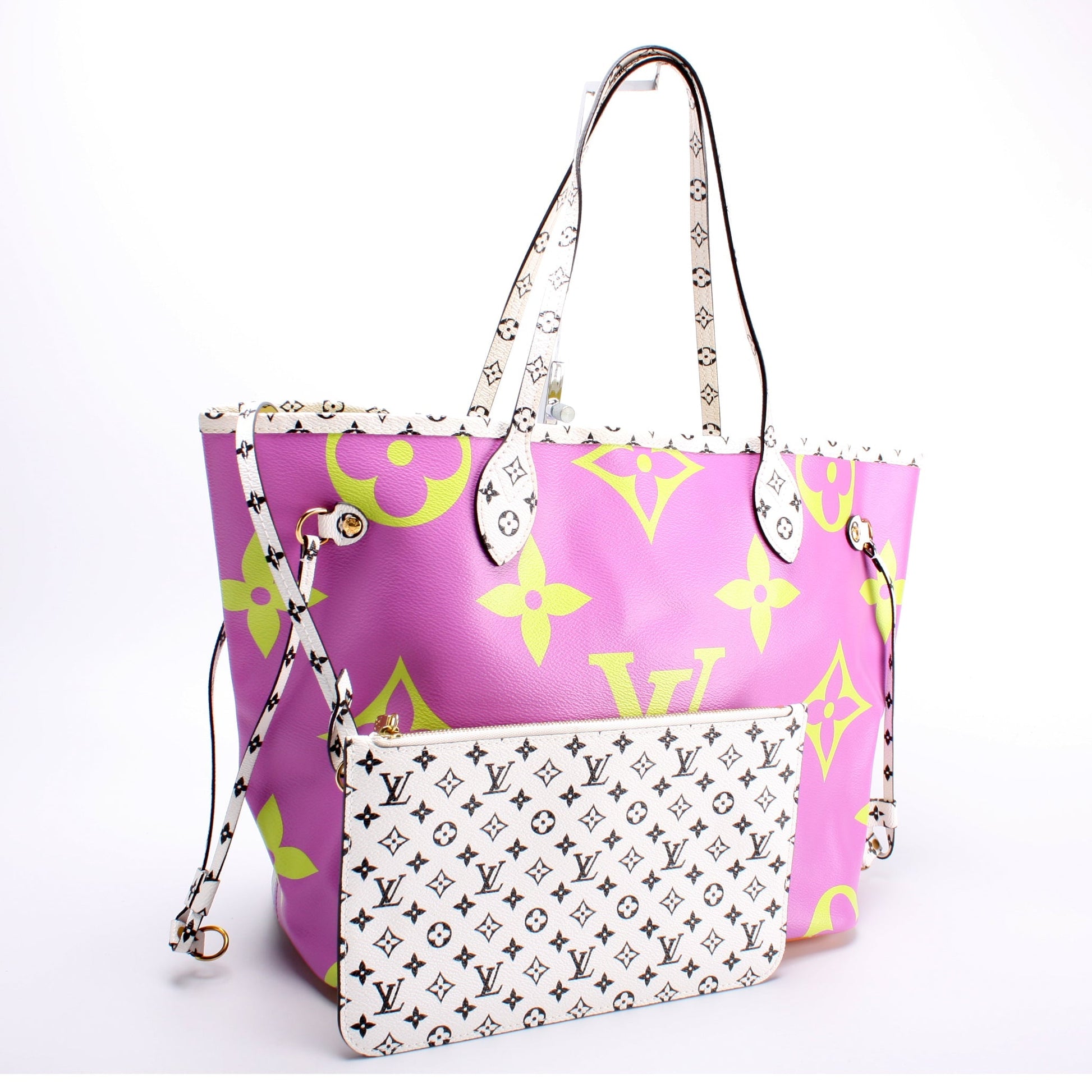 This Louis Vuitton Neverfull MMis eye catching bag. The exterior is in the classic Louis Vuitton Giant Monogram coated canvas.