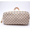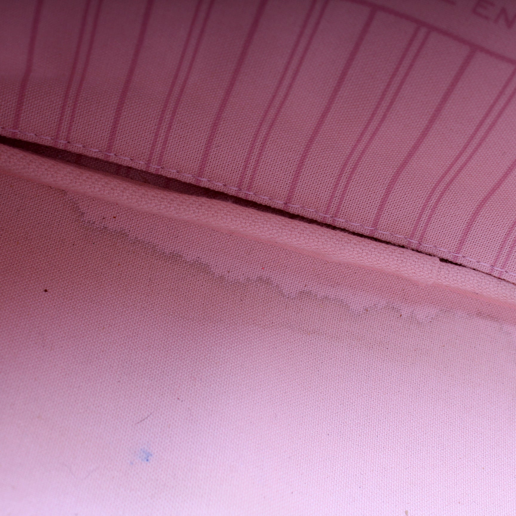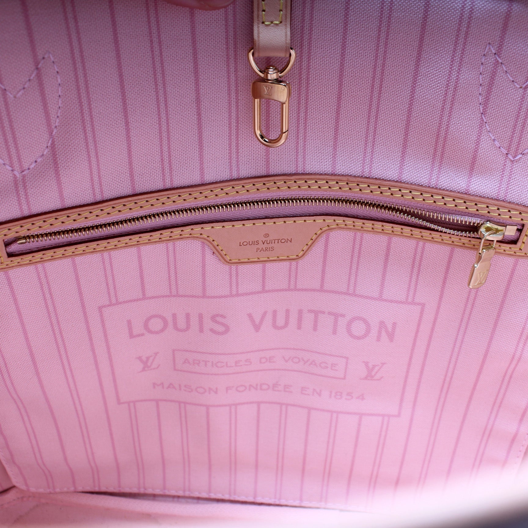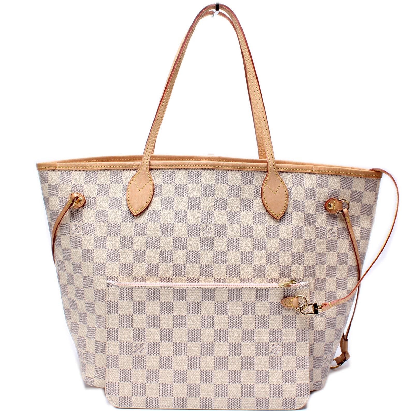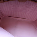 This Louis Vuitton Neverfull W/Wallet MMis eye catching bag. The exterior is in the classic Louis Vuitton Damier Azur coated canvas.