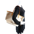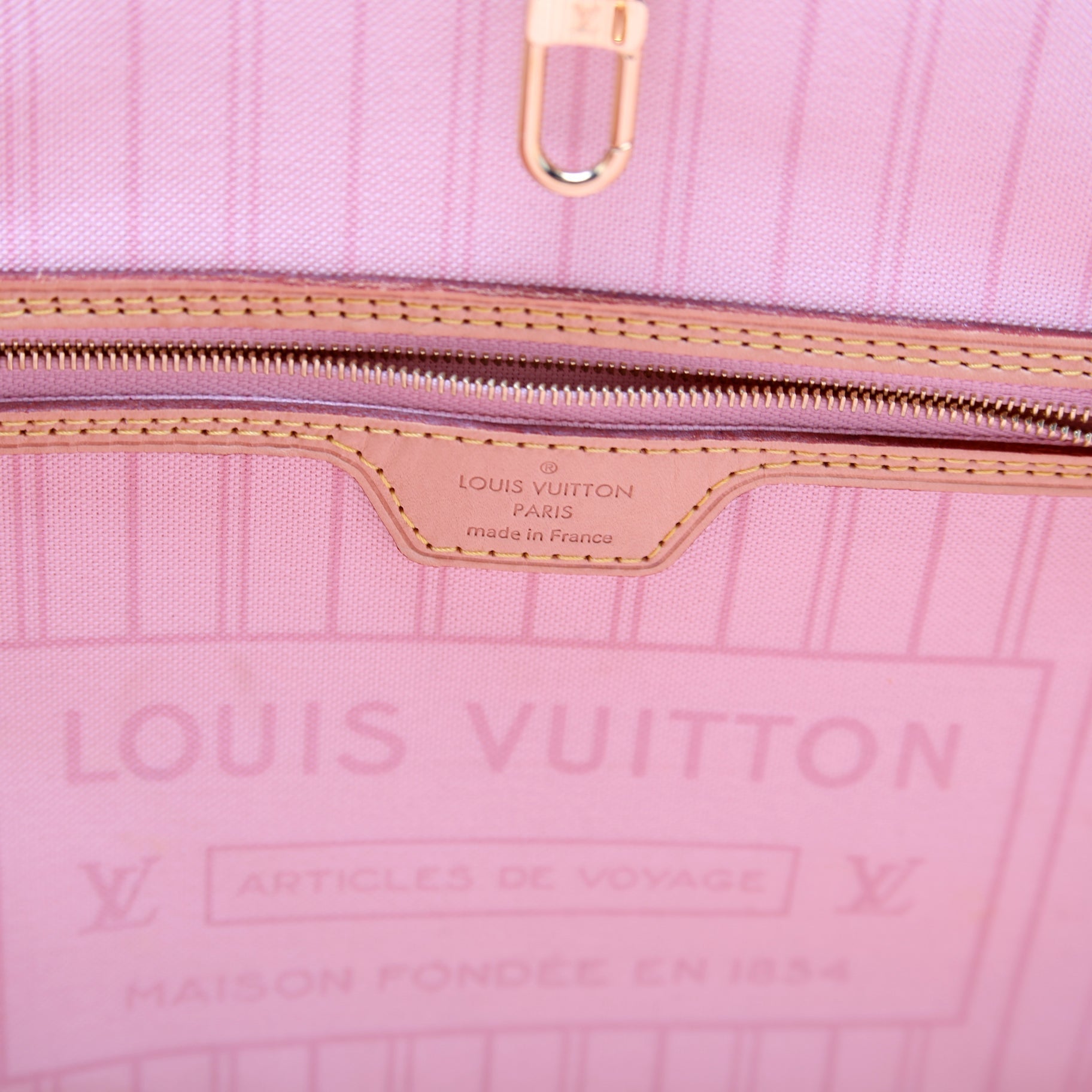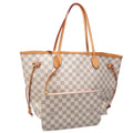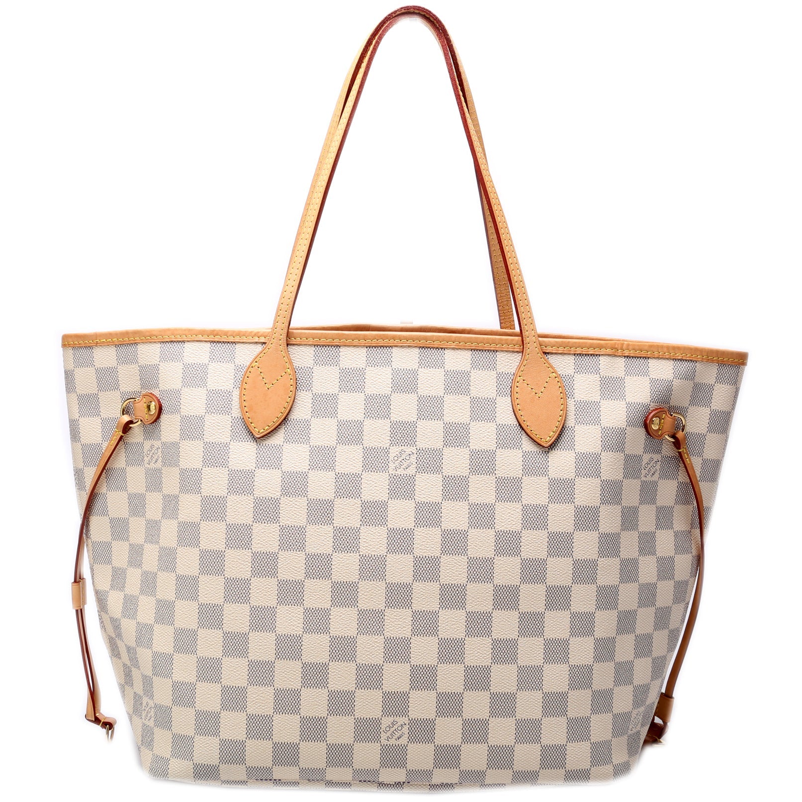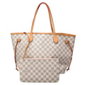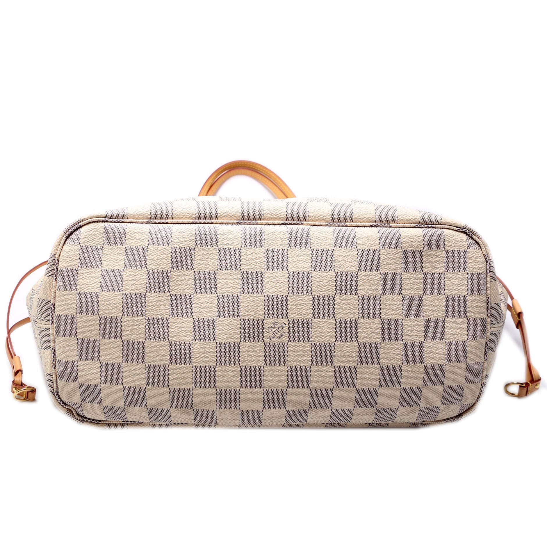 This Louis Vuitton Neverfull MM W/Walletis eye catching bag. The exterior is in the classic Louis Vuitton Damier Azur coated canvas.