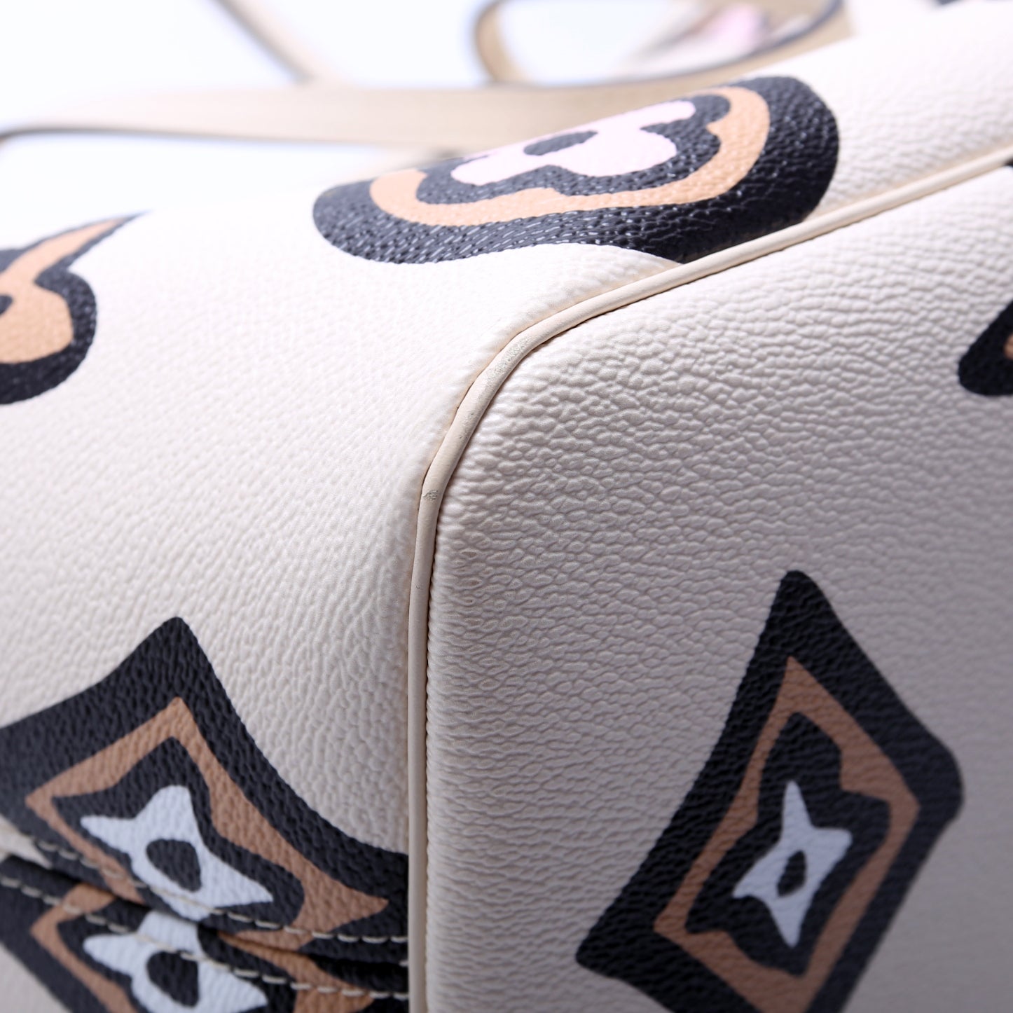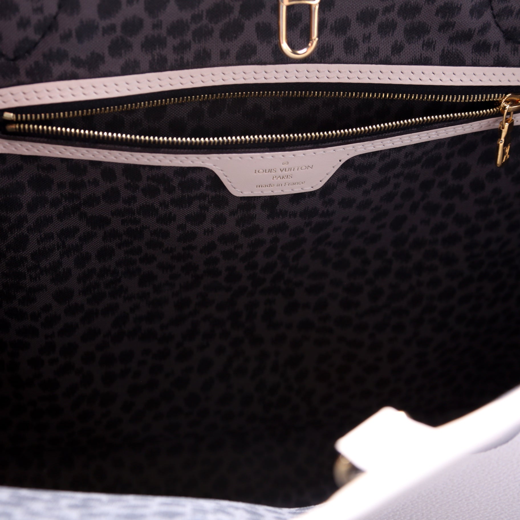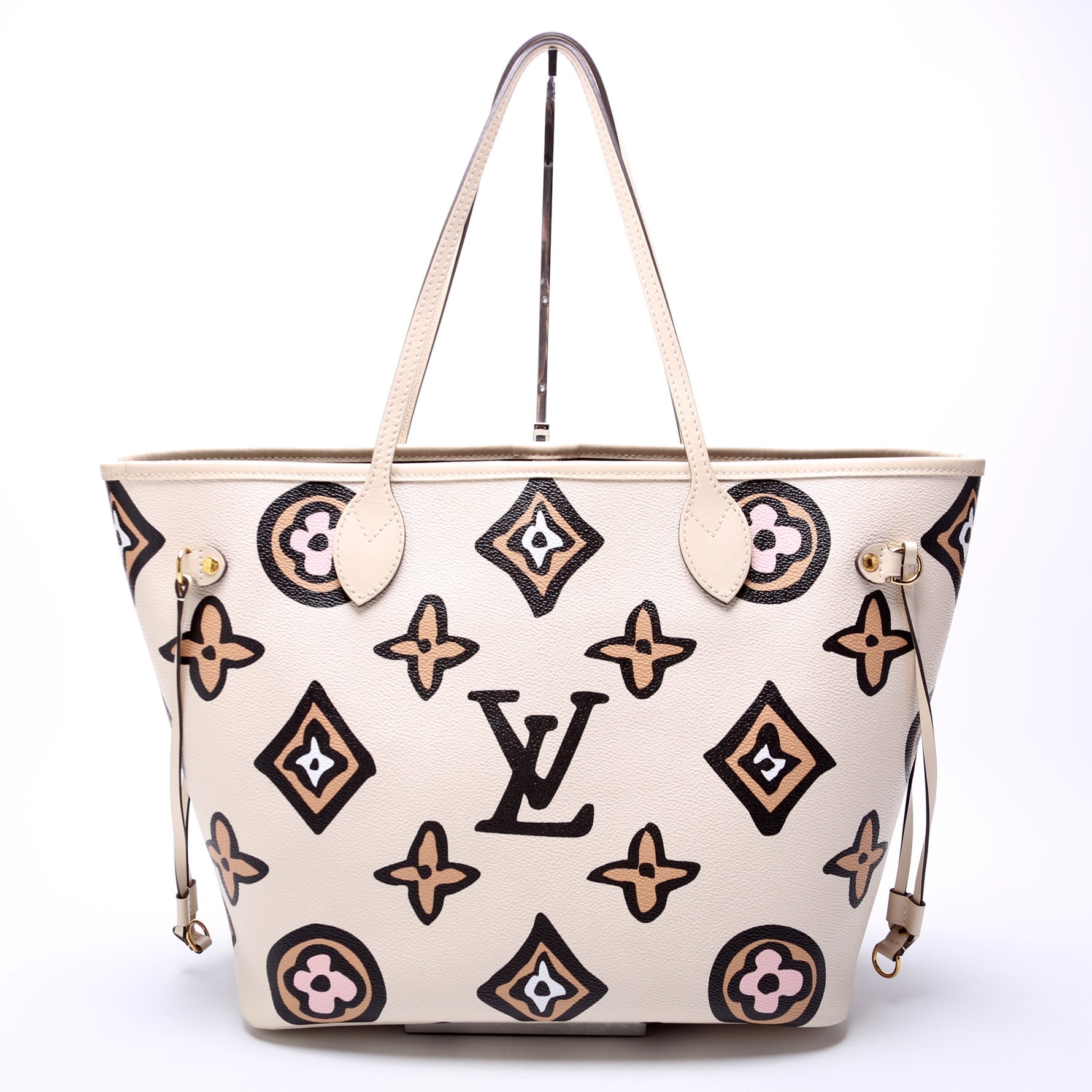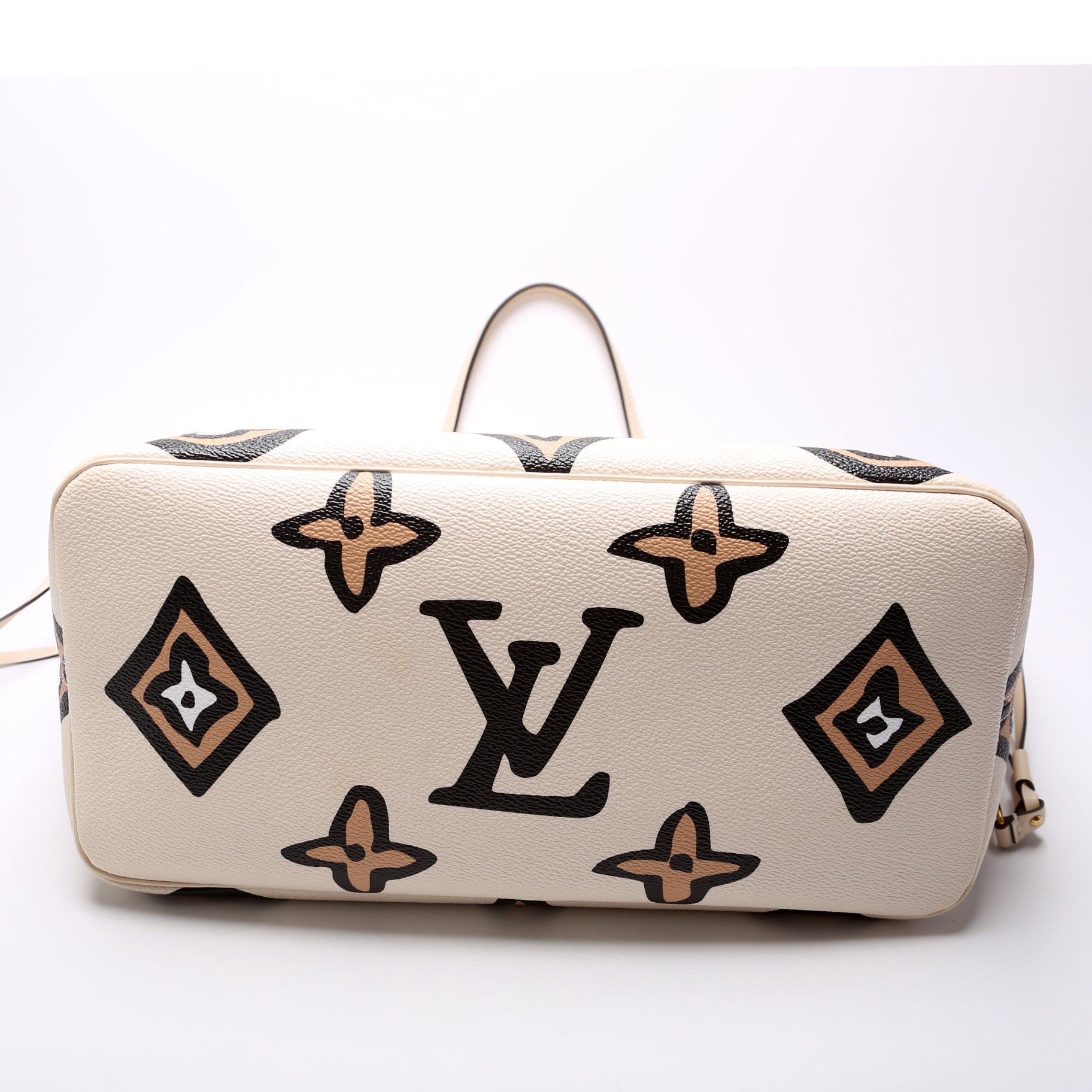 This Louis Vuitton Neverfull MMis eye catching bag. The exterior is in the classic Louis Vuitton Wild at Heart canvas.
