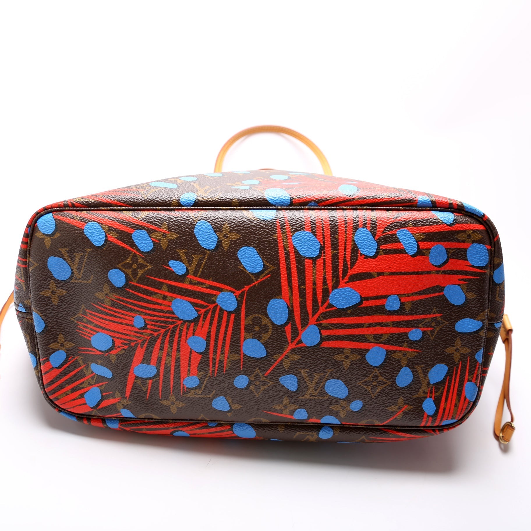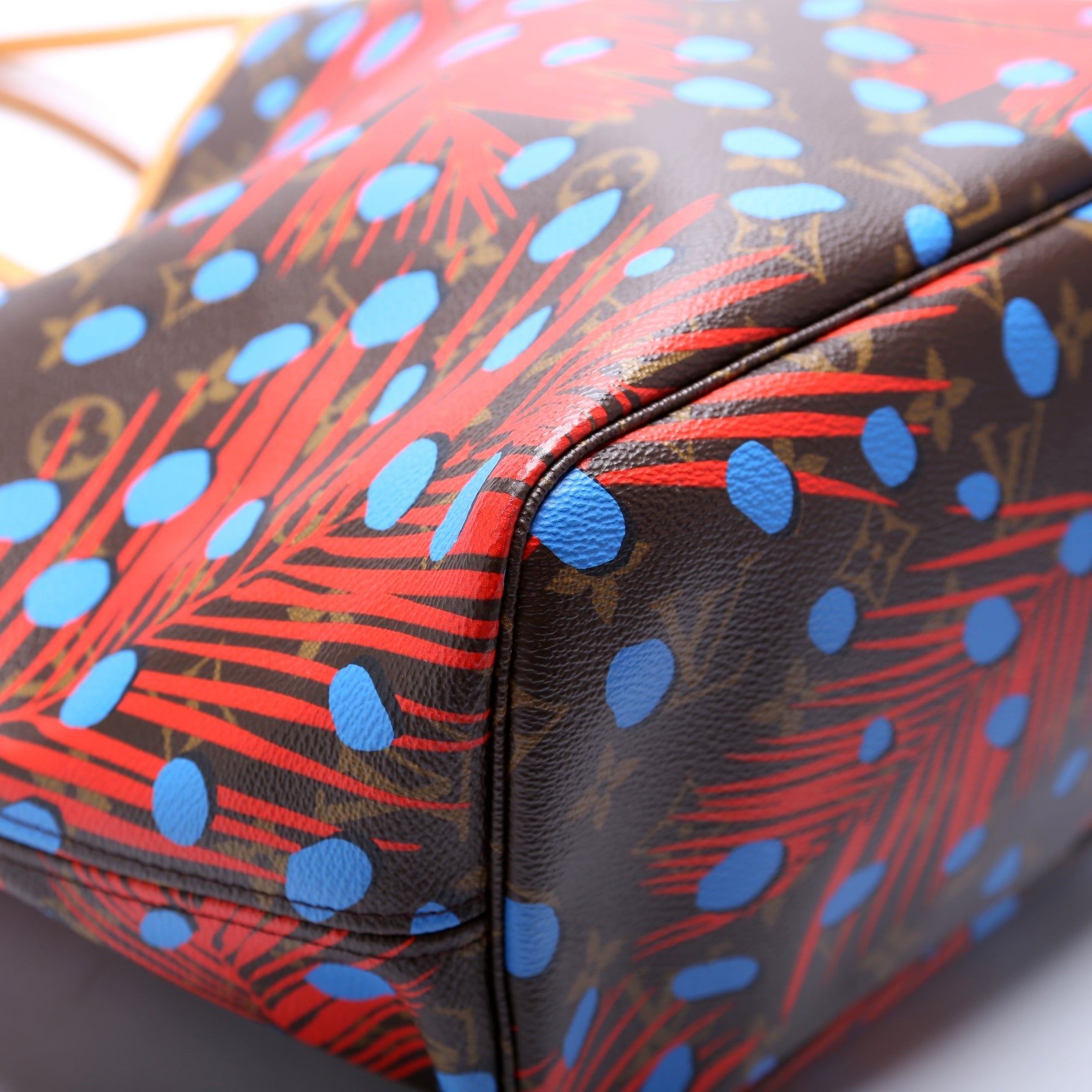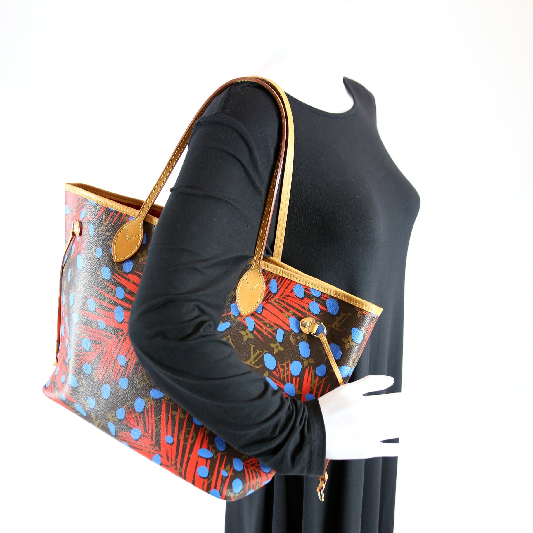 This Louis Vuitton Neverfull W/Wallet MMis eye catching bag. The exterior is in the classic Louis Vuitton Jungle Dots Monogram coated canvas.