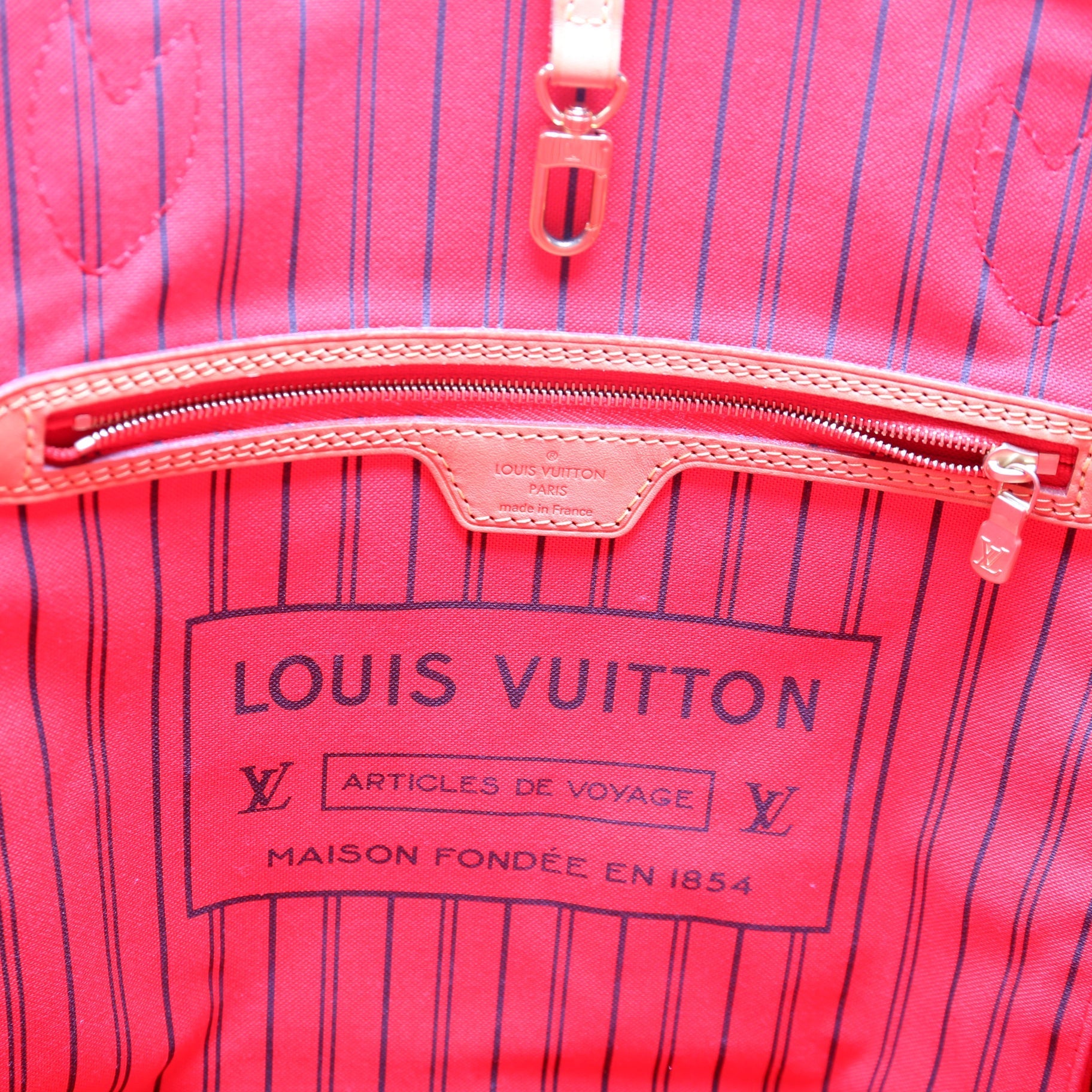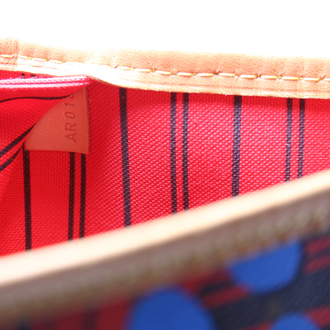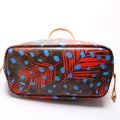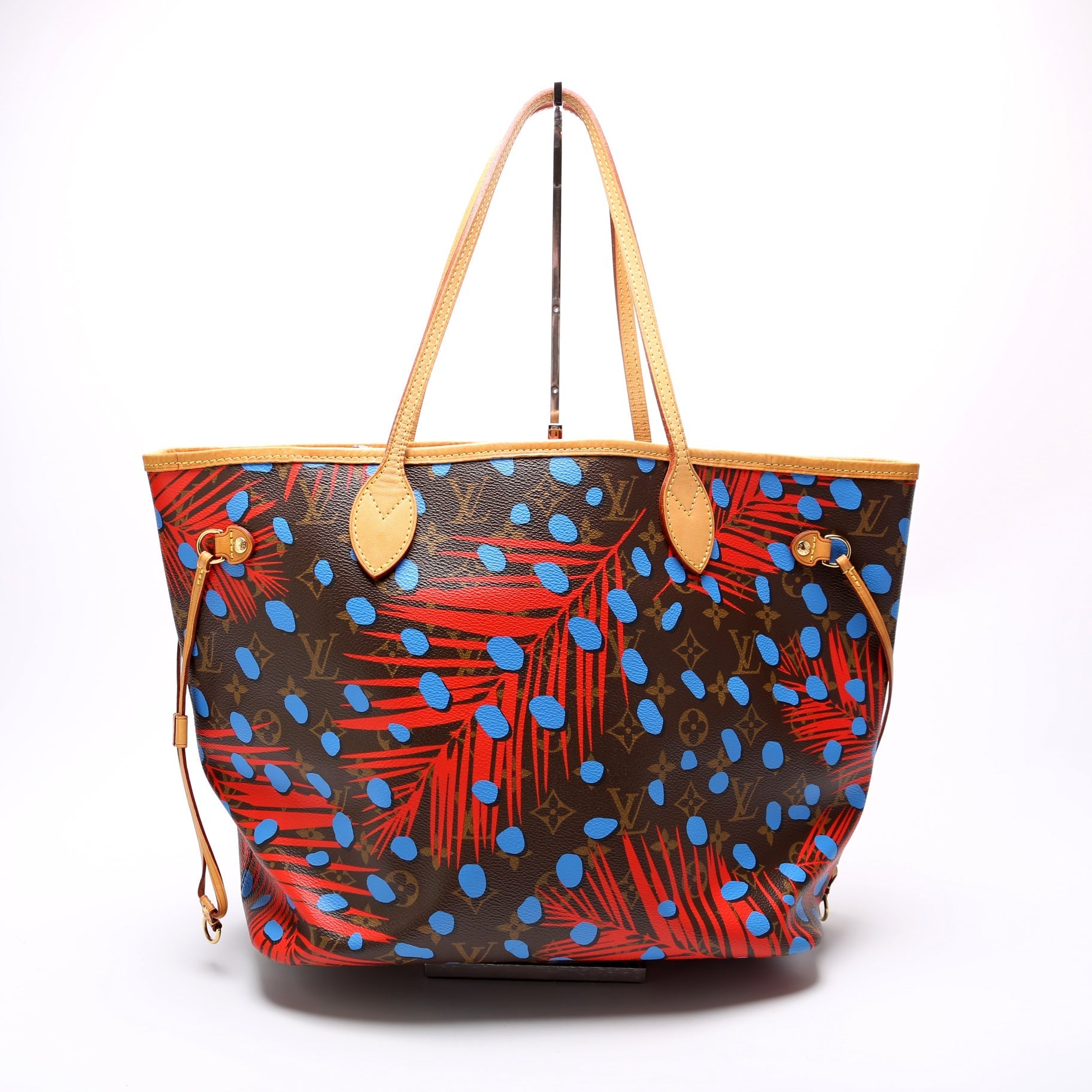 This Louis Vuitton Neverfull W/Wallet MMis eye catching bag. The exterior is in the classic Louis Vuitton Jungle Dots Monogram coated canvas.