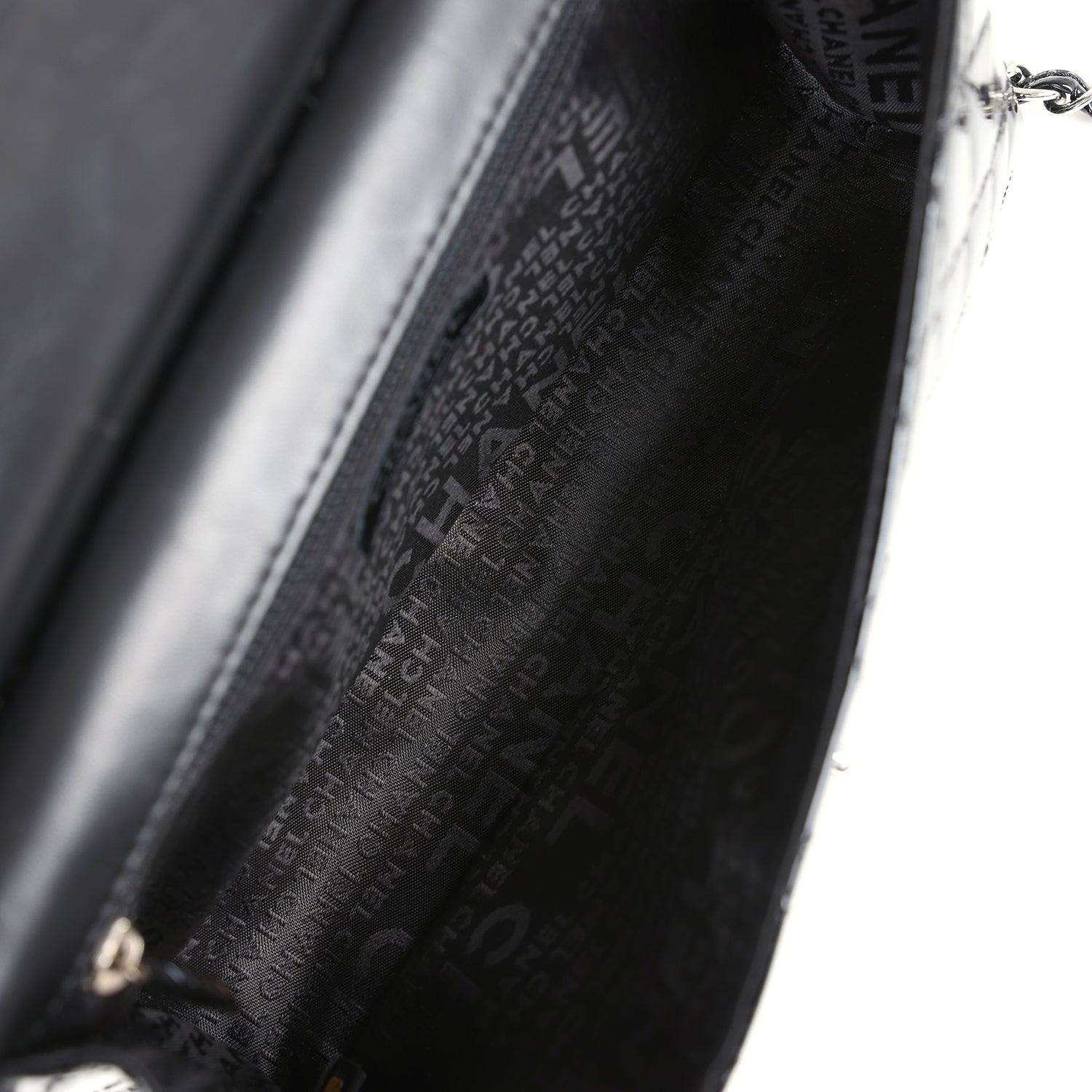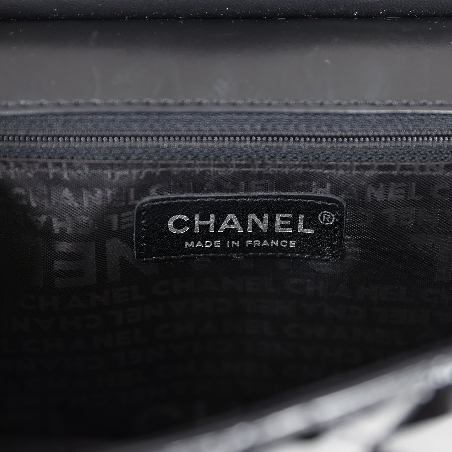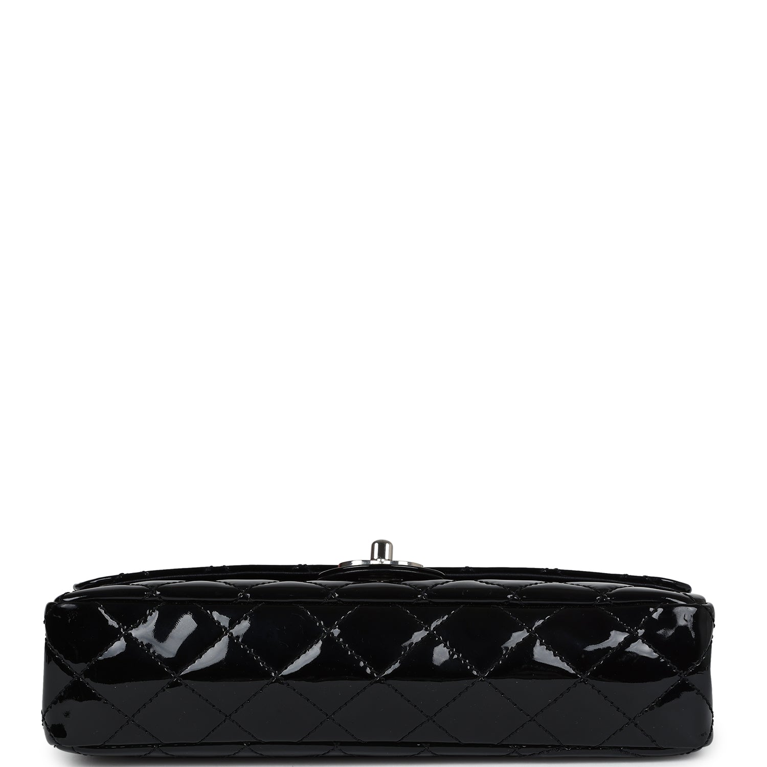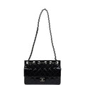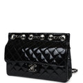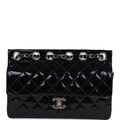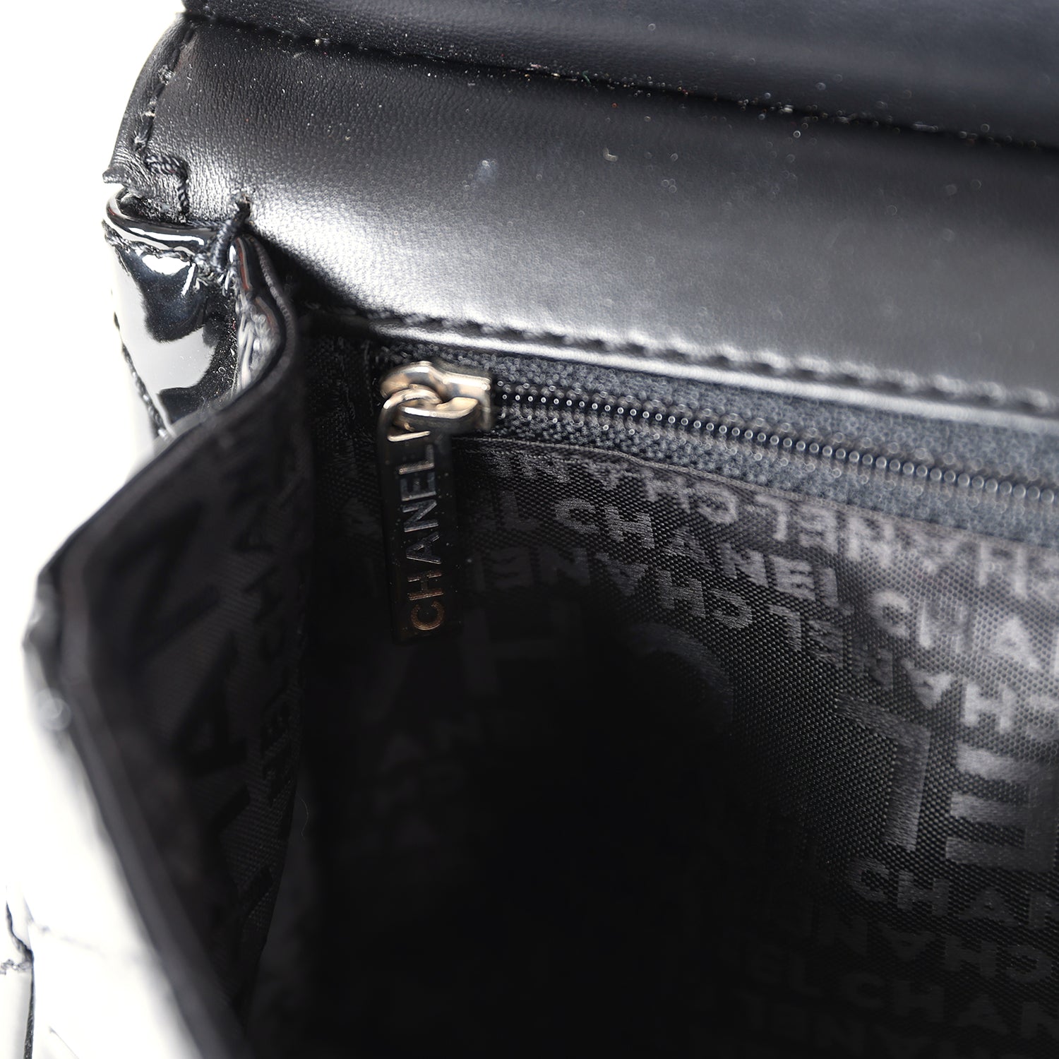 Chanel Chain Through Flap Bag Black Patent Silver Hardware