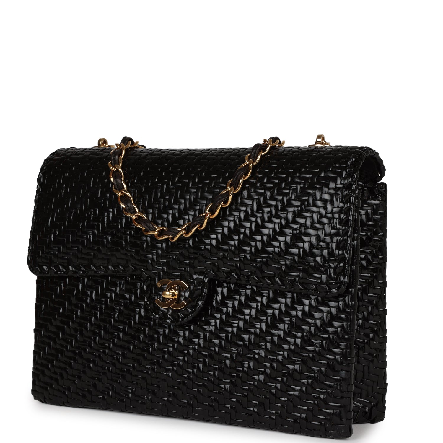 Chanel Flap Bag Black Wicker Gold Hardware