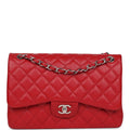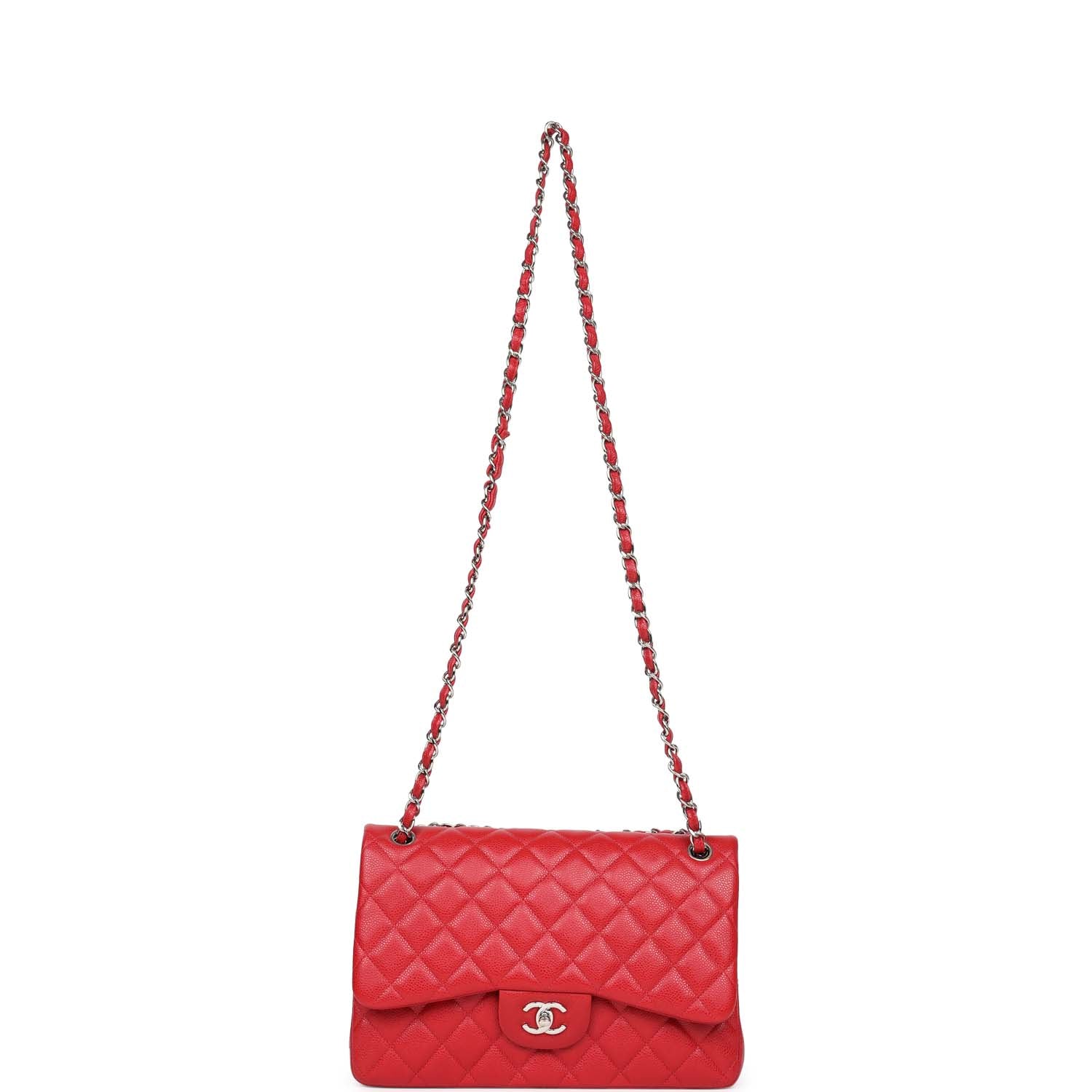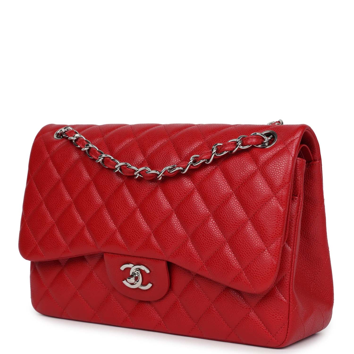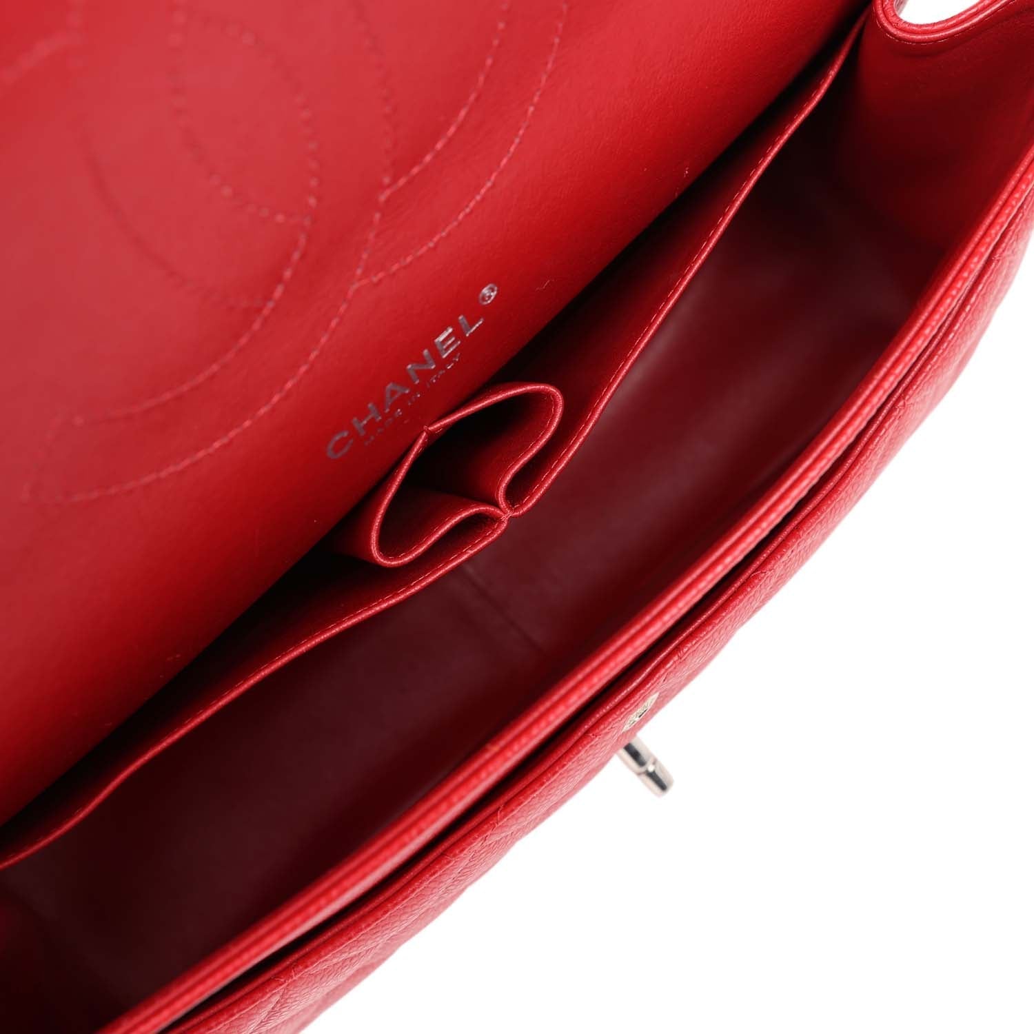 New Chanel Jumbo Classic Double Flap Red Caviar Silver Hardware