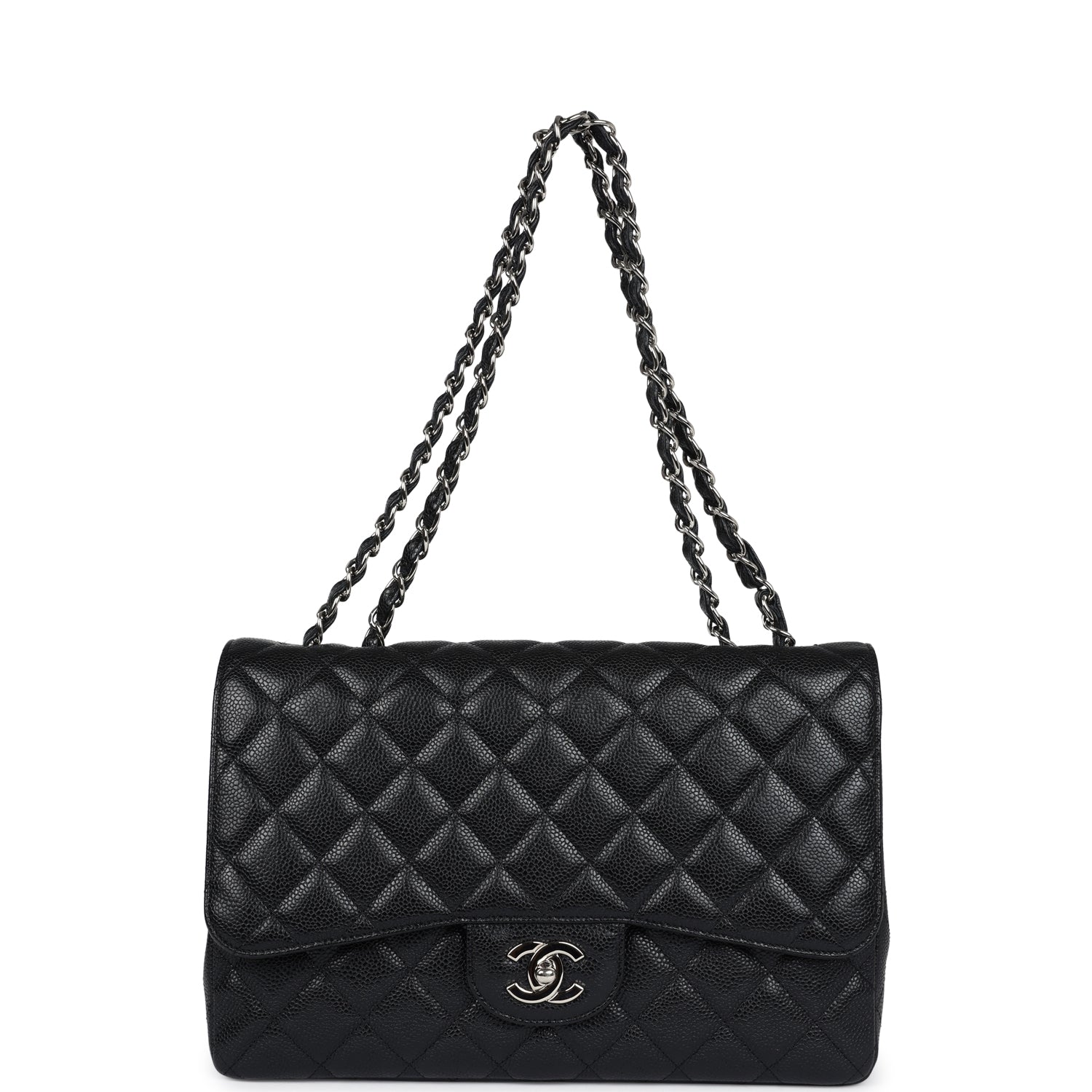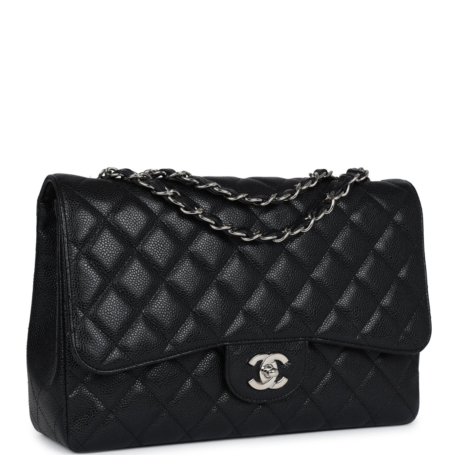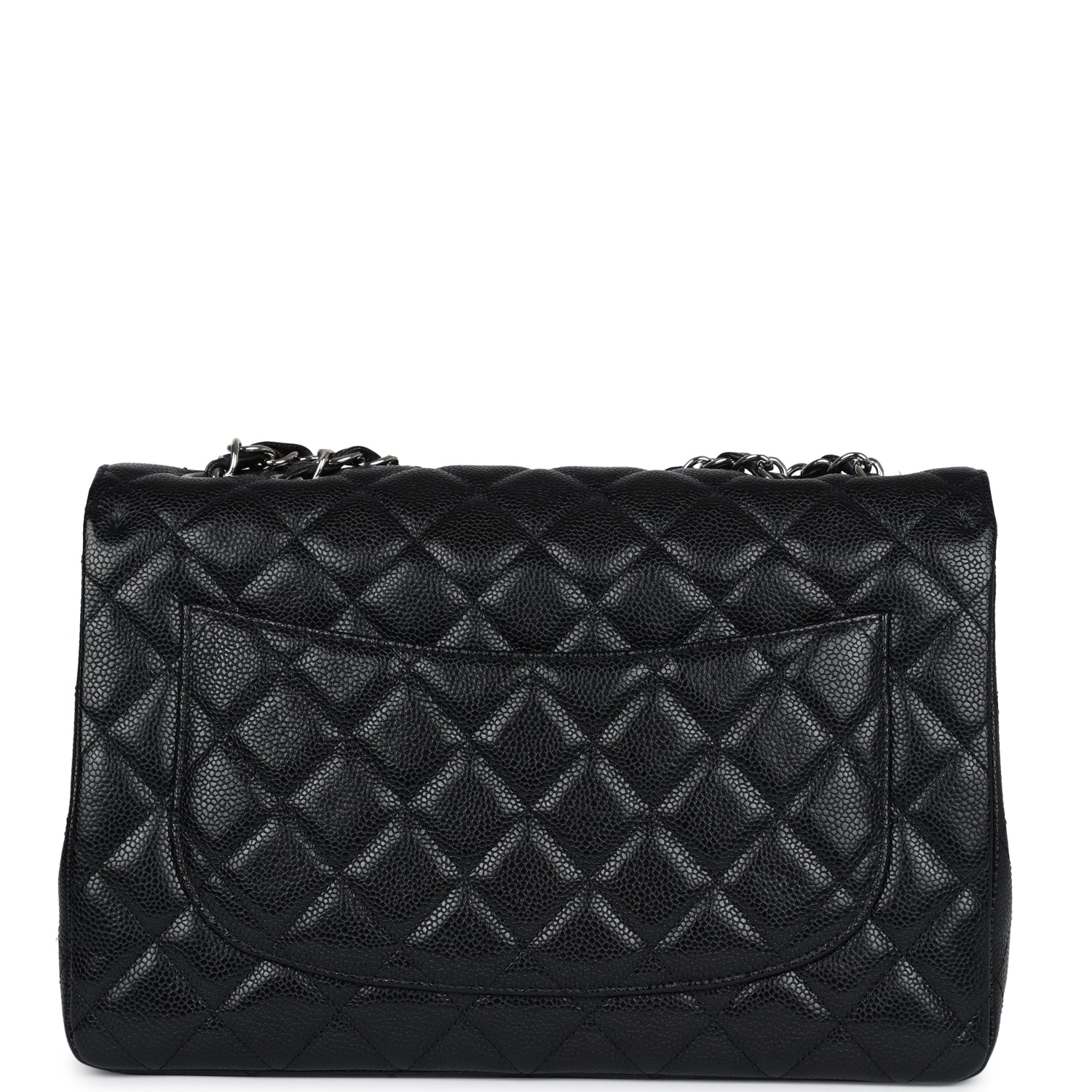 New Chanel Jumbo Classic Single Flap Bag Black Caviar Silver Hardware