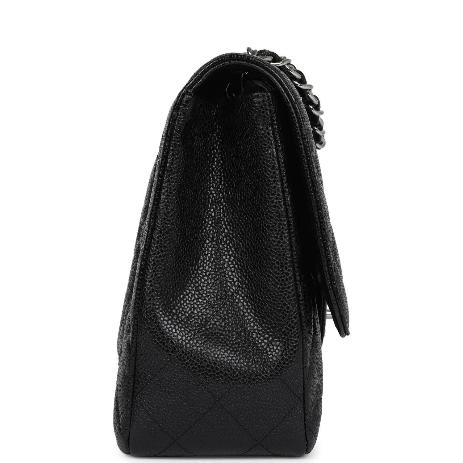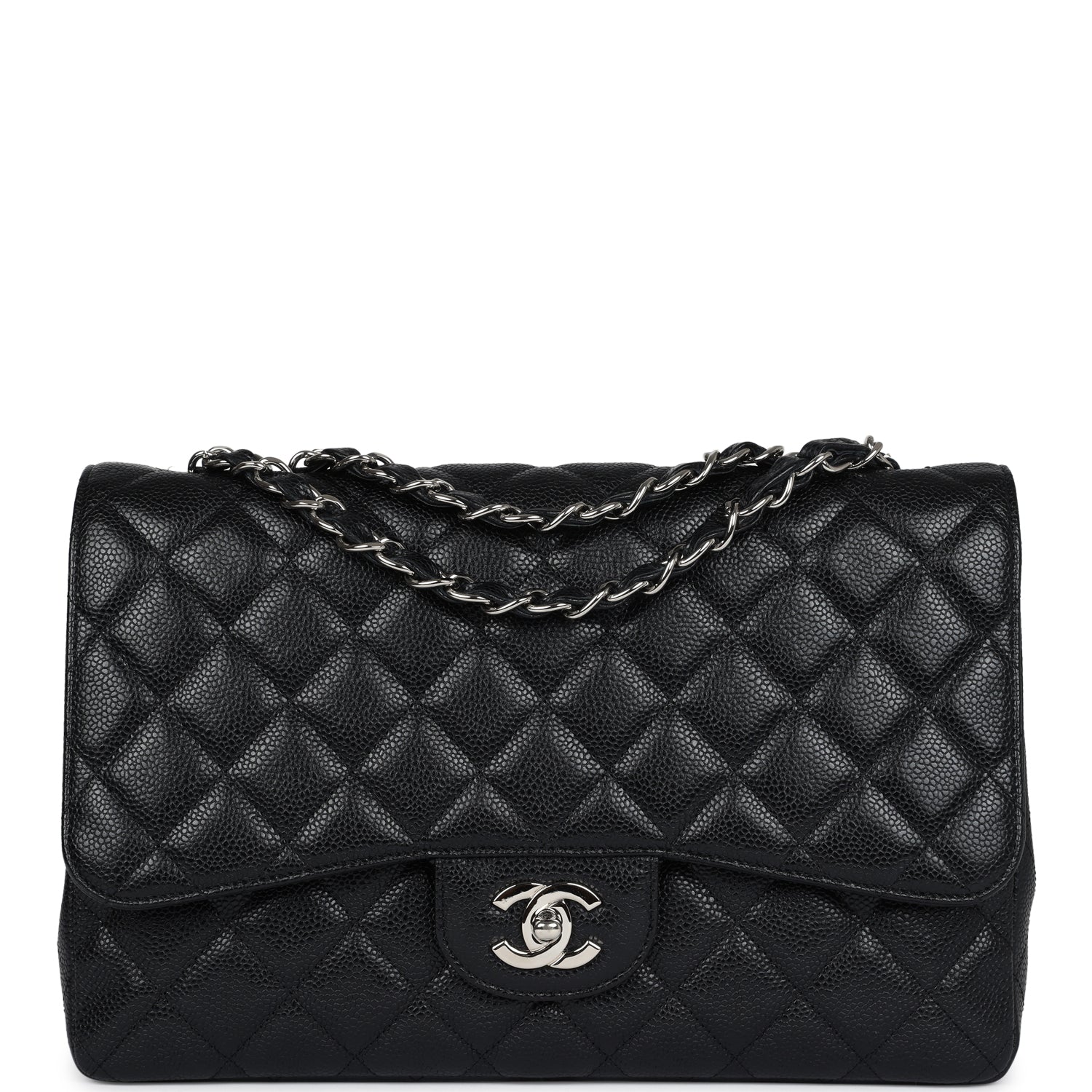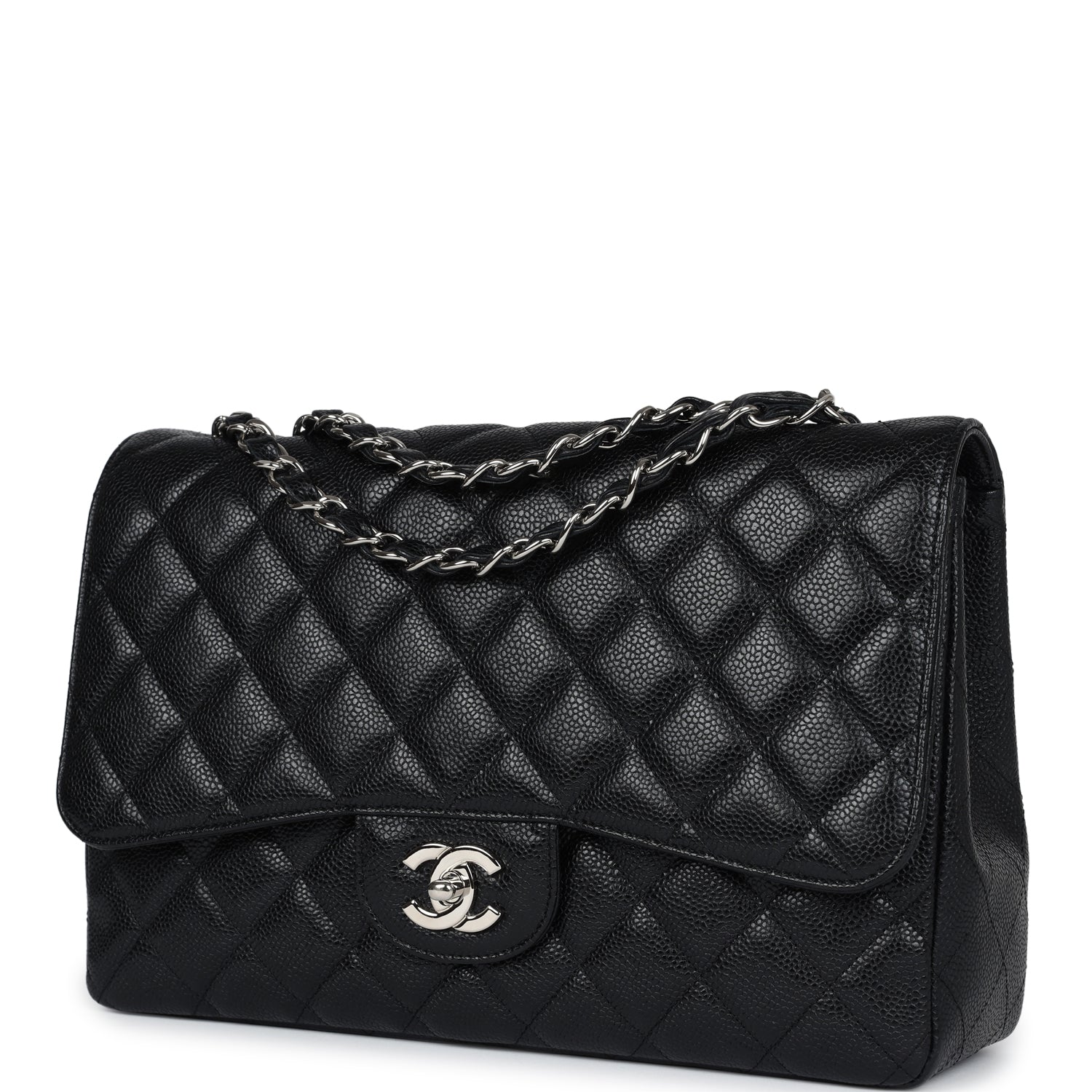 New Chanel Jumbo Classic Single Flap Bag Black Caviar Silver Hardware