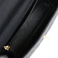 This New Chanel Kelly top handle flap bag is in black caviar leather with gold hardware, features the signature CC turnlock closure with front flap, half moon back pocket and a black rolled top handle.