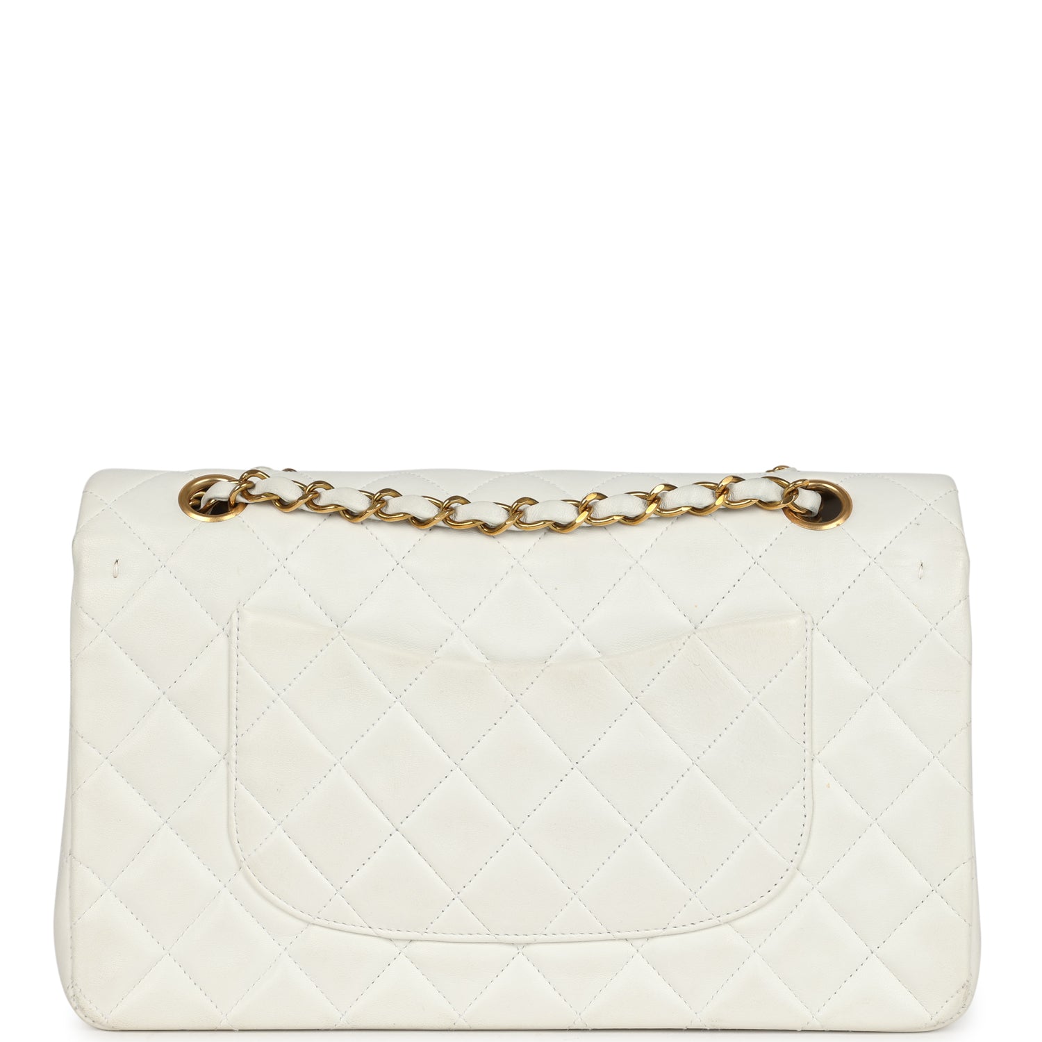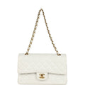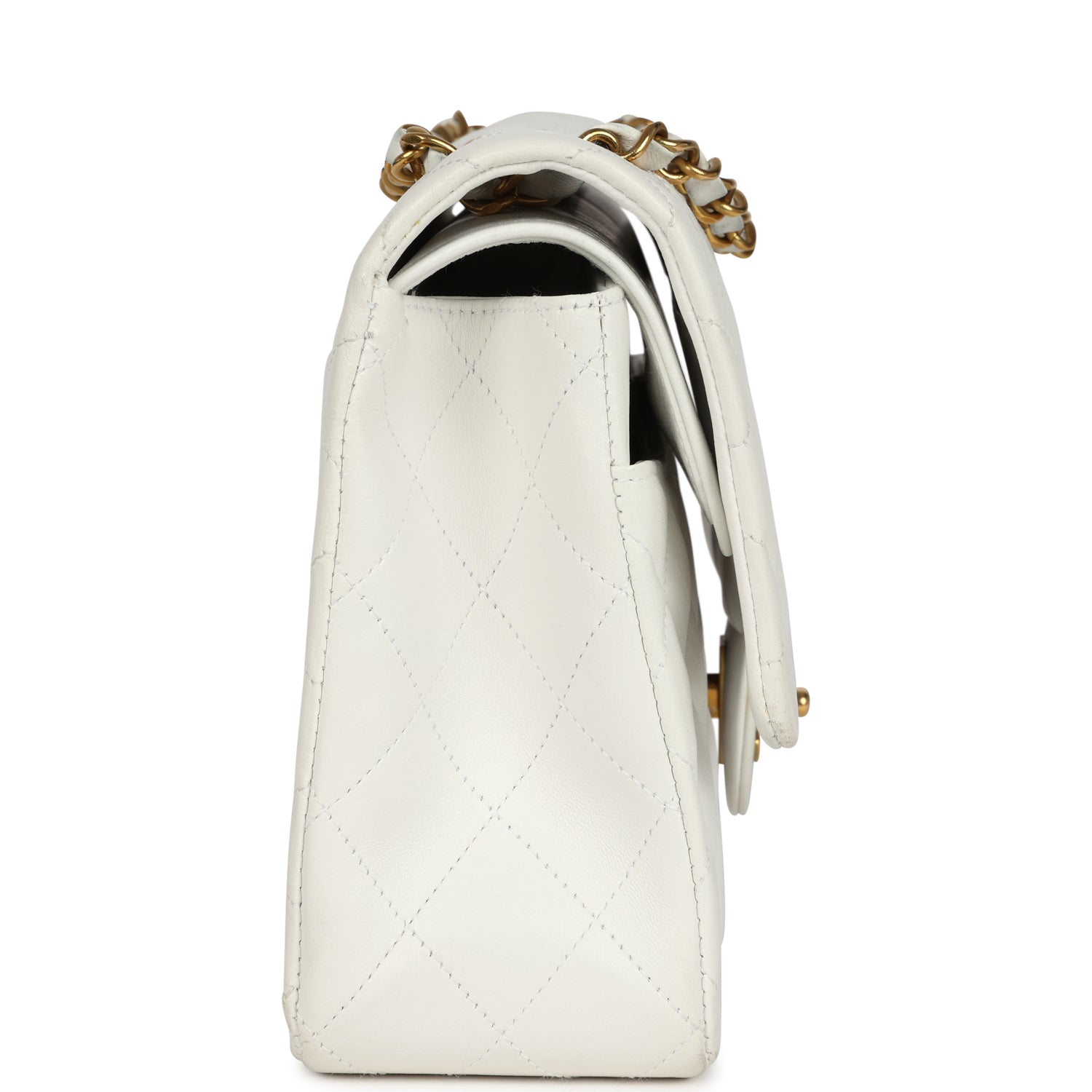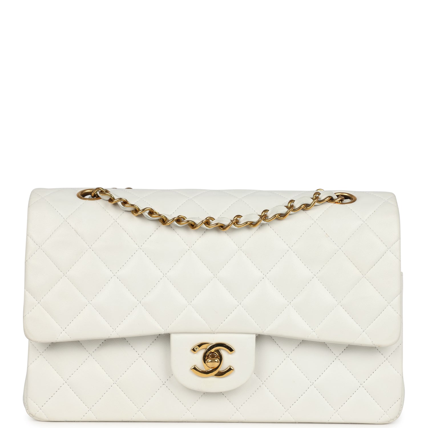 New Chanel Medium Classic Double Flap Bag White Lambskin Gold Hardware