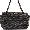 New Chanel Medium Single Flap Black and White Tweed With Crystals Silver Hardware