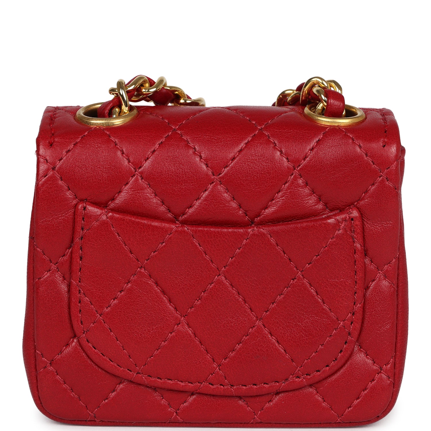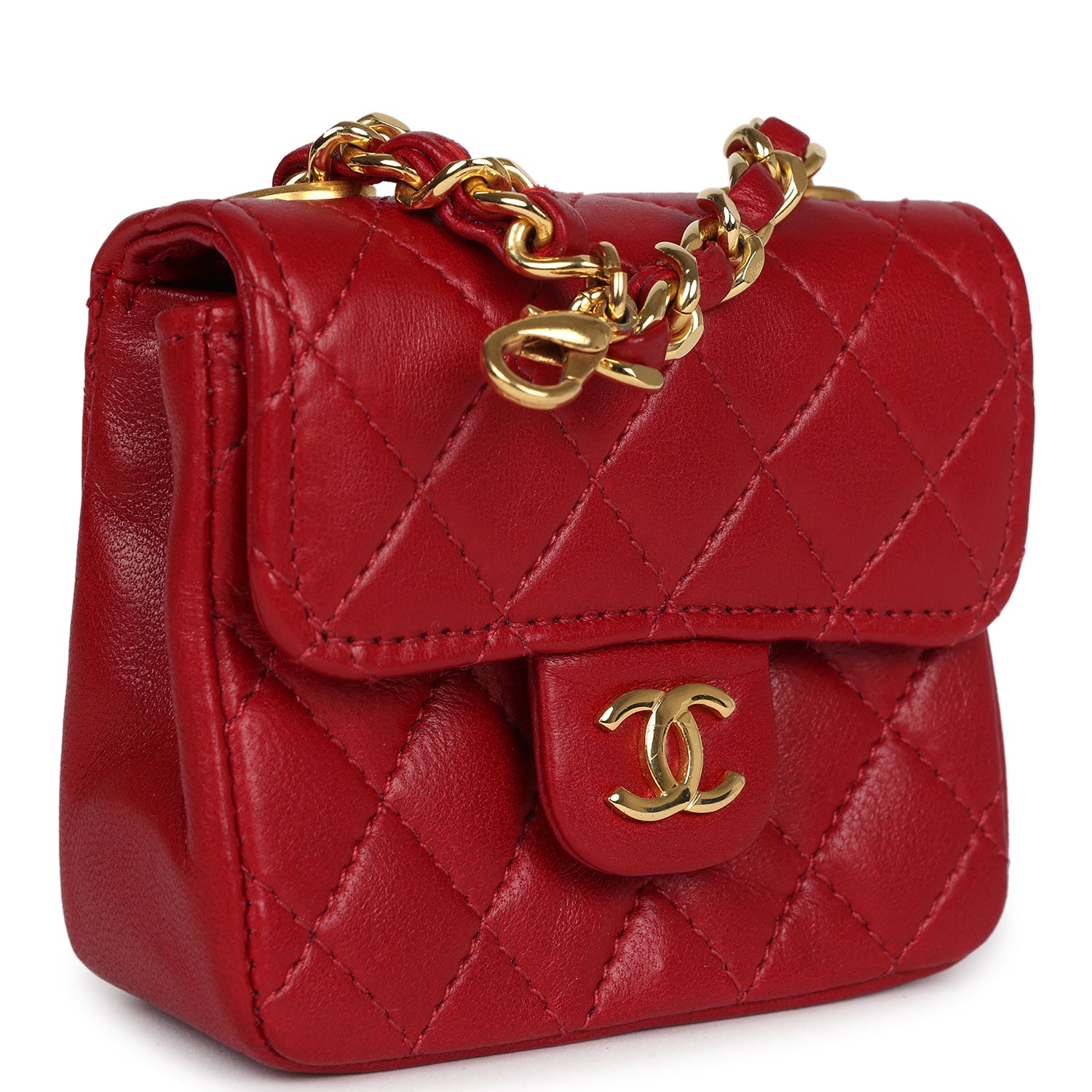 Chanel Micro Belt Flap Bag Red Lambskin Gold Hardware