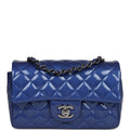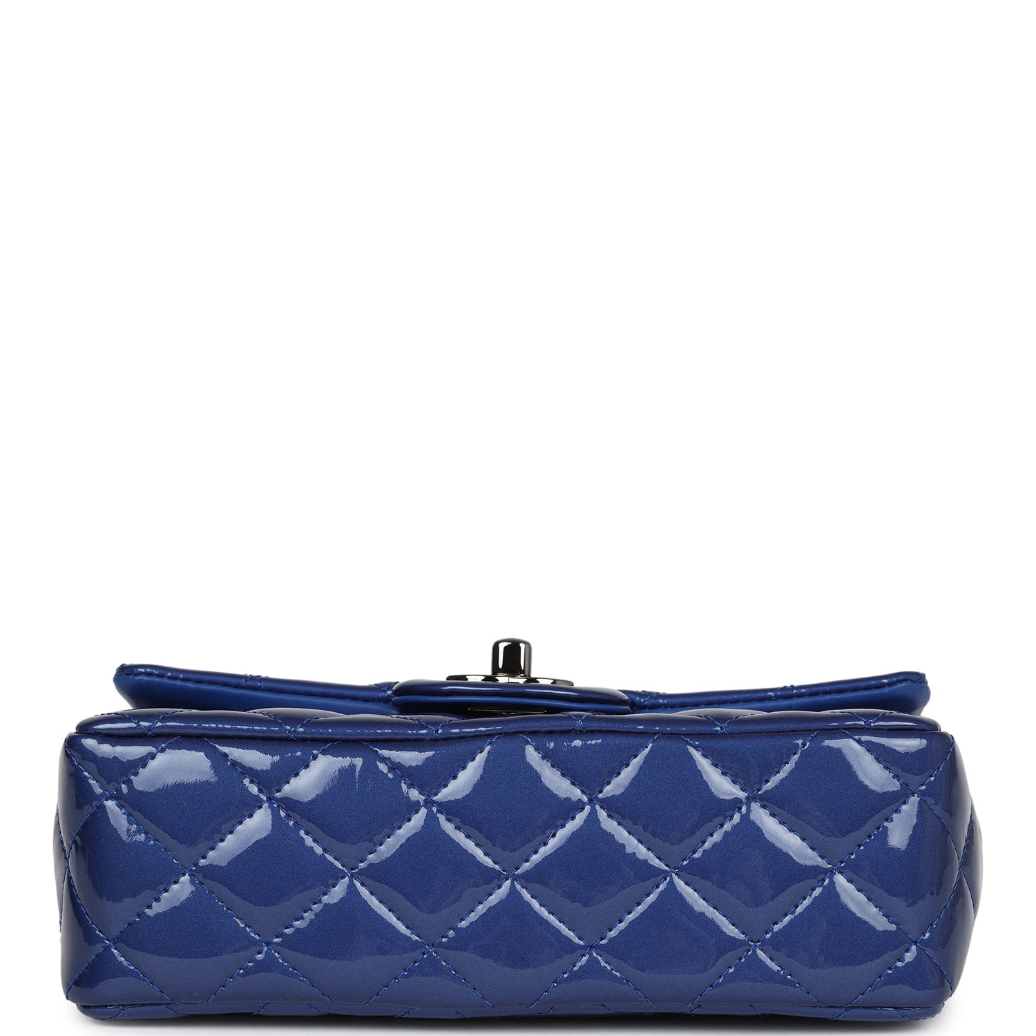 New Chanel Mini Rectangular Flap Bag Blue Patent Ruthenium Hardware