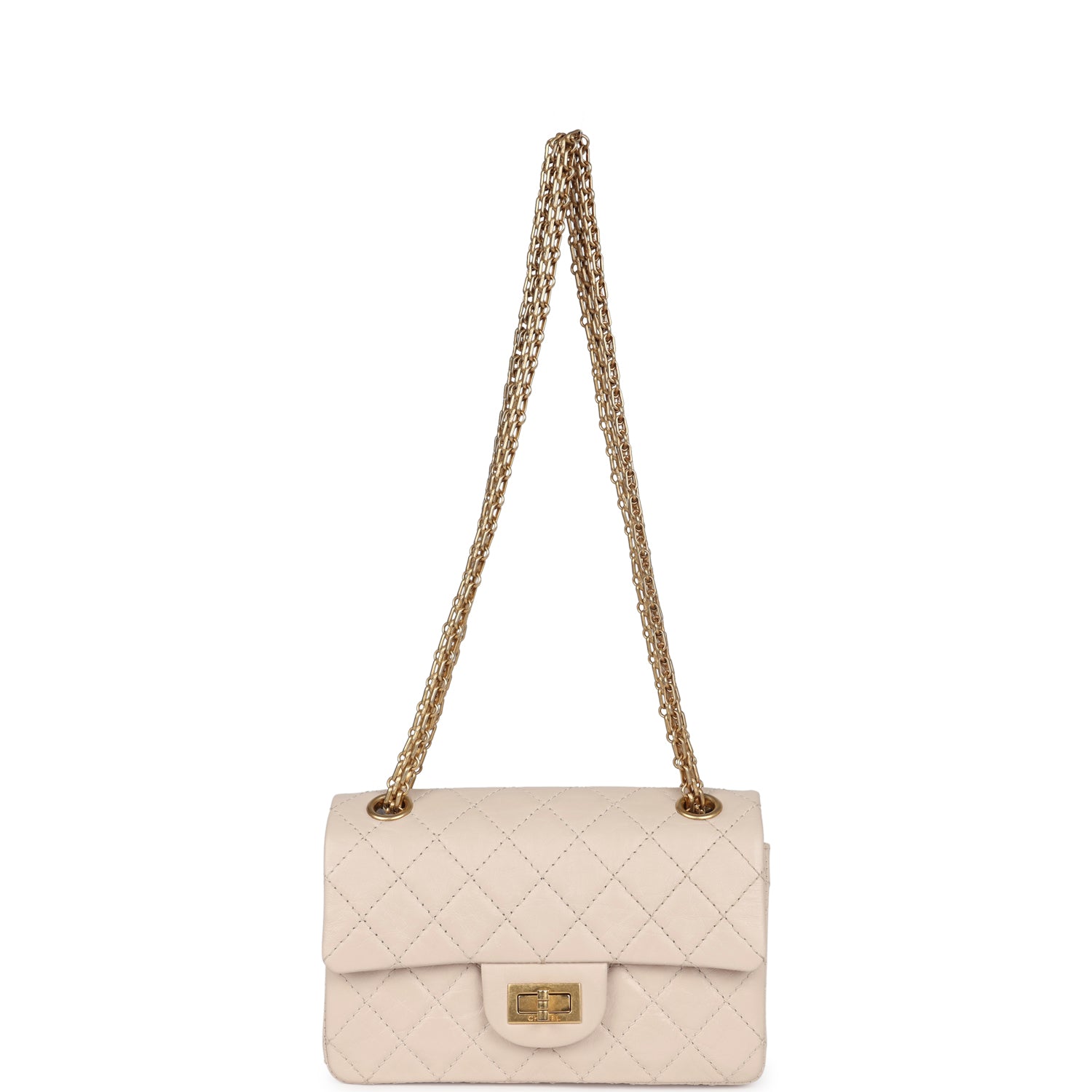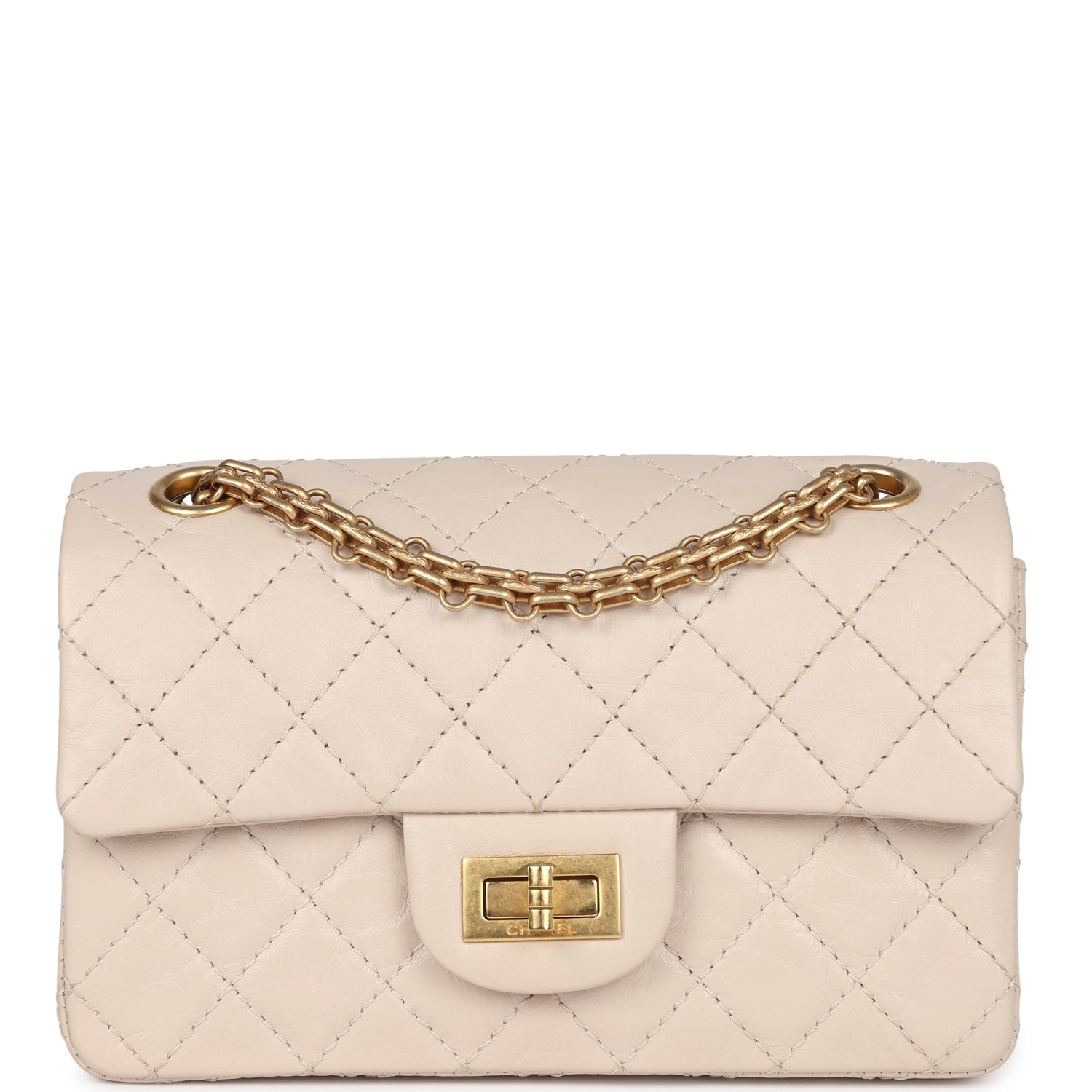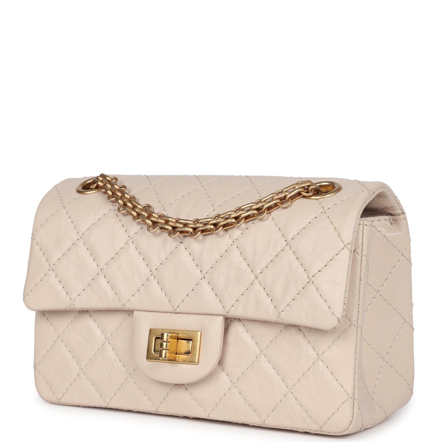 New Chanel Mini Reissue 224 2.55 Flap Bag Beige Aged Calfskin Antique Gold Hardware