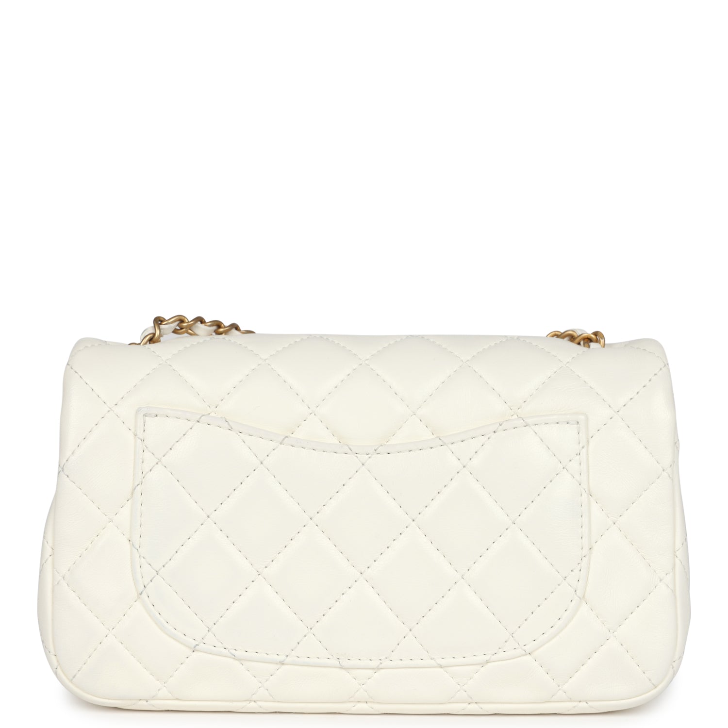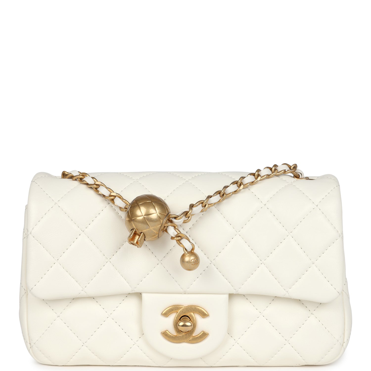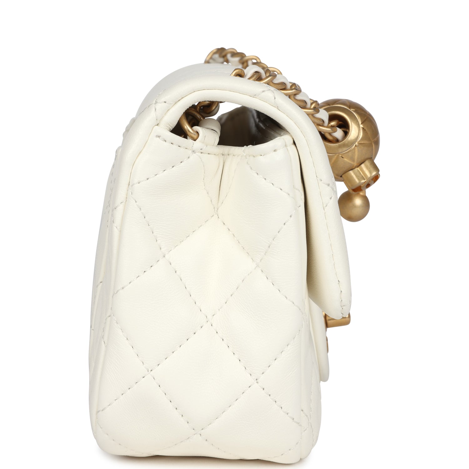 New Chanel Mini Square Pearl Crush Flap Bag White Lambskin Antique Gold Hardware