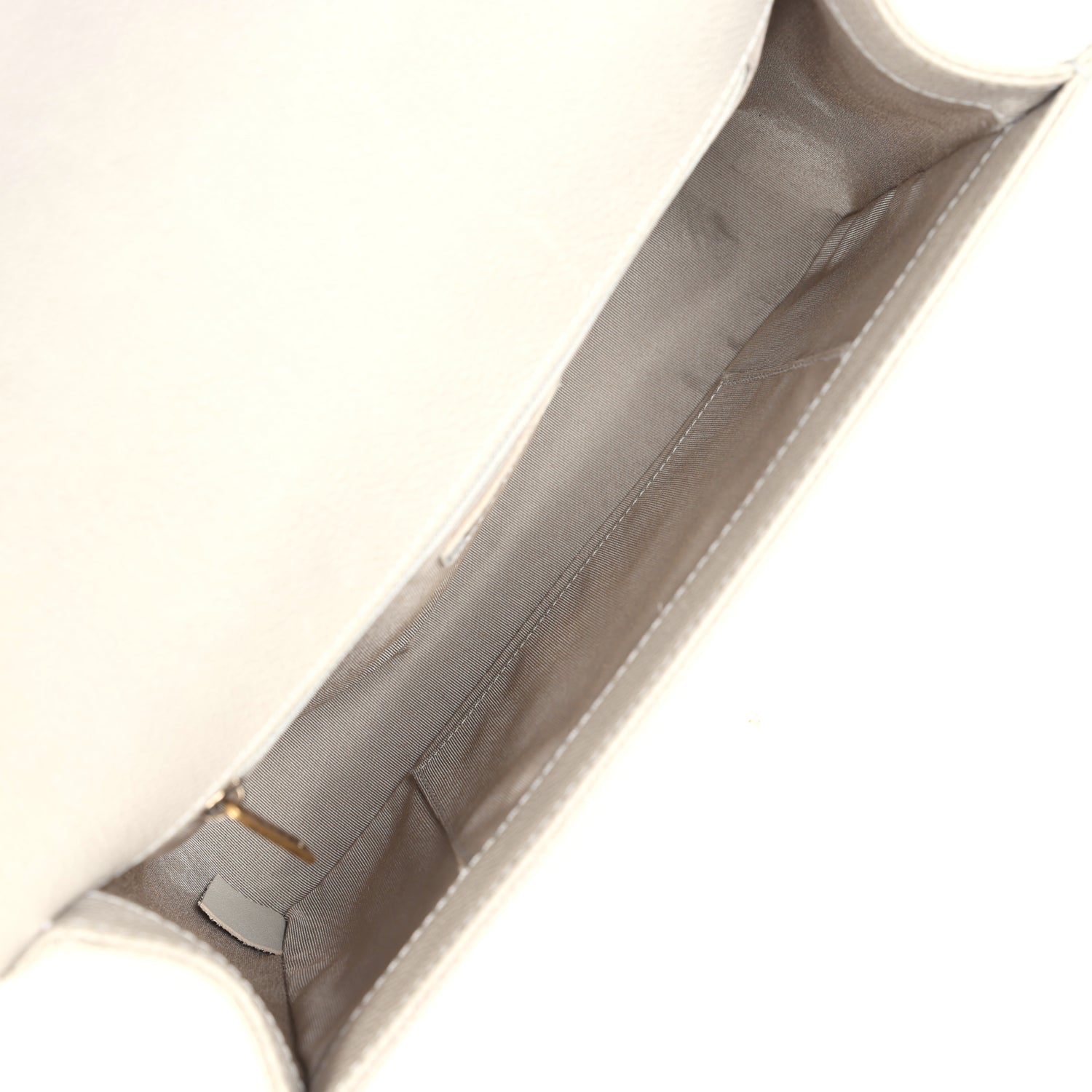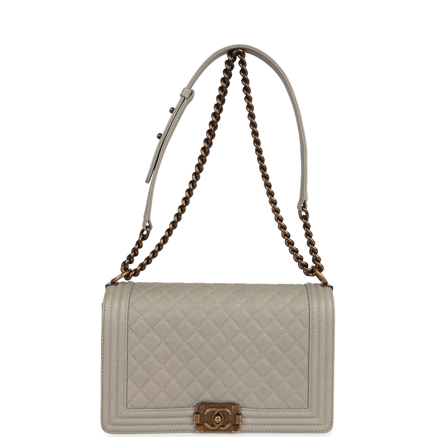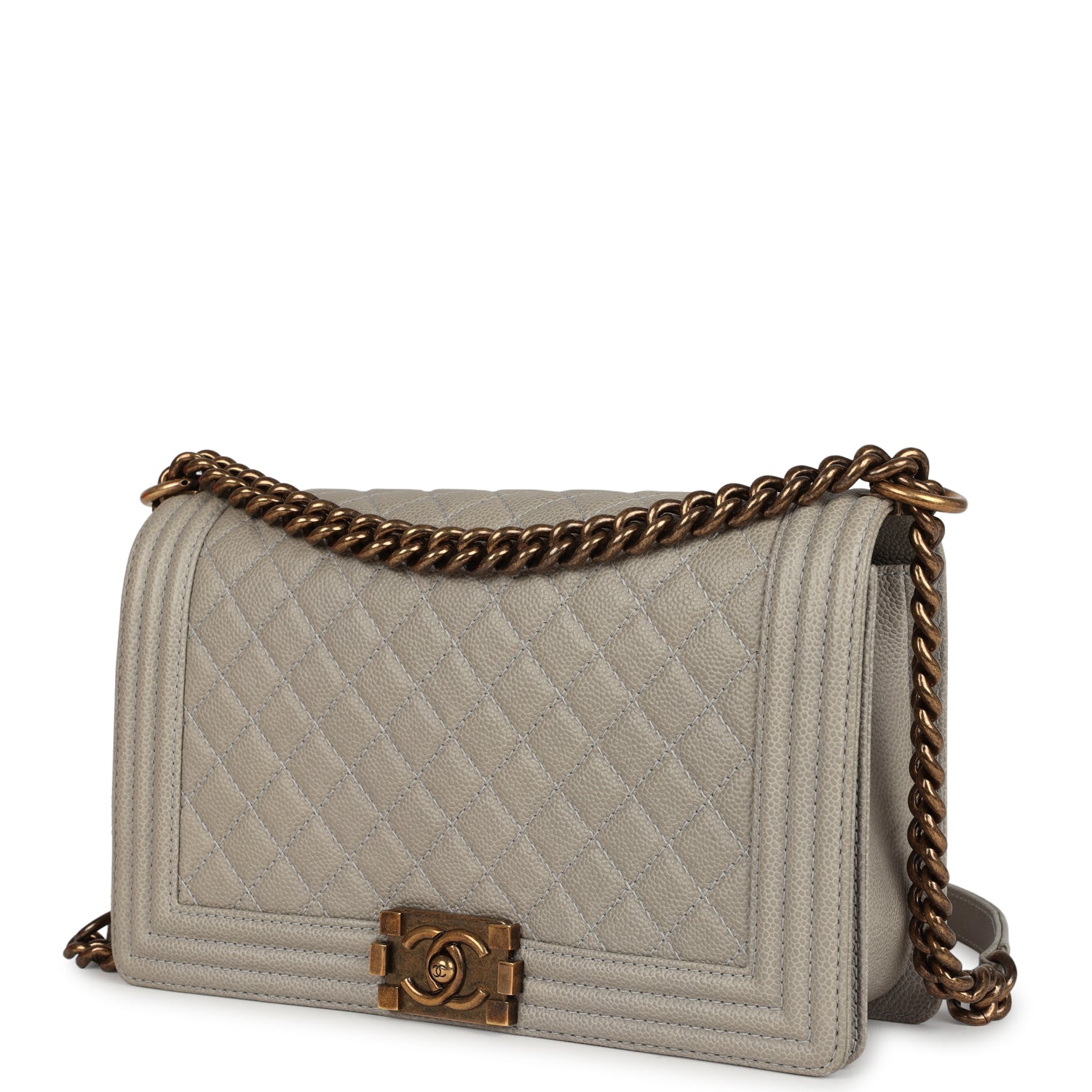 New Chanel New Medium Boy Bag Grey Caviar Antique Gold Hardware