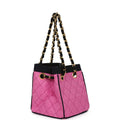 New Chanel Set of Two Mini Bucket Bag & Oval Handbag Pink and Black Raffia Gold Hardware