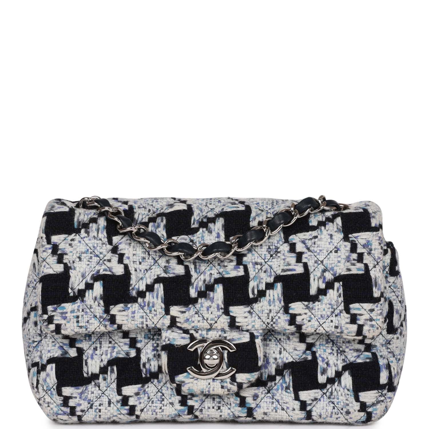 Chanel Mini Rectangular Flap Bag Blue Tweed Silver Hardware