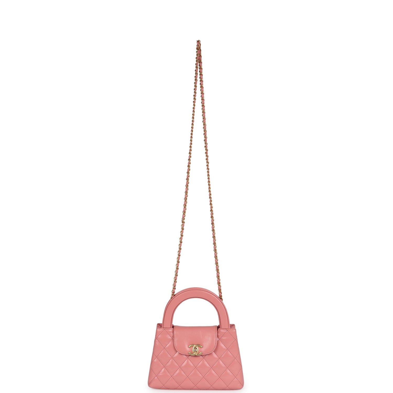 New Chanel Small Kelly Shopper Pink Shiny Aged Calfskin Brushed Gold Hardware