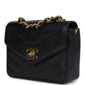 New Chanel Square Chevron Envelope Flap Bag Black Caviar Gold Hardware