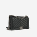 The ‘Boy’ bag, first introduced in 2011 and named after Coco Chanel’s lifetime love, is part of their iconic collection. Previously known as the 'new' medium, the now Large boy bag is the ideal piece to carry with you throughout the day. Wear with the unique rainbow hardware chain doubled up over the shoulder for an evening look or wear cross body for a more casual style.