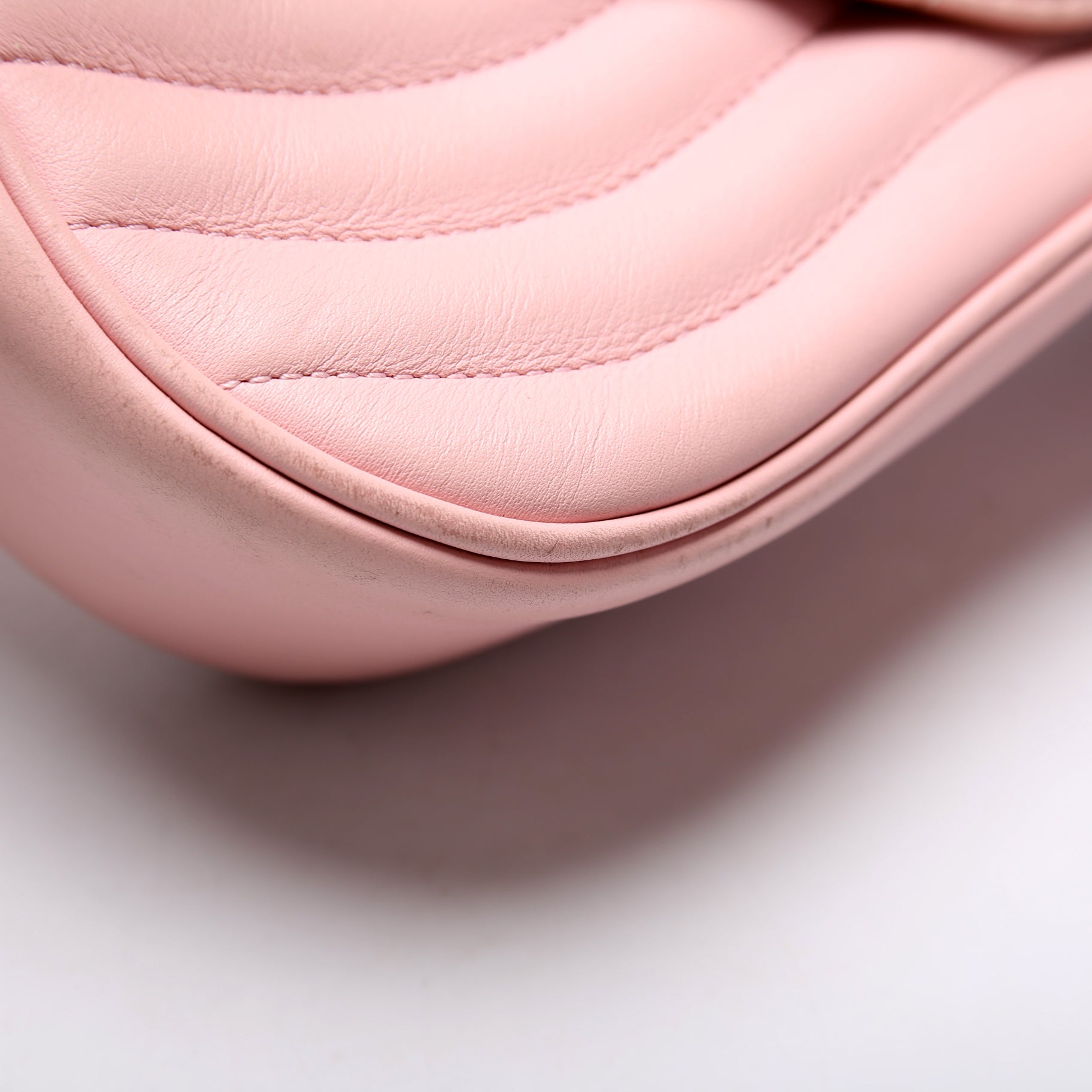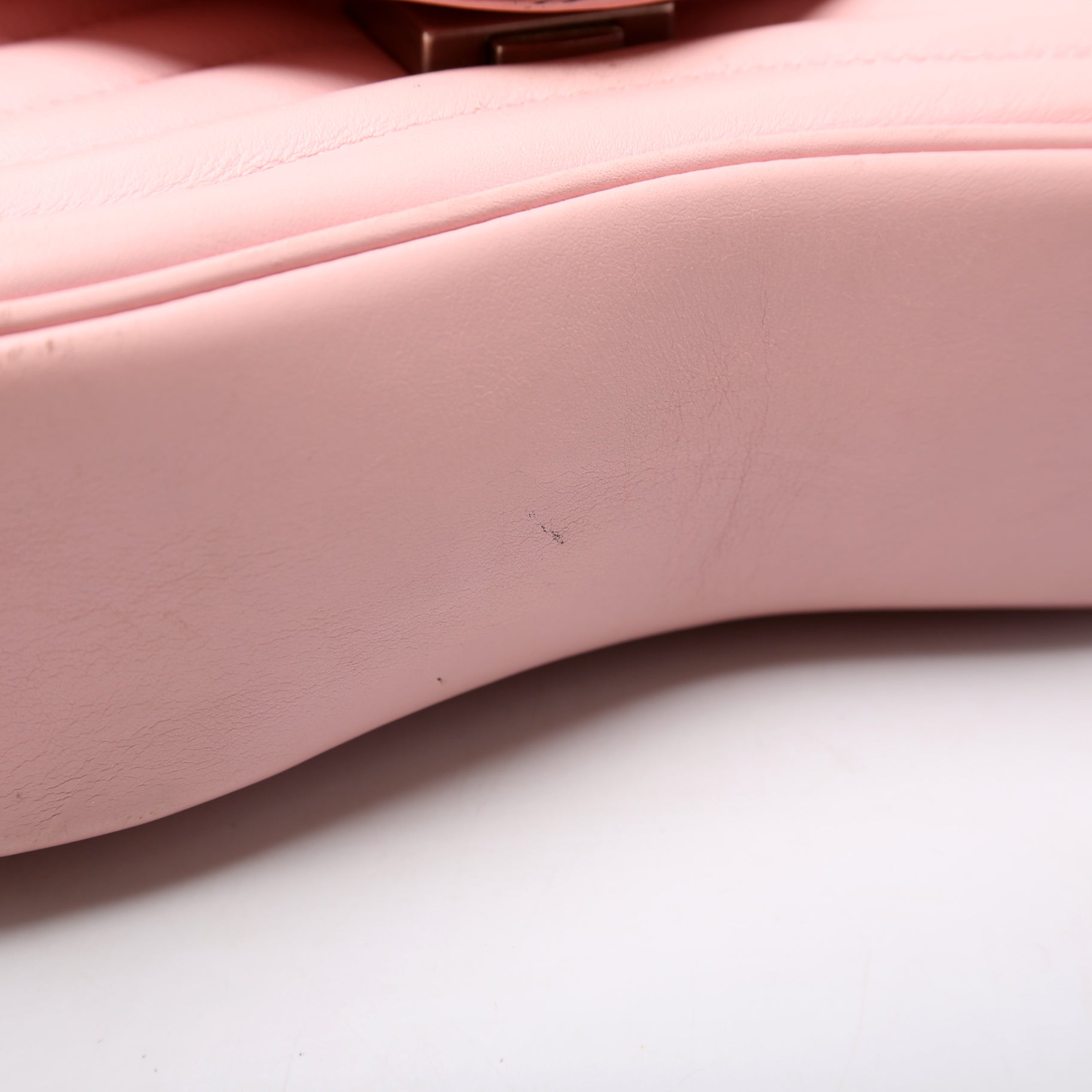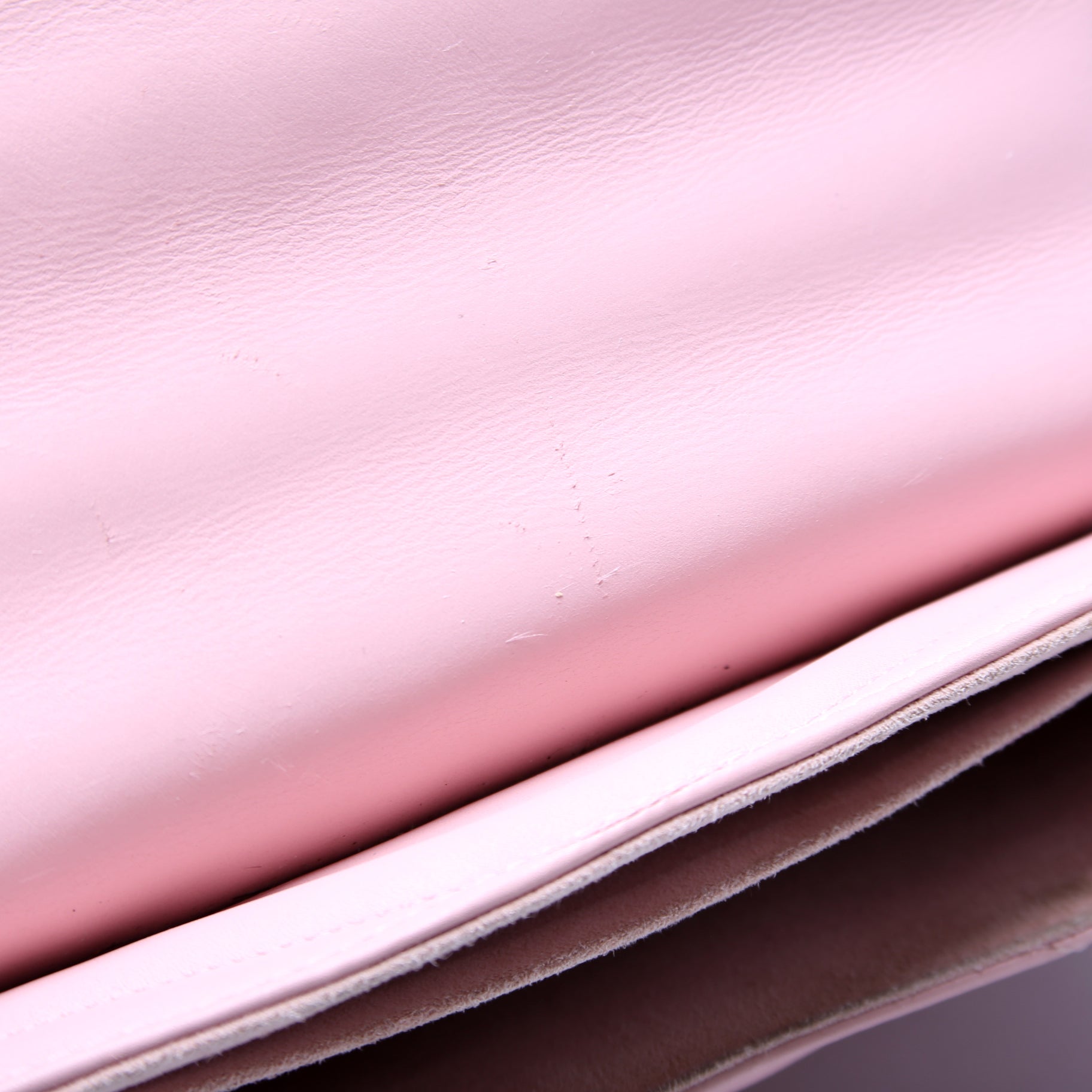 Strap: The crossbody strap is free of any scuffs or scratches. The chain is fully in tact. The leather shows signs of wear and scuffing.