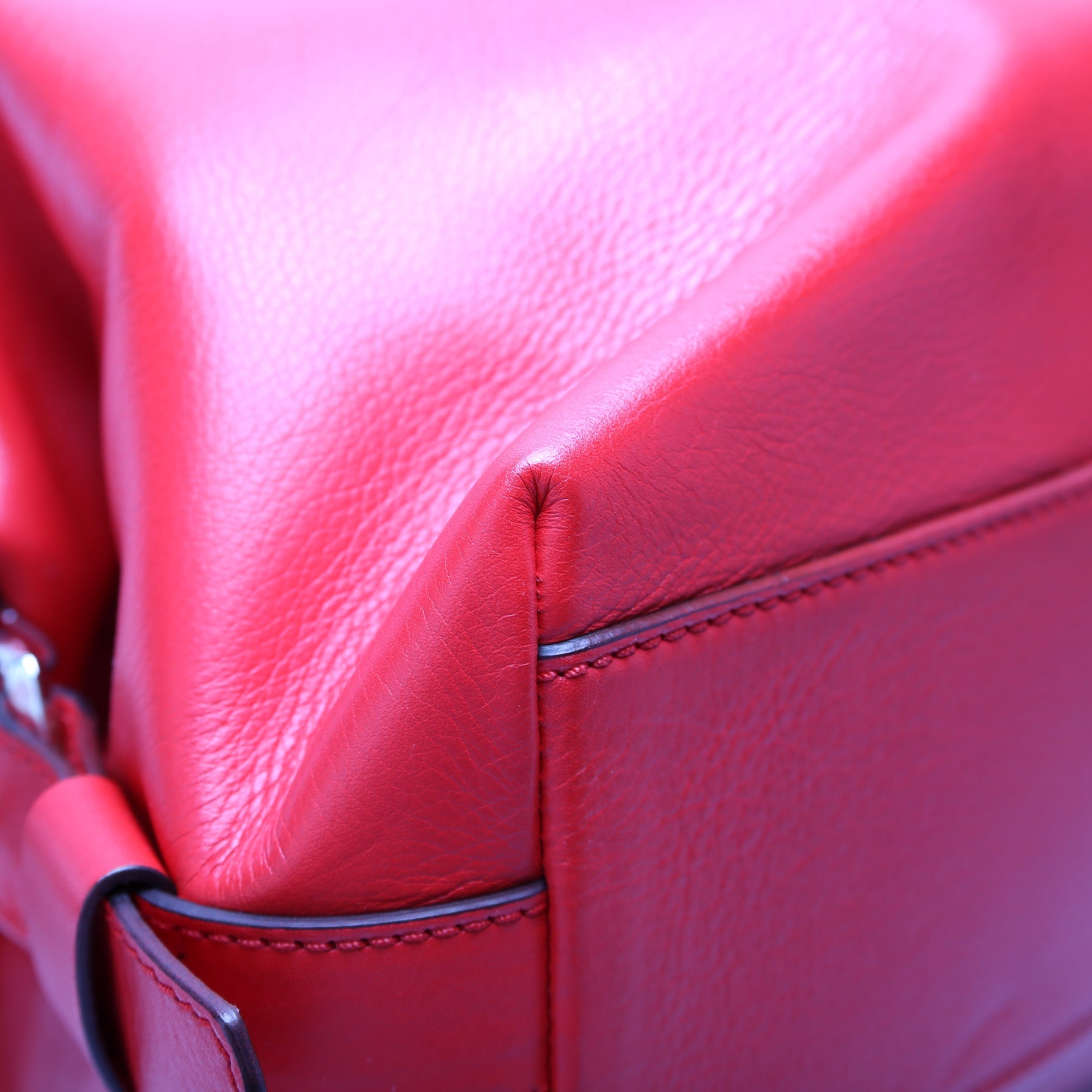 Interior: The interior is clean and free of rips or tears. The interior includes one zippered and two open pockets.