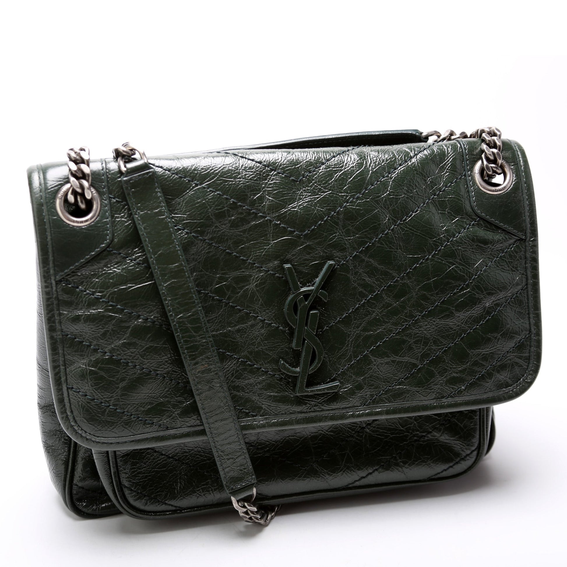This Saint Laurent Niki Medium Crinkle Leatheris eye catching bag.
