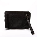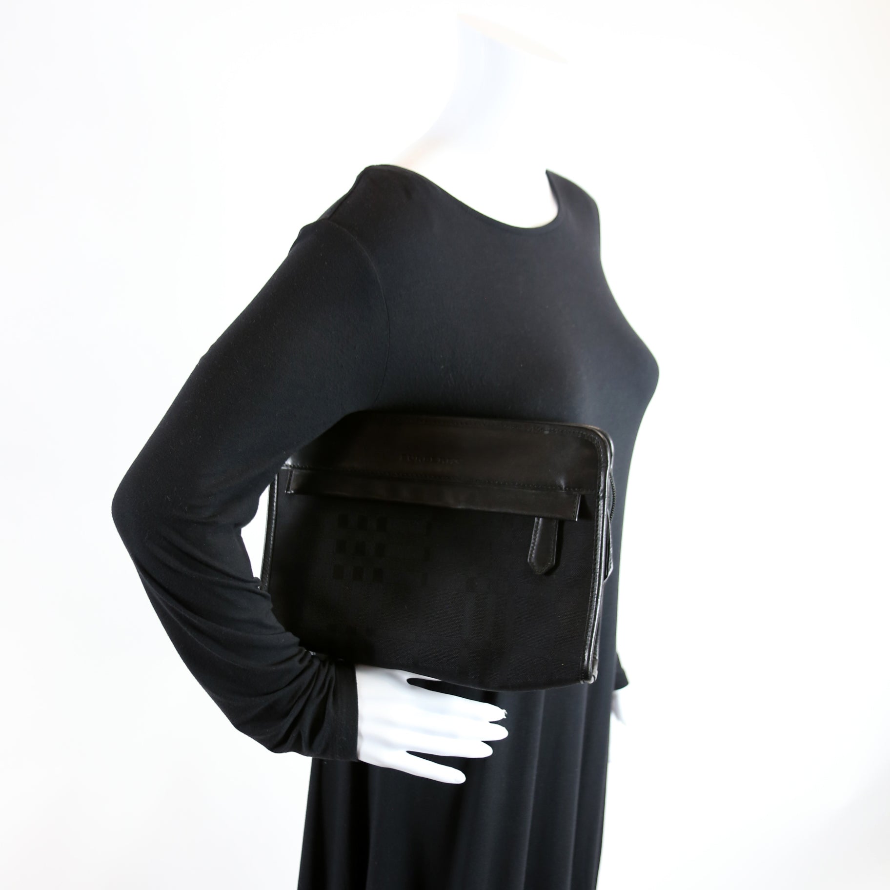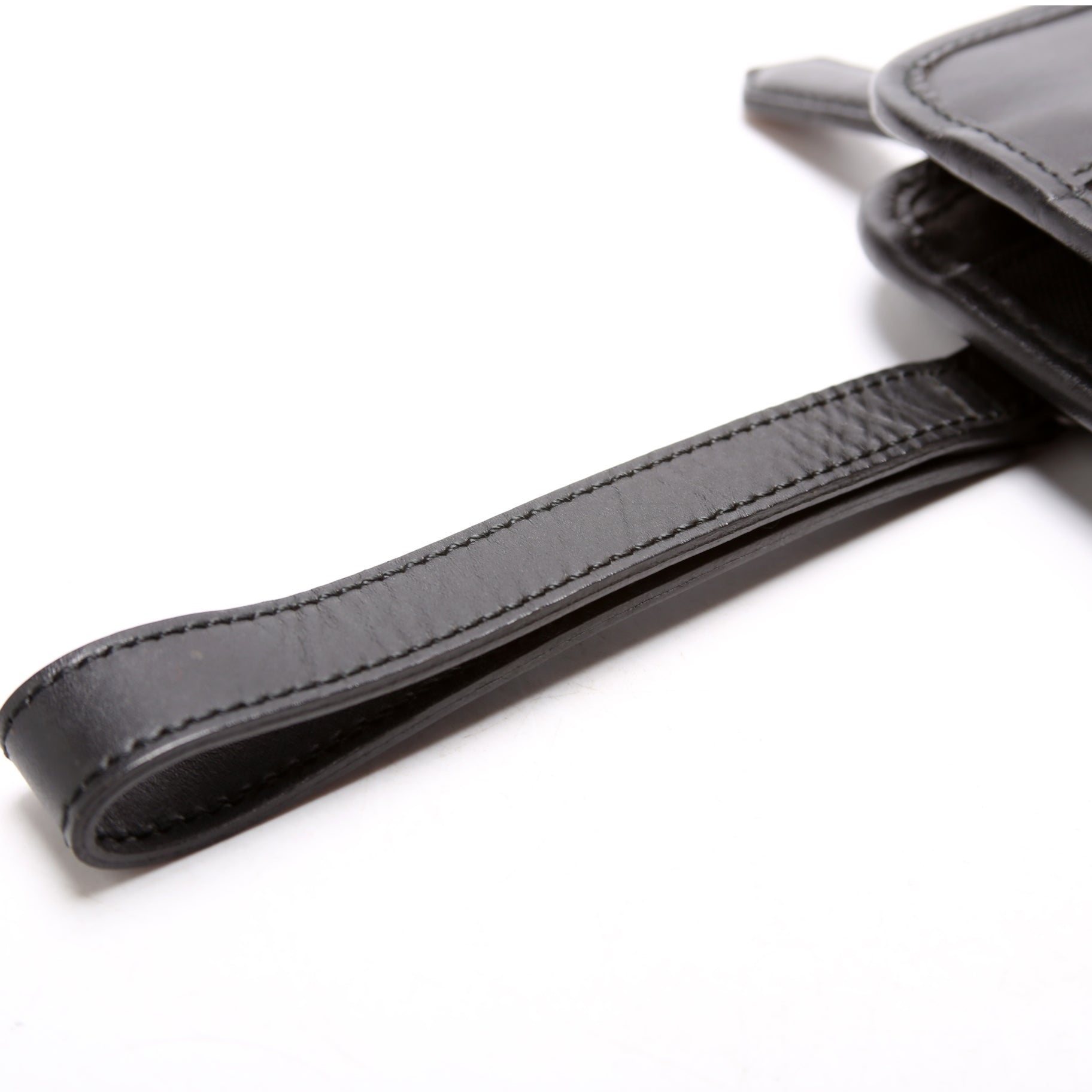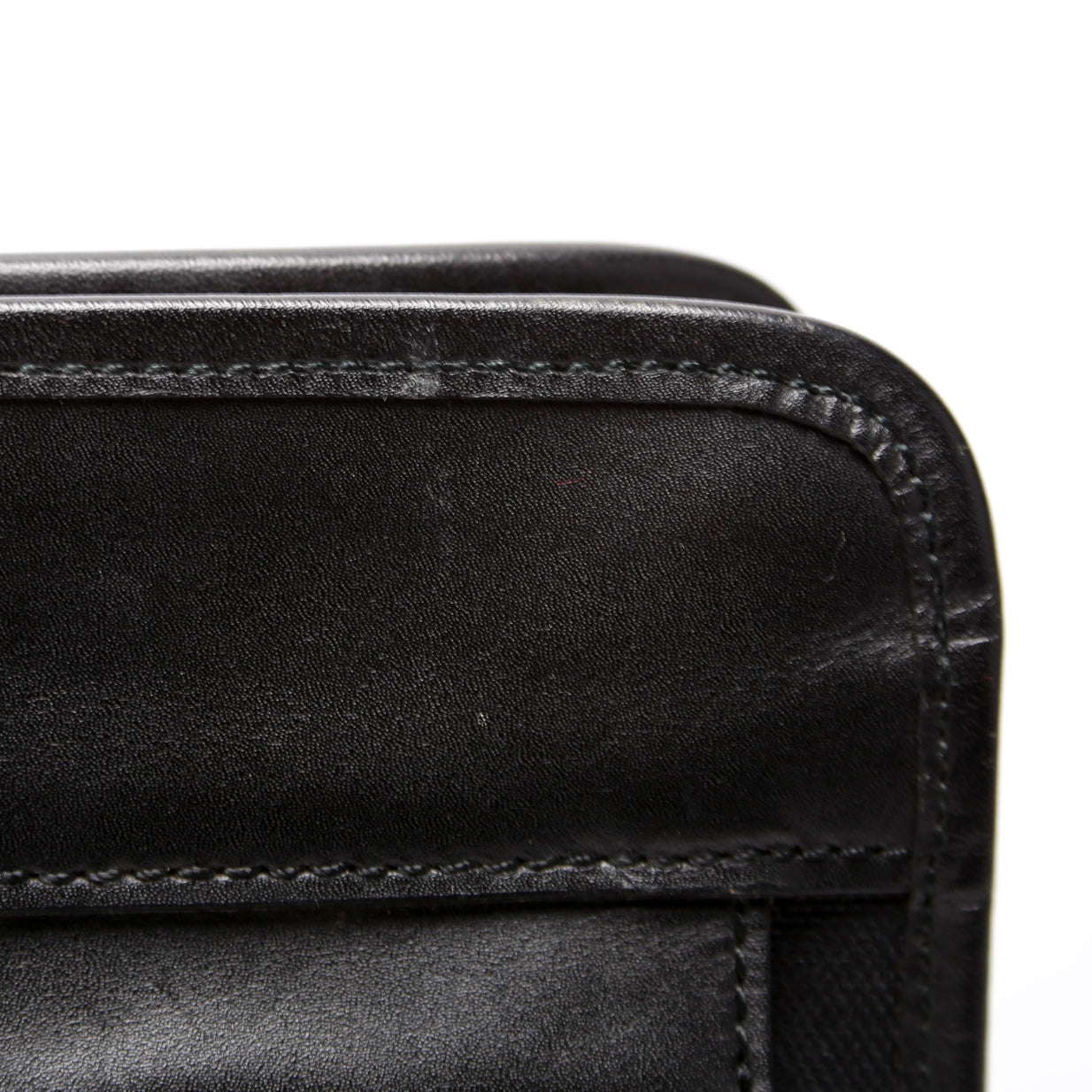 Exterior: The exterior leather has minor wear to the corners. The exterior features one zip closure pocket.