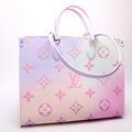 This Louis Vuitton ONTHEGO GM is d 100% . The exterior is in the classic Louis Vuitton Spring in the City coated canvas.