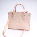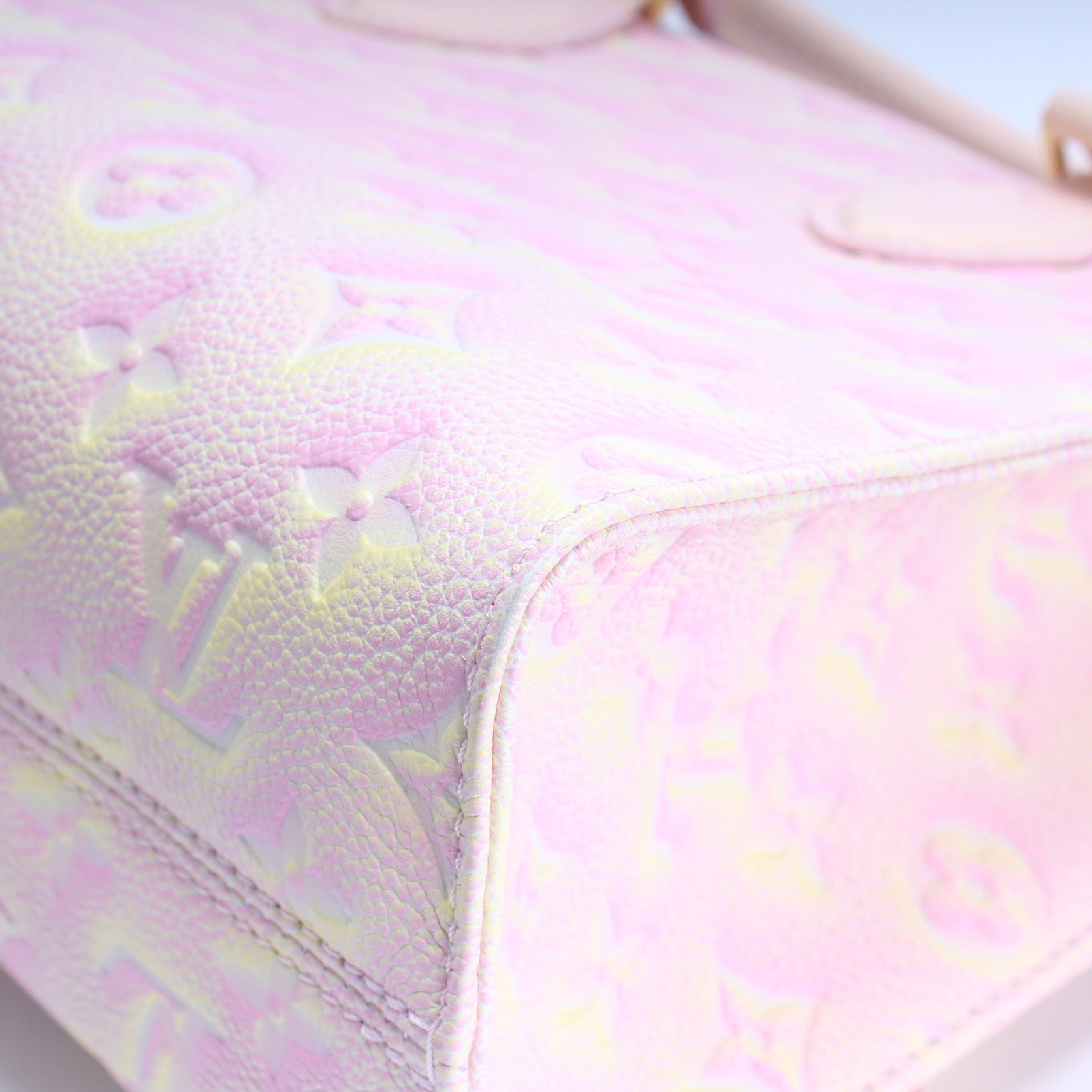 This Louis Vuitton ONTHEGO PMis eye catching bag. The exterior is in the classic Louis Vuitton Empreinte leather.