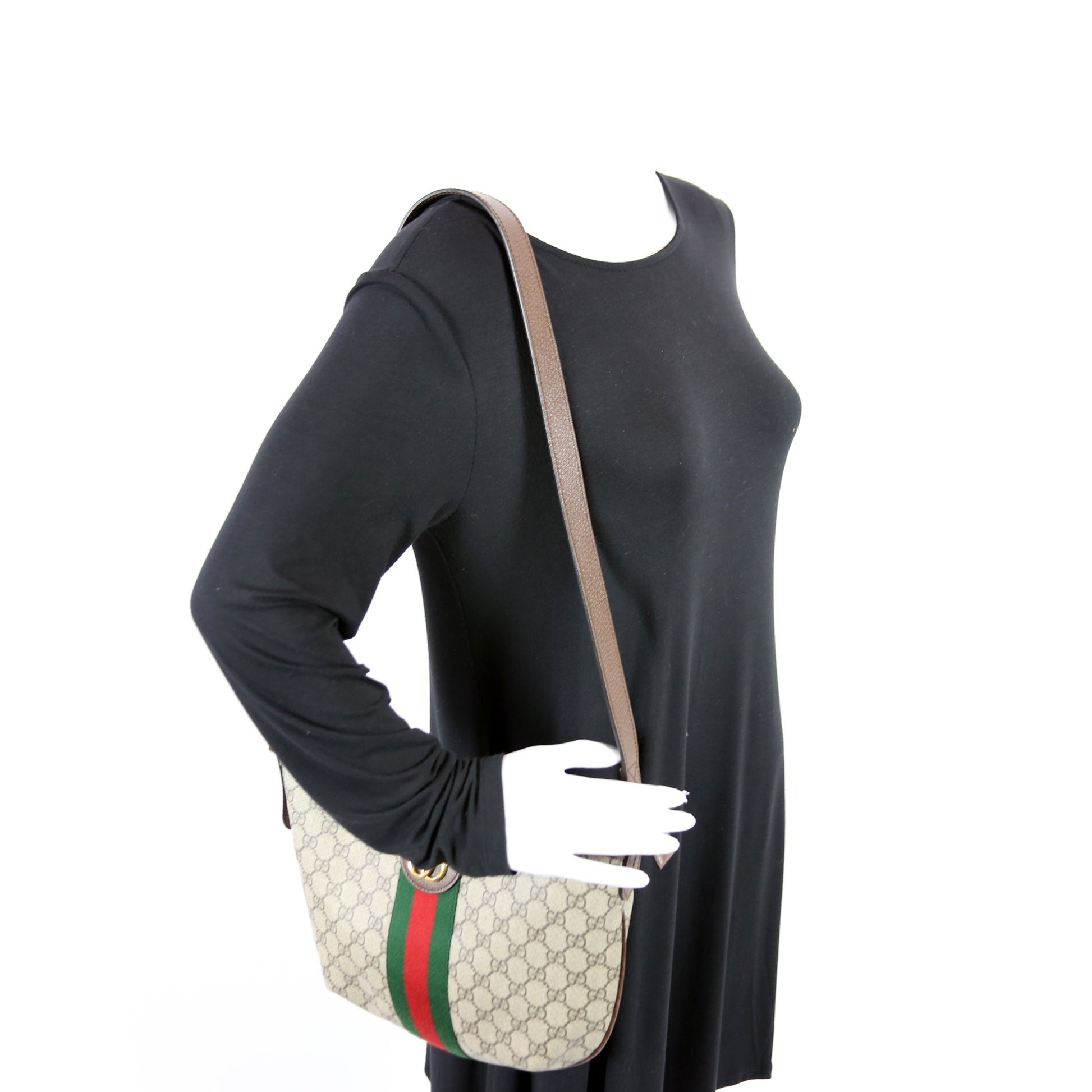 This Gucci Ophidia Small Shoulder Bag is d 100% . The exterior is in the classic Gucci GG Supreme coated canvas.