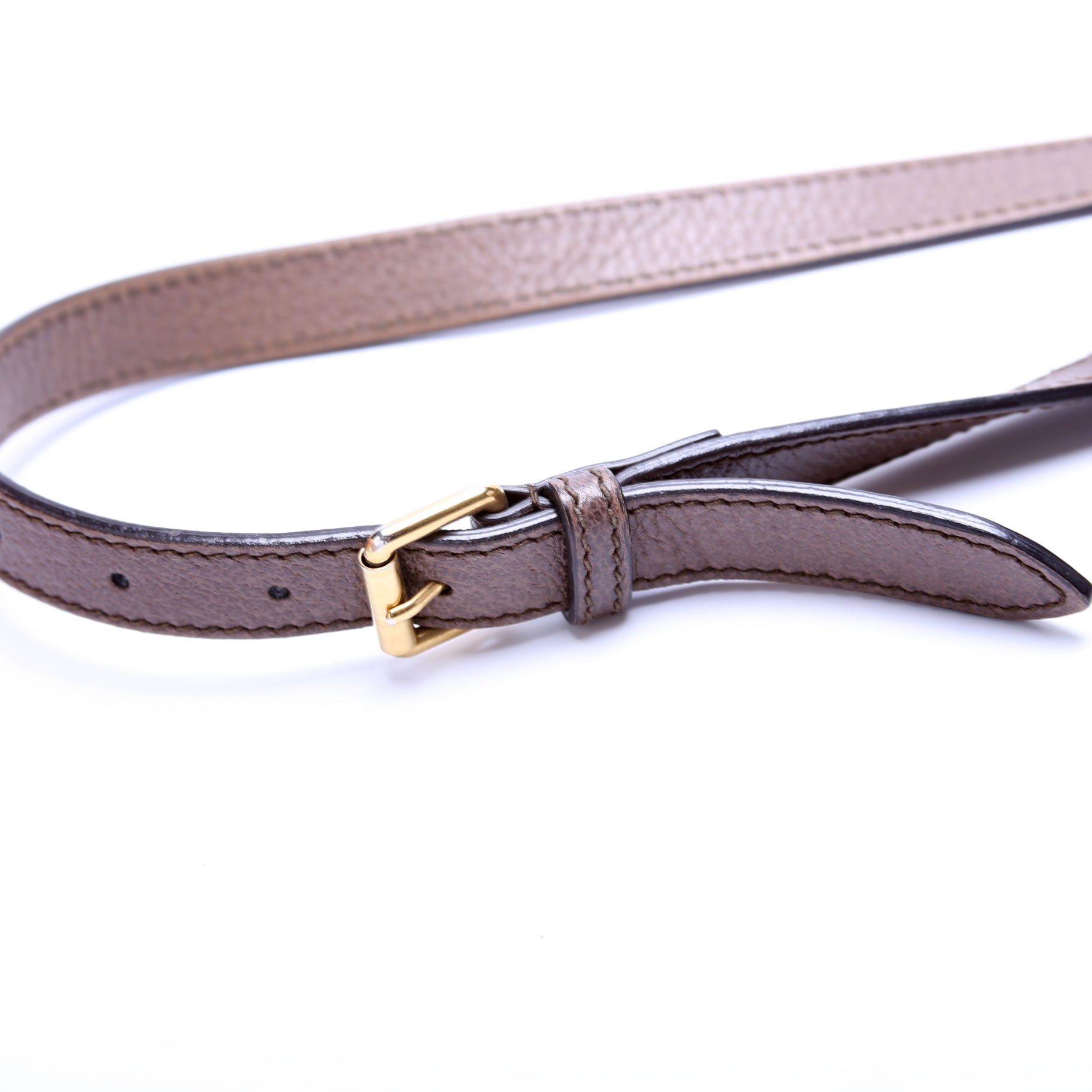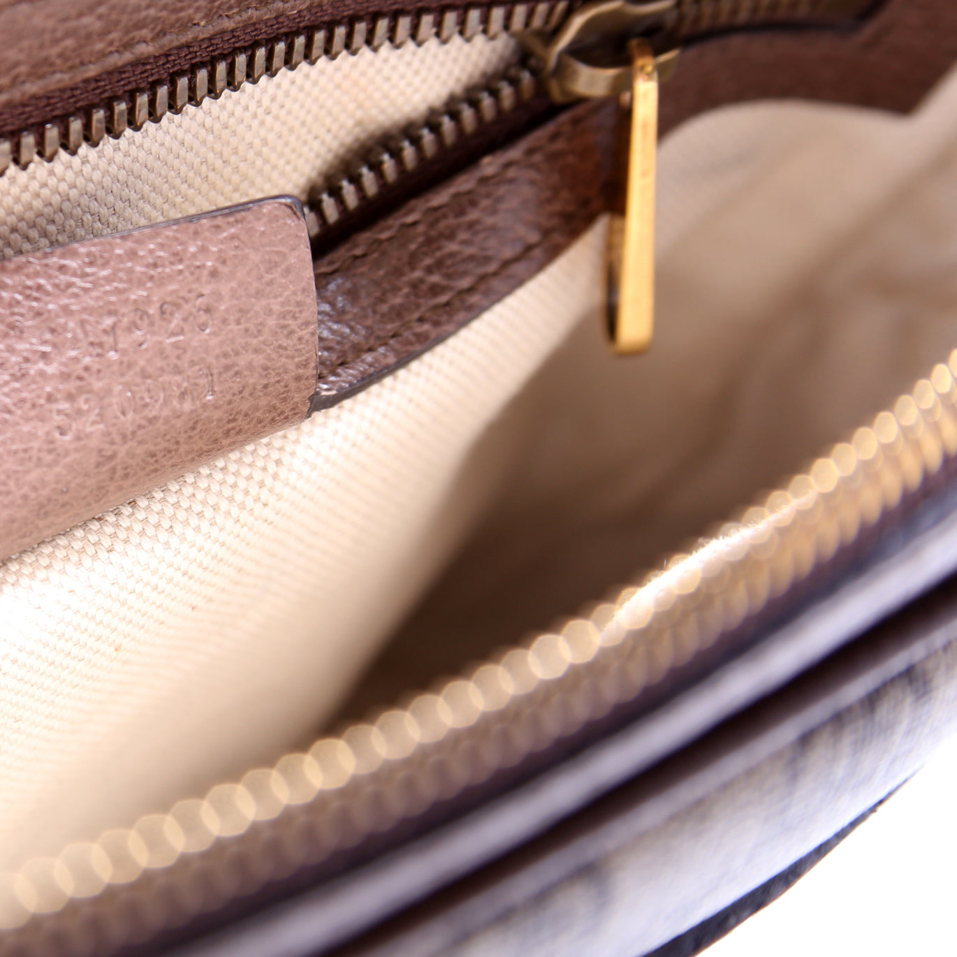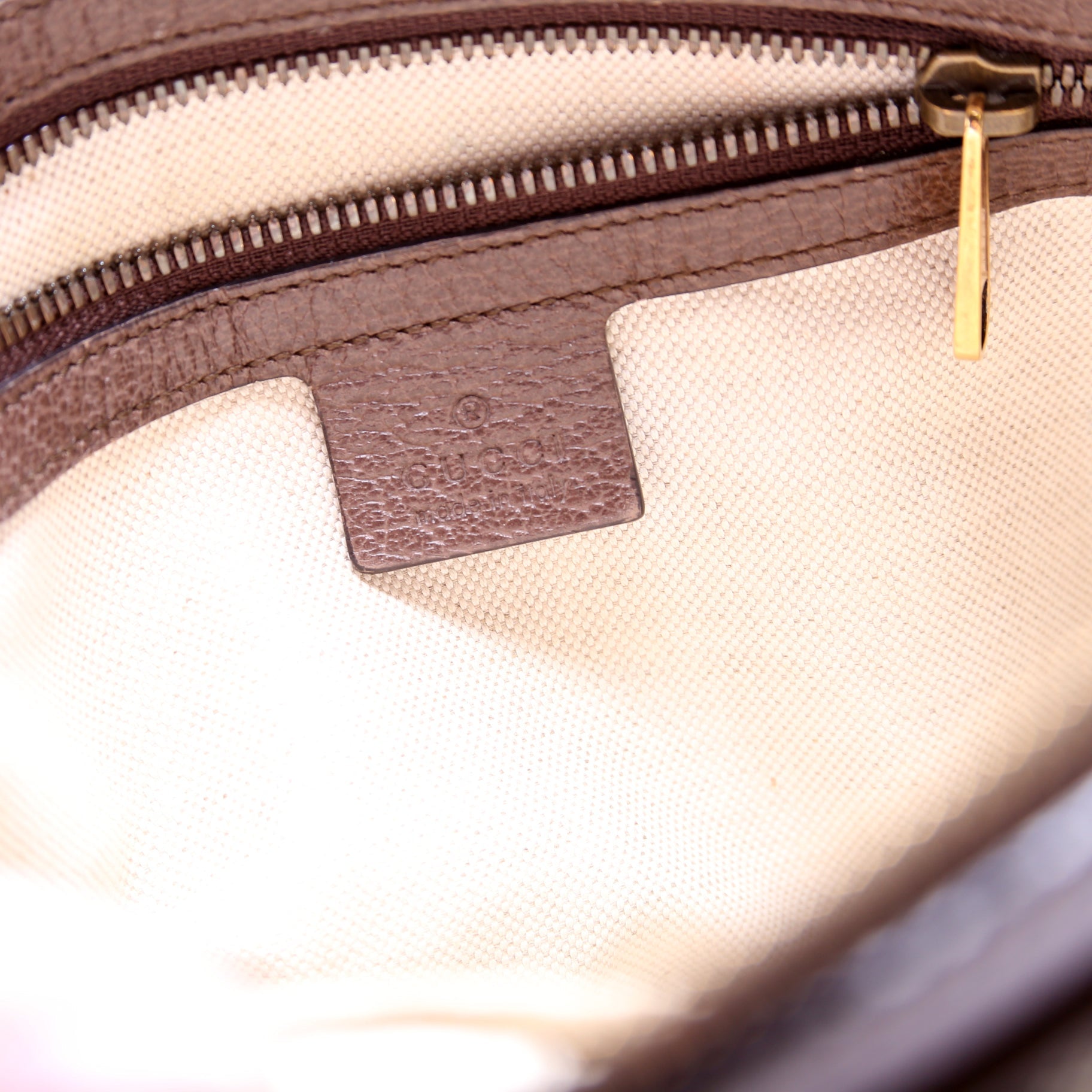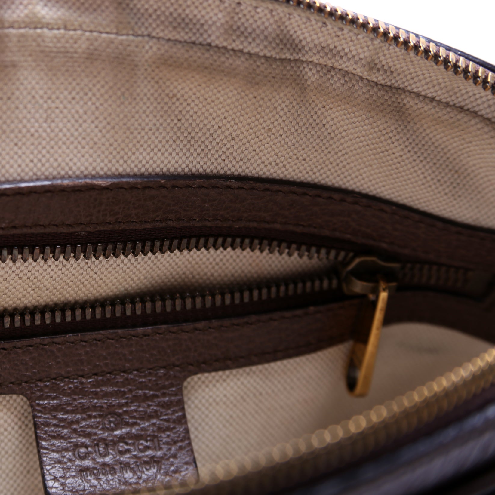 Exterior: The exterior coated canvas is free of any rips or cracks. The exterior features one zip closure pocket. The GG logo has scratches.